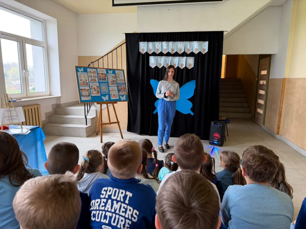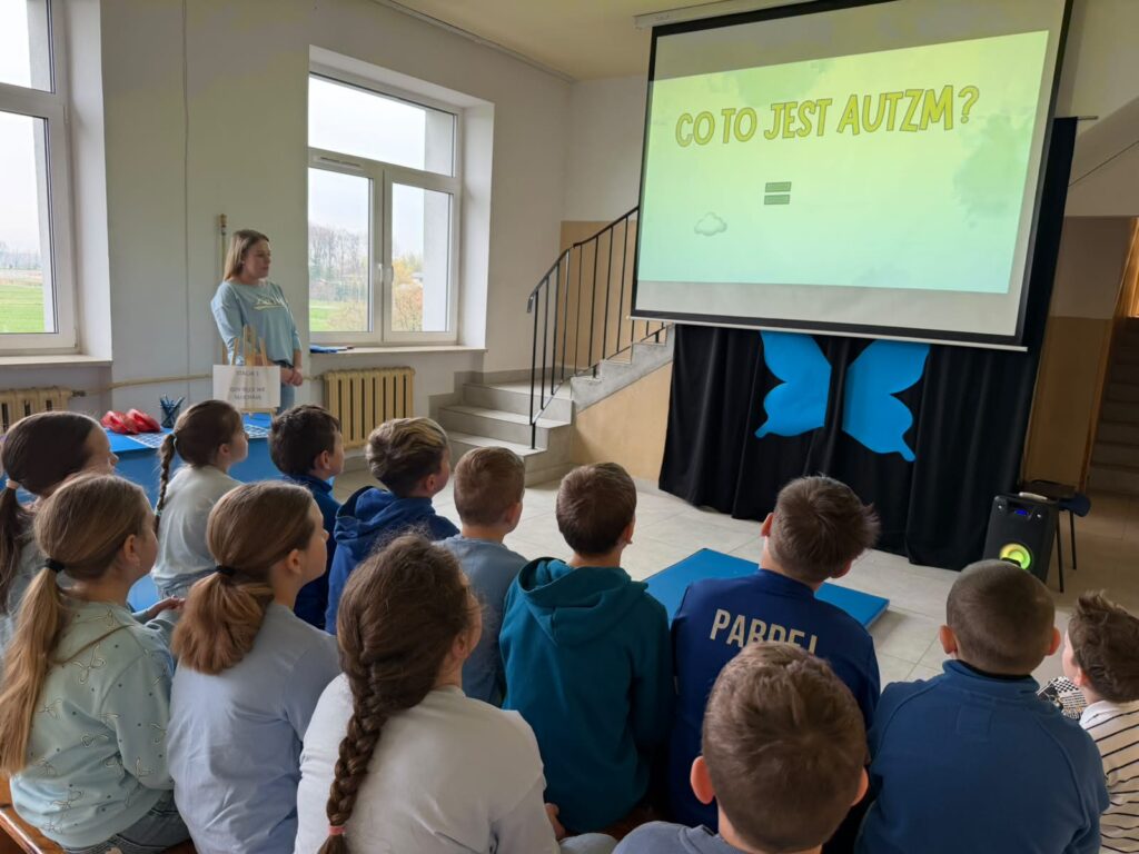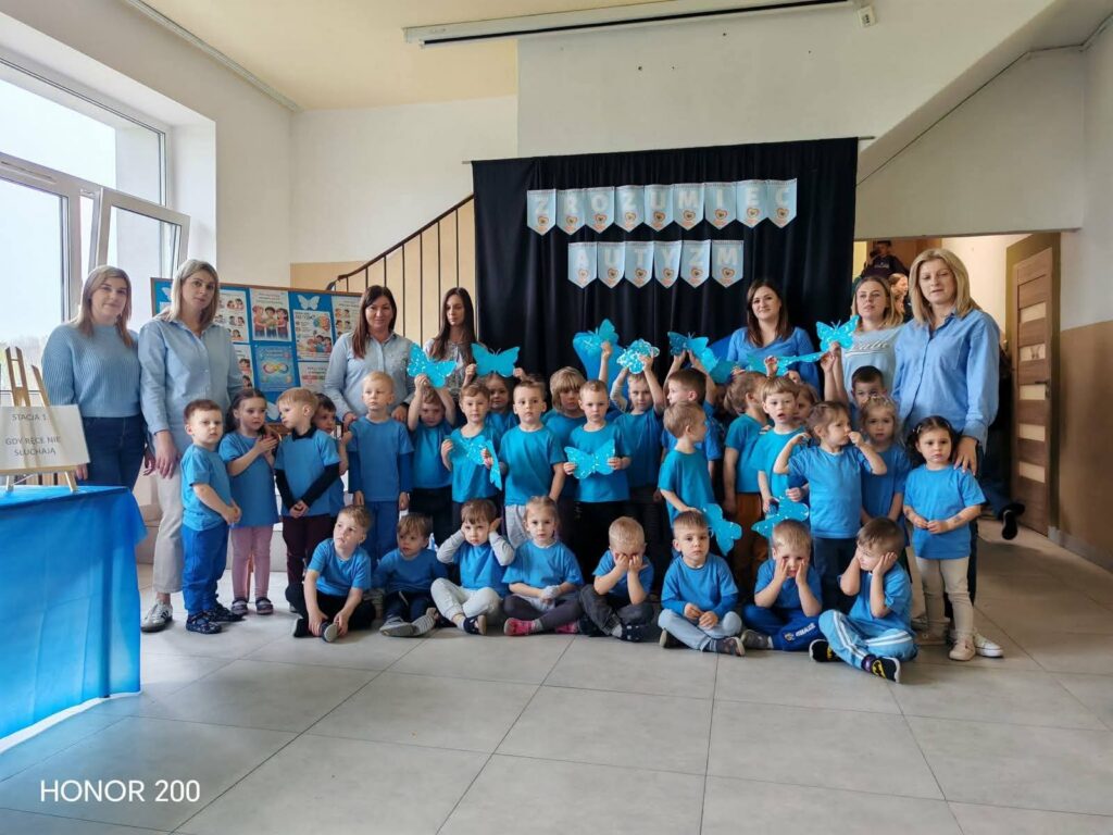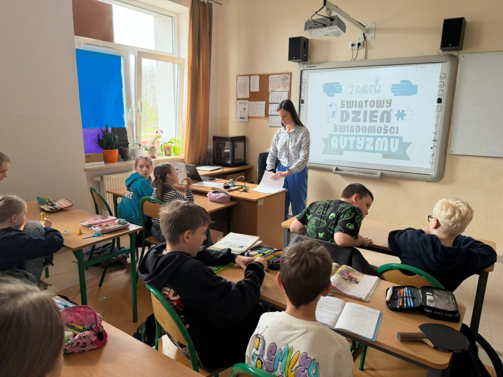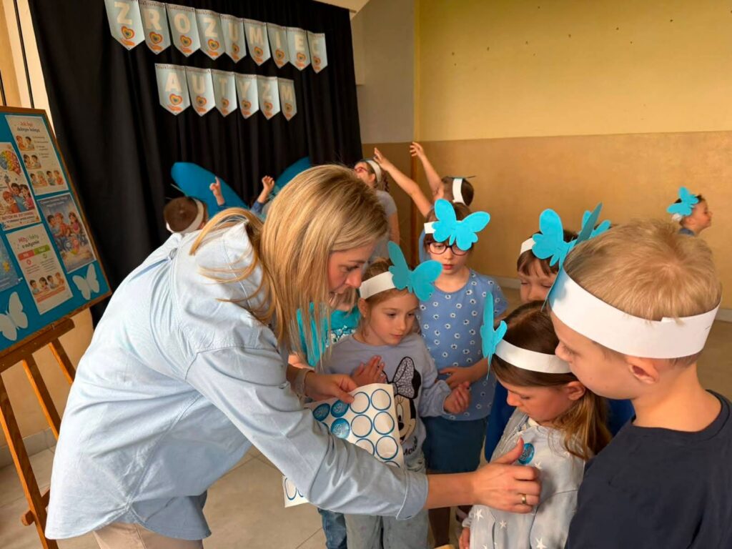 Była to wyjątkowa okazja do rozmów, refleksji oraz budowania wrażliwości i zrozumienia wobec osób w spektrum autyzmu. Uczniowie rozpoczęli dzień od obejrzenia krótkiego filmu edukacyjnego, który w przystępny sposób przybliżył im tematykę autyzmu. Na jego podstawie dzieci aktywnie uczestniczyły w quizie, sprawdzając swoją wiedzę i dzieląc się spostrzeżeniami.