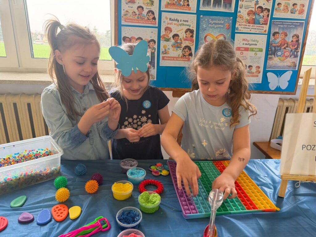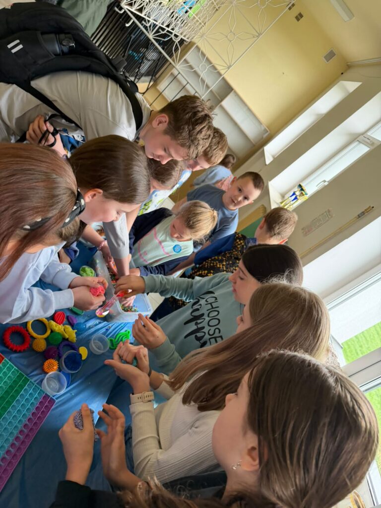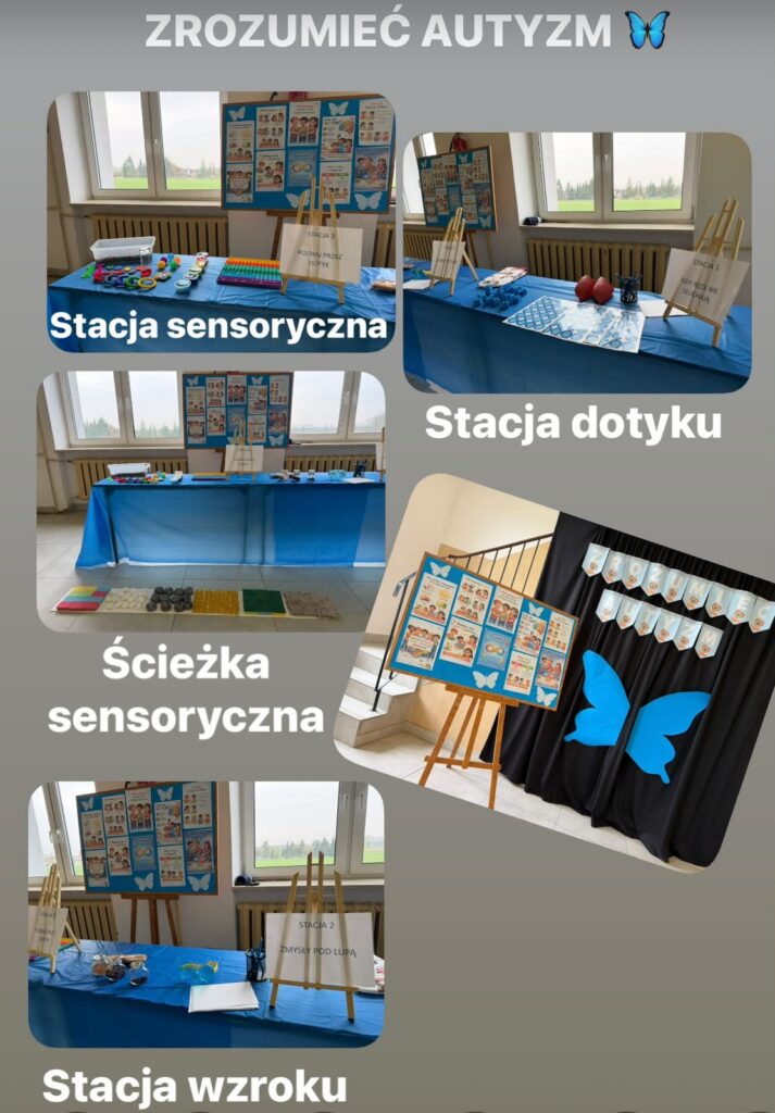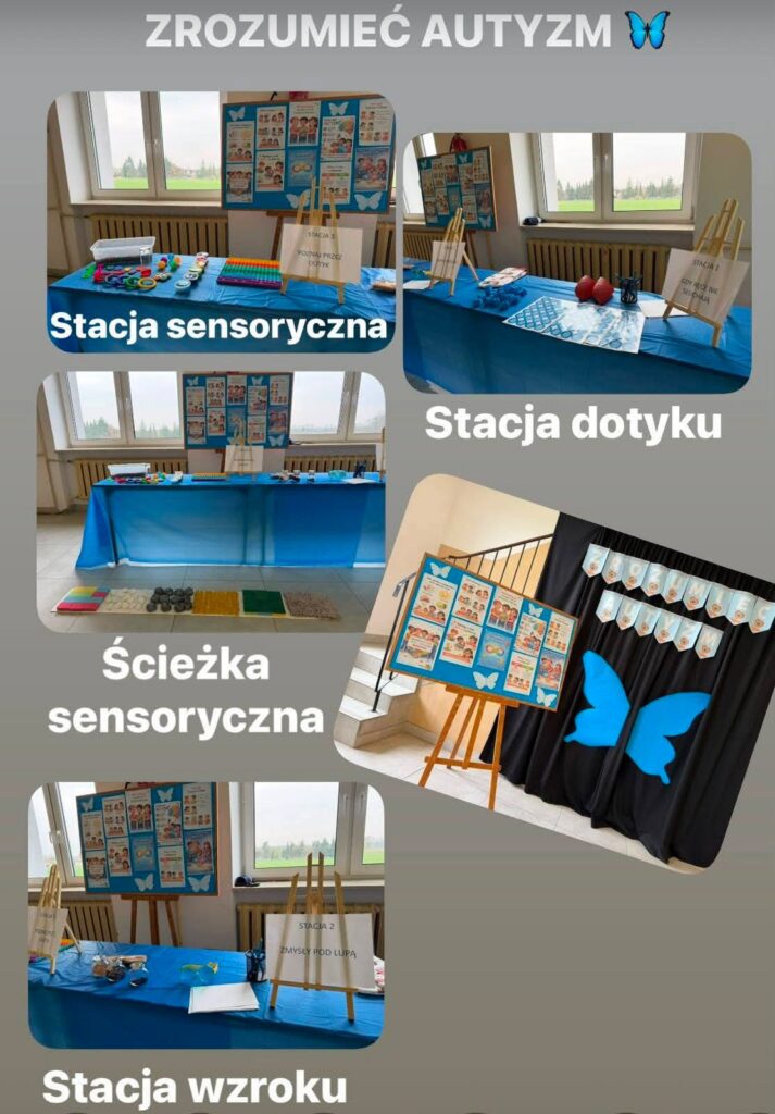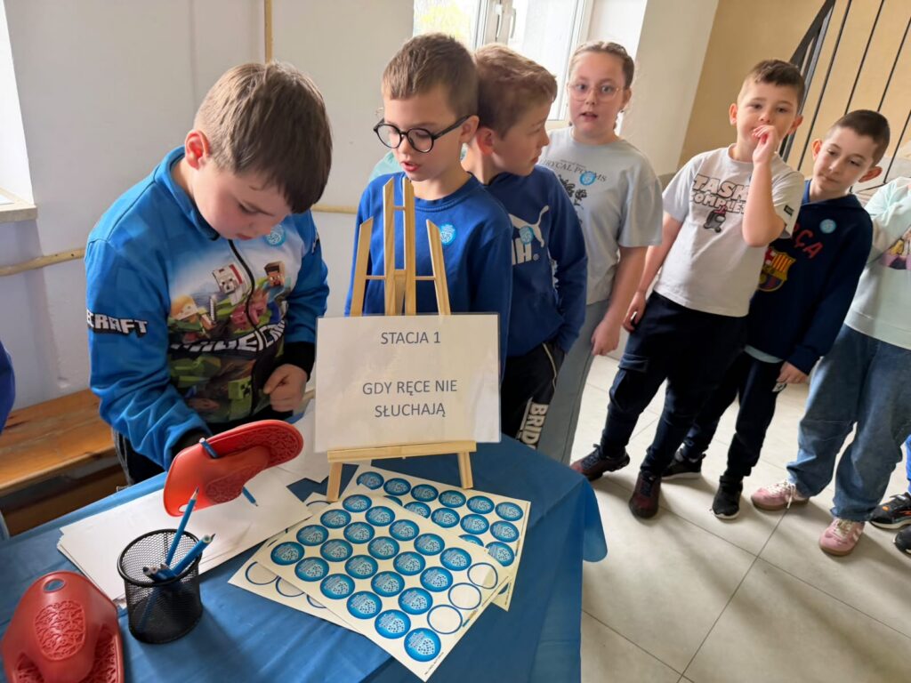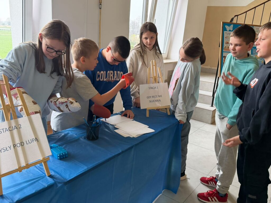 Kolejnym etapem były zajęcia praktyczne w formie stacji zadaniowych. Uczniowie mieli możliwość doświadczenia różnych bodźców i lepszego zrozumienia, jak osoby w spektrum mogą odbierać świat. Przygotowane zostały m.in. stacja dotyku, wzroku, stacja sensoryczna oraz ścieżka sensoryczna, które cieszyły się dużym zainteresowaniem i zaangażowaniem uczniów.