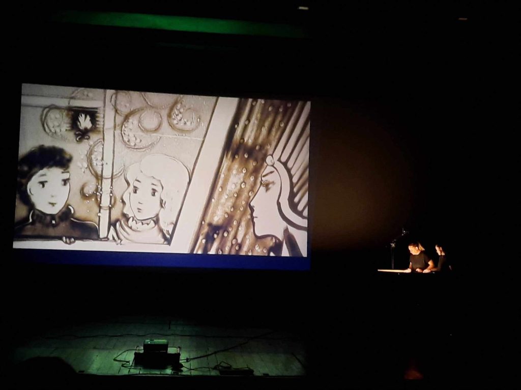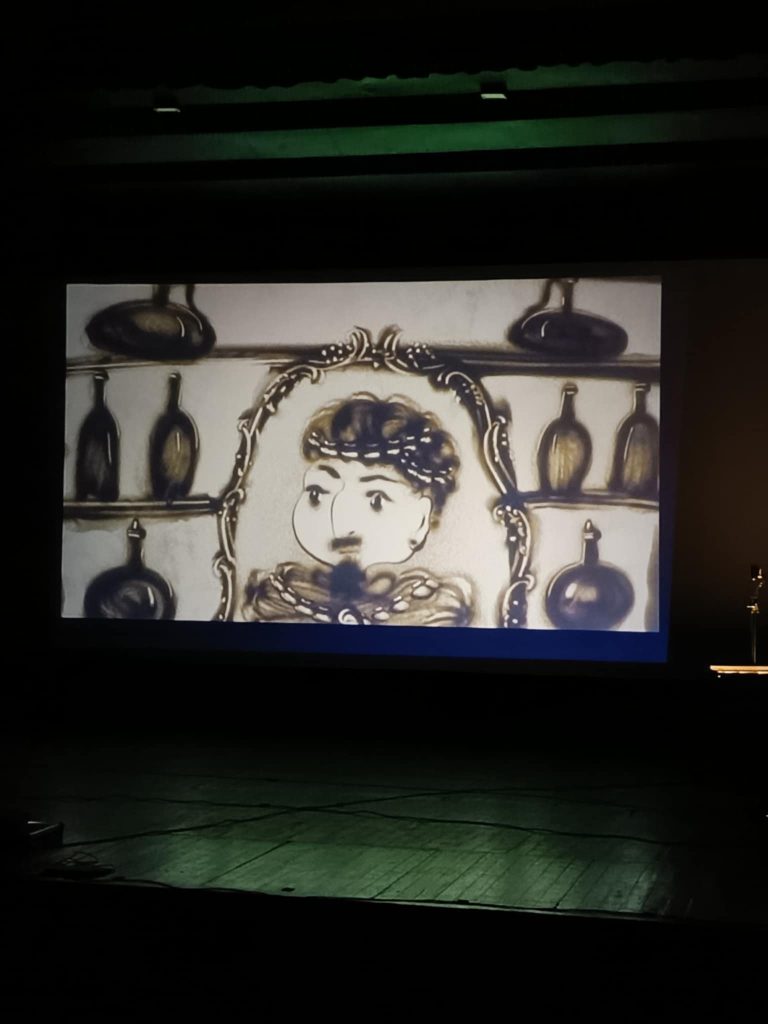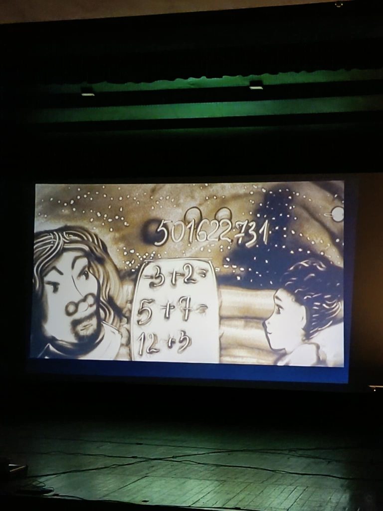 piasku i cienia w połączeniu z piękna muzyką głosem lektora, powstawały obrazy wprowadzające uczniów w magiczny nastrój i kolejne kroki opowieści. Wytkane w ziarenkach piasku, świetle i