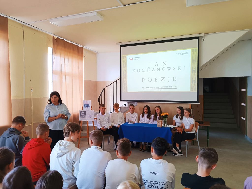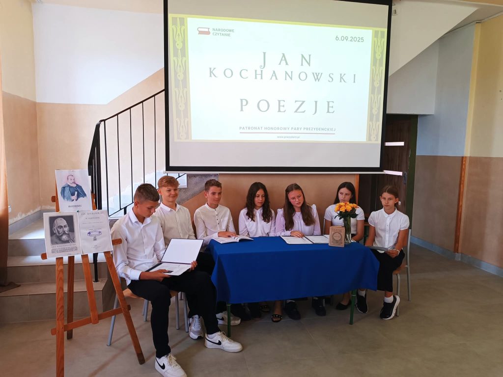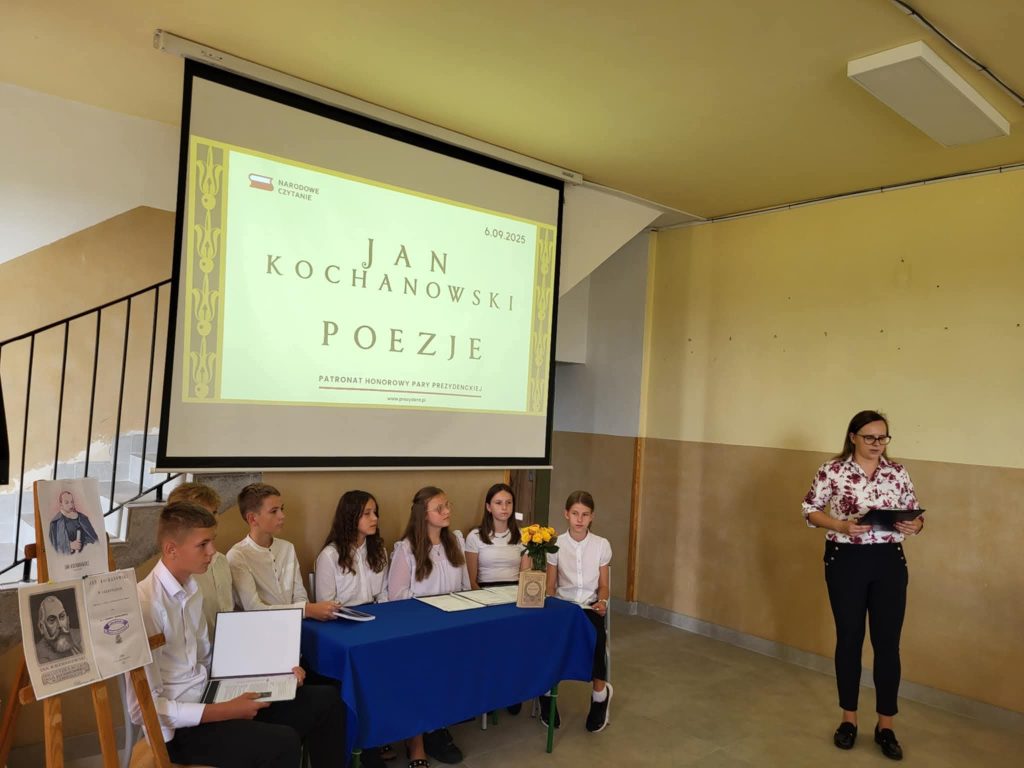 Dziś, 8 września 2025 r., w naszej szkole odbyło się wyjątkowe wydarzenie – Narodowe Czytanie. To ogólnopolska akcja organizowana od 2012 roku pod patronatem Prezydenta RP, której celem jest wspólne odkrywanie piękna polskiej literatury.W tym roku uczniowie i uczennice klas 6–7 zmierzyli się z ponadczasową twórczością Jana Kochanowskiego, jednego z najwybitniejszych poetów renesansu. Lektura jego poezji była nie tylko okazją do spotkania z językiem dawnych czasów, ale także szansą na refleksję nad uniwersalnymi wartościami i emocjami, które pozostają aktualne mimo upływu wieków.Cieszymy się, że młodzież tak chętnie zaangażowała się w czytanie i mamy nadzieję, że to doświadczenie zachęci wszystkich do sięgania po klasykę literatury polskiej nie tylko od święta.Narodowe Czytanie łączy pokolenia – dziękujemy wszystkim, którzy wzięli udział w tym pięknym święcie literatury!