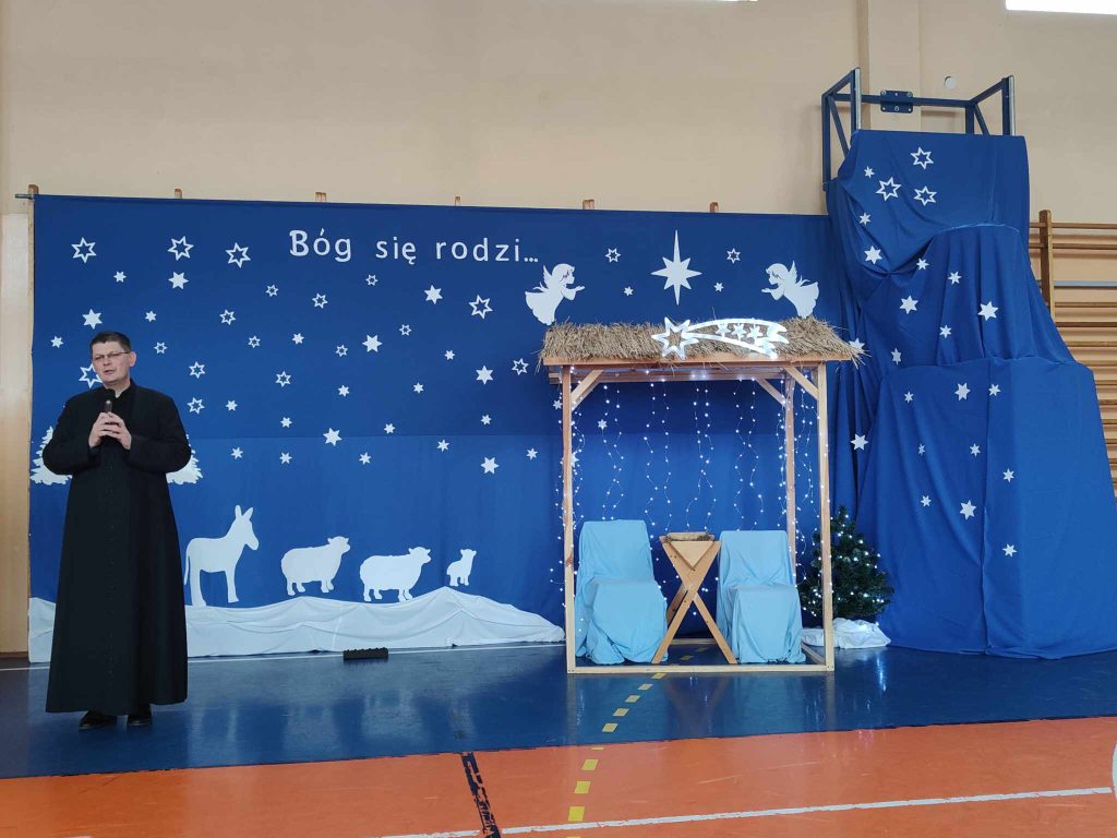 21 grudnia uczniowie klasy V i VII pod kierunkiem p. Jolanty Gajewskiej i ks. Łukasza Kutery wprowadzili nas w świąteczny klimat. Kolejny raz przeżyliśmy historię Bożego Narodzenia. Nie zabrakło życzeń, które złożyła dyrektor pani Beata Chrustowicz wszystkim obecnym.