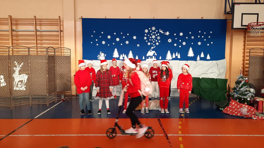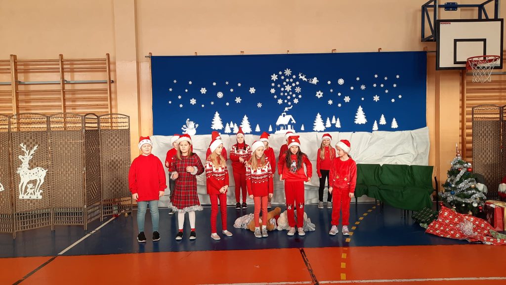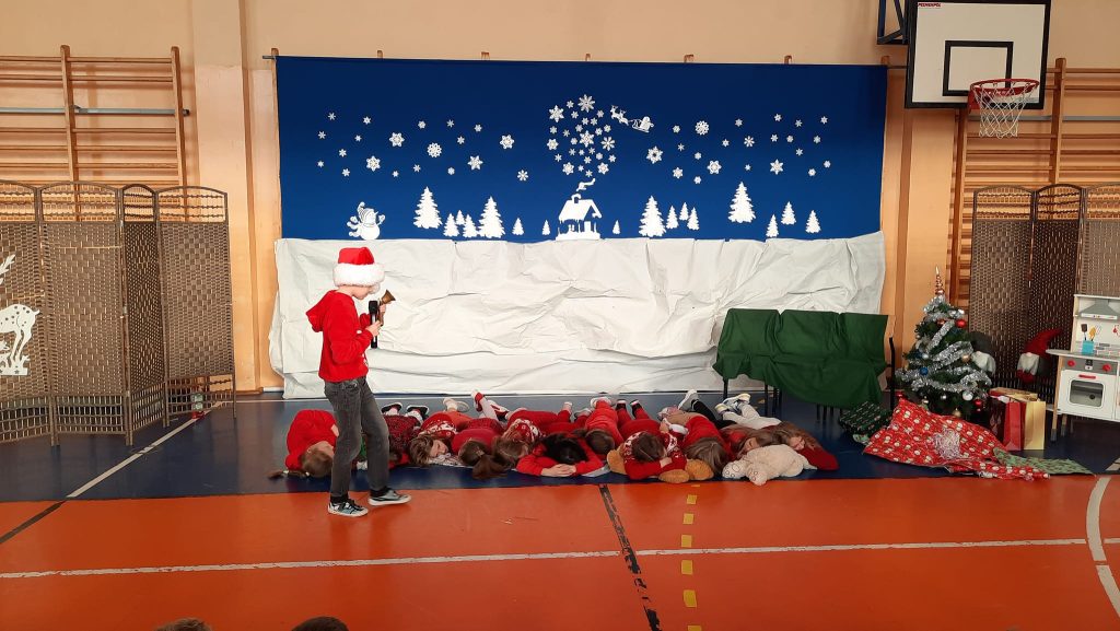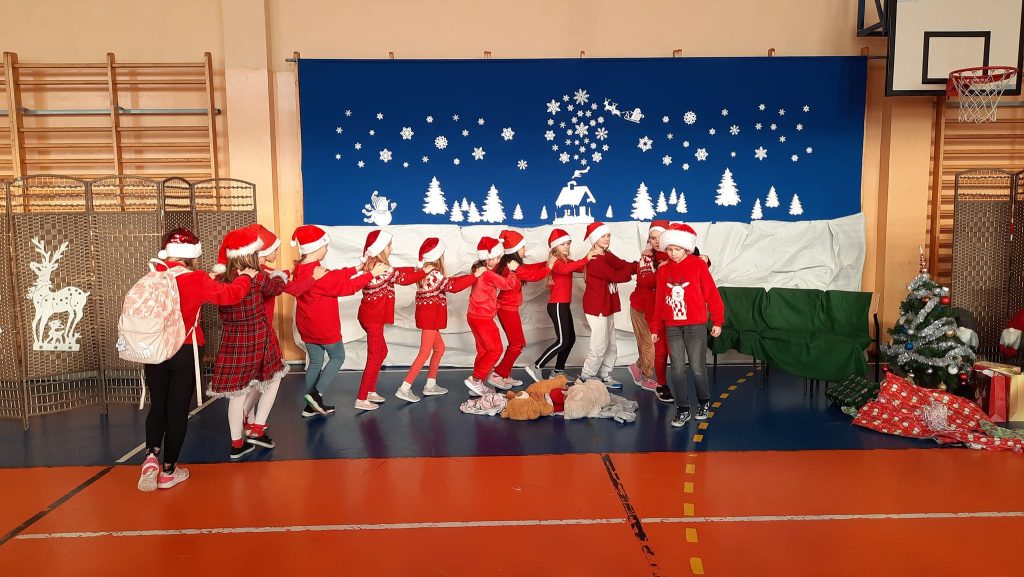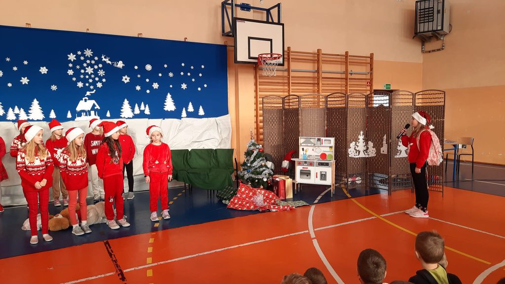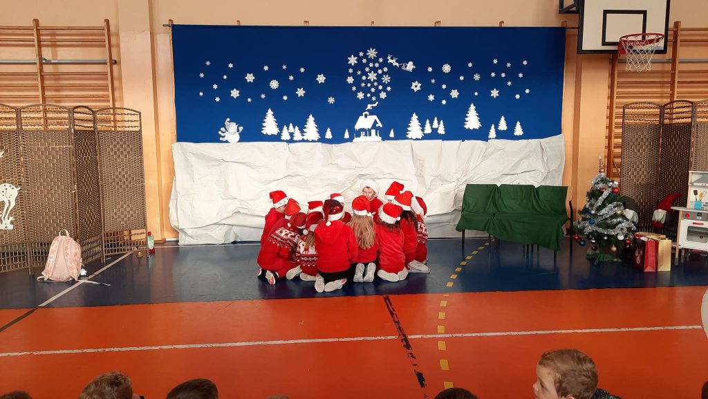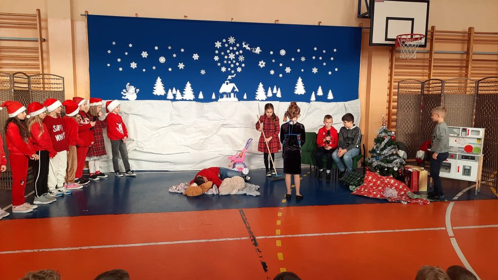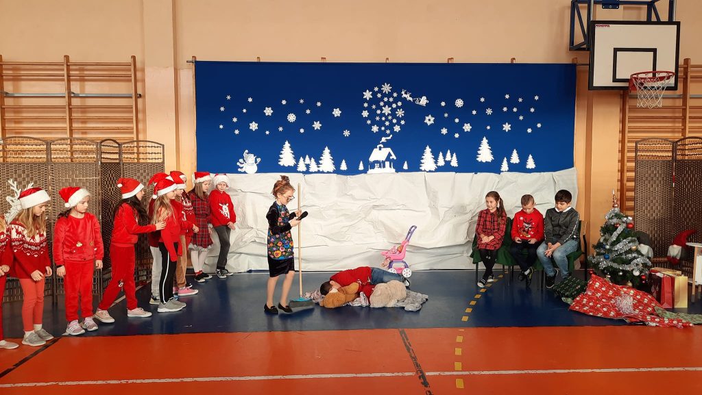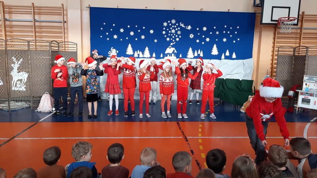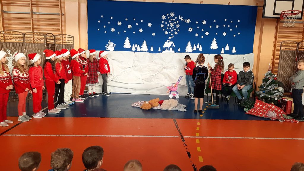 Przedstawienie pod tytułem ” Kłopoty w Laponii” w wykonaniu uczniów klasy 3 pod kierunkiem pani Eweliny Pawlak.