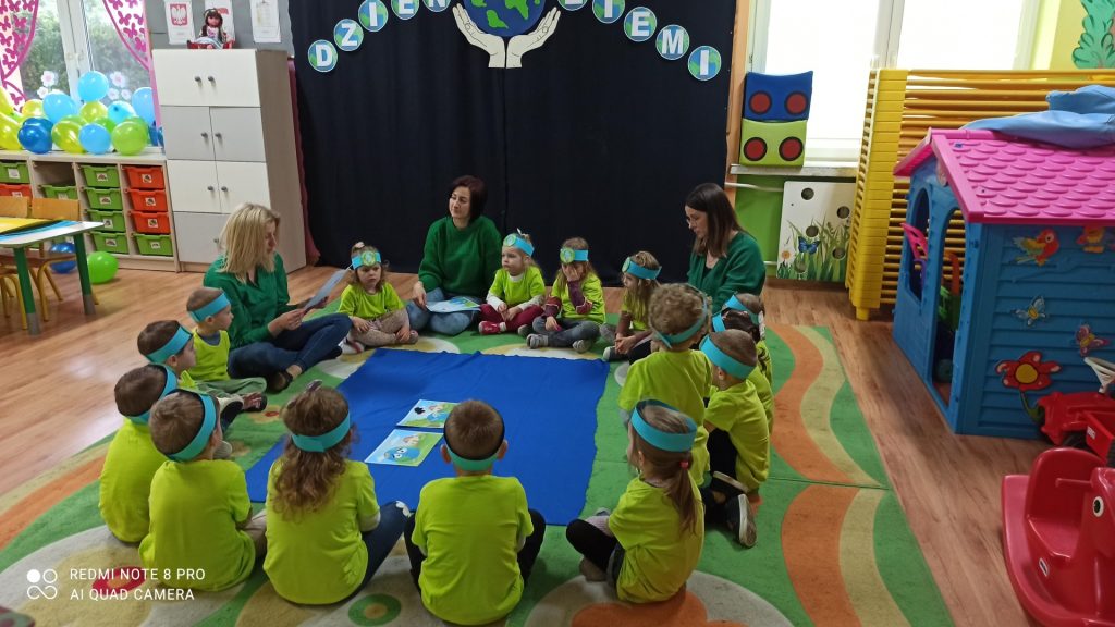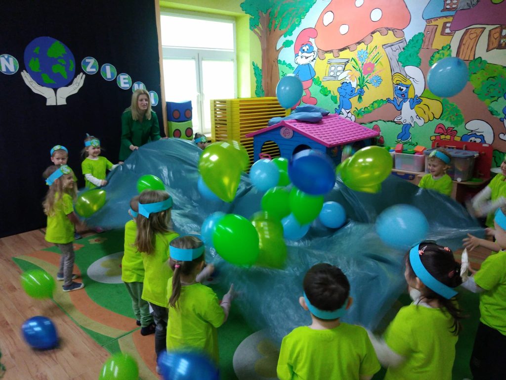 Smerfy obchodziły Światowy Dzień Ziemi. Z okazji tego święta w przedszkolu odbyły się zajęcia, na których dzieci rozmawiały o tym co sprawia że ziemia jest smutna (zanieczyszczona) oraz co możemy zrobić dla ziemi aby była szczęśliwa (czysta). Smerfy dowiedziały się także jak segregować śmieci, a na koniec wykonały wspólnie pracę plastyczną.