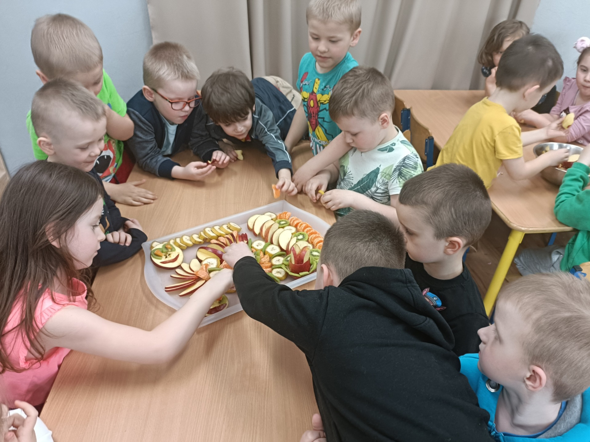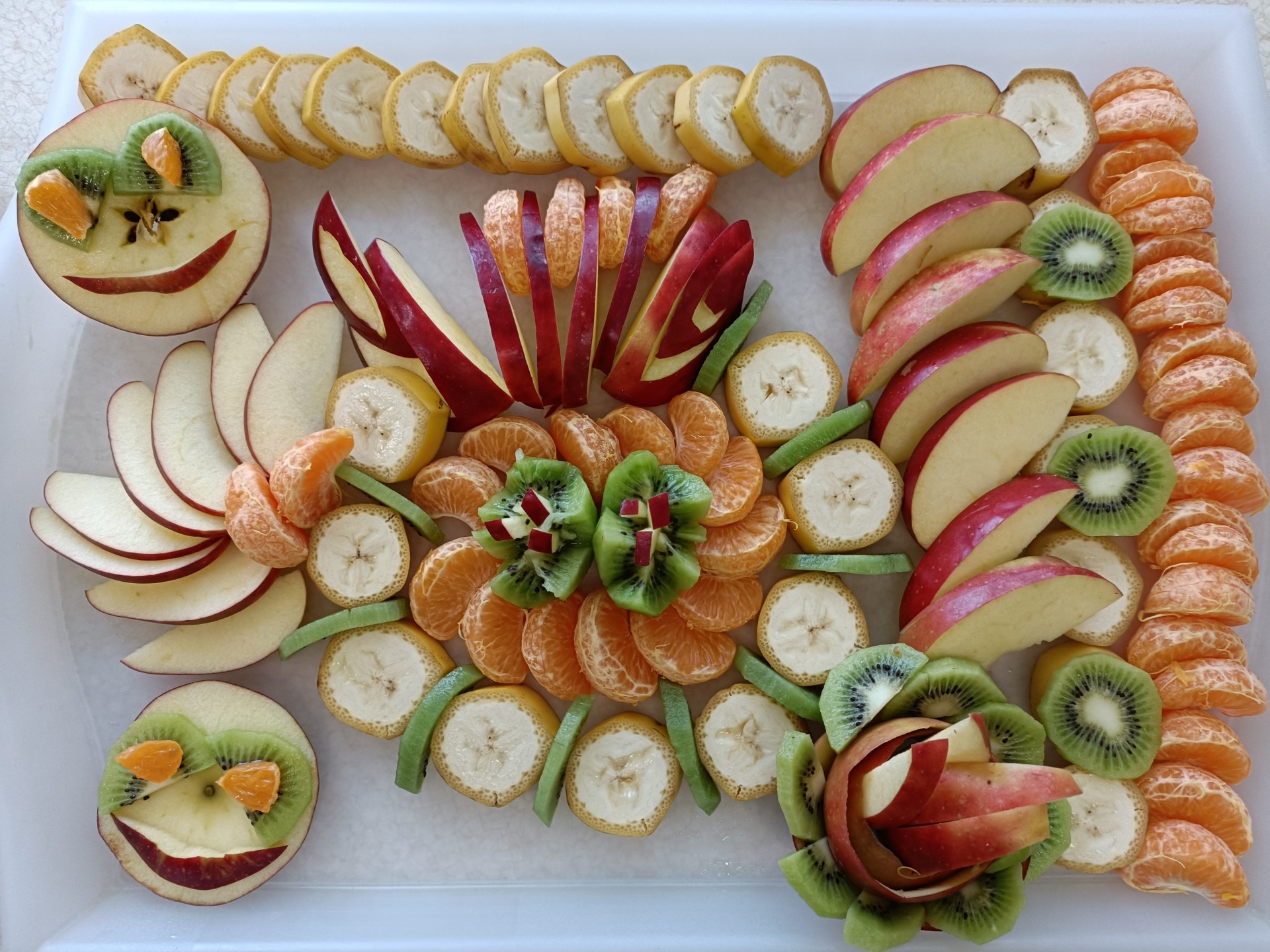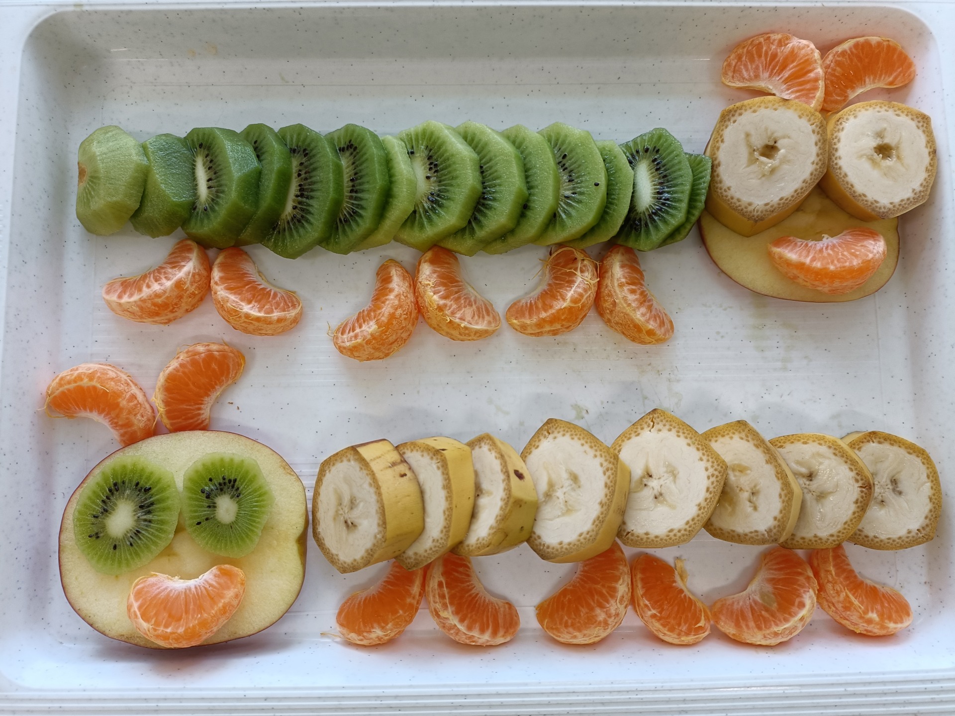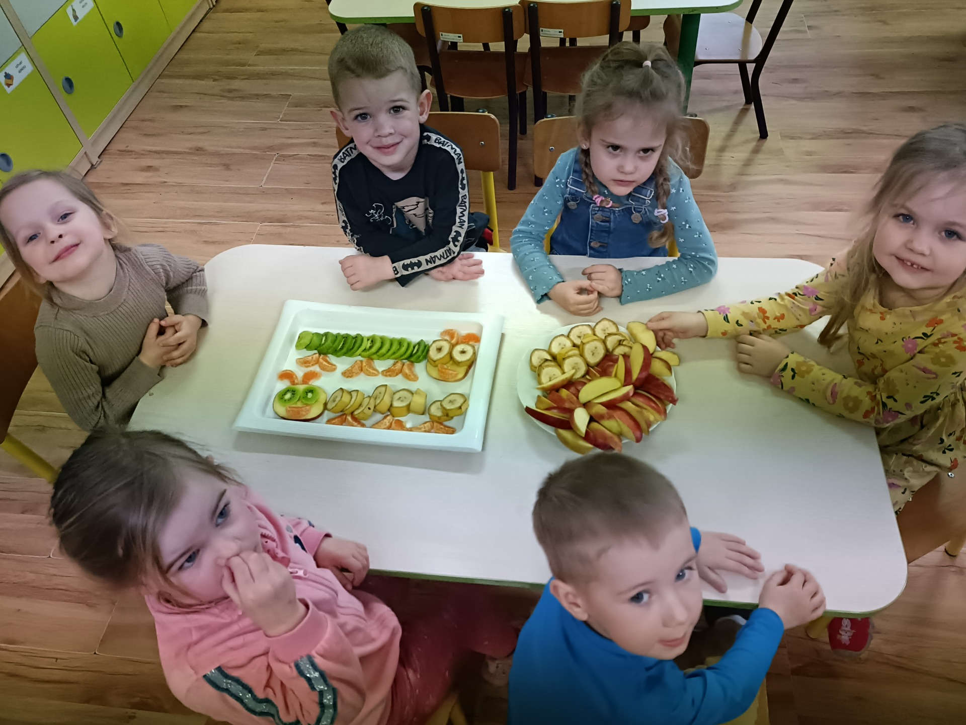 Jadłospis dziecka powinien być zrównoważony. Udany pomysł na podwieczorek dla dzieci to z pewnością smaczne i zdrowe owoce. Ten posiłek ma dodatkową zaletę – może wyglądać pięknie i smakowicie- przekonały się o tym wczoraj dzieci z Punktu Przedszkolnego, które ze smakiem zajadały wspaniale przygotowany przez panie kucharki posiłek.