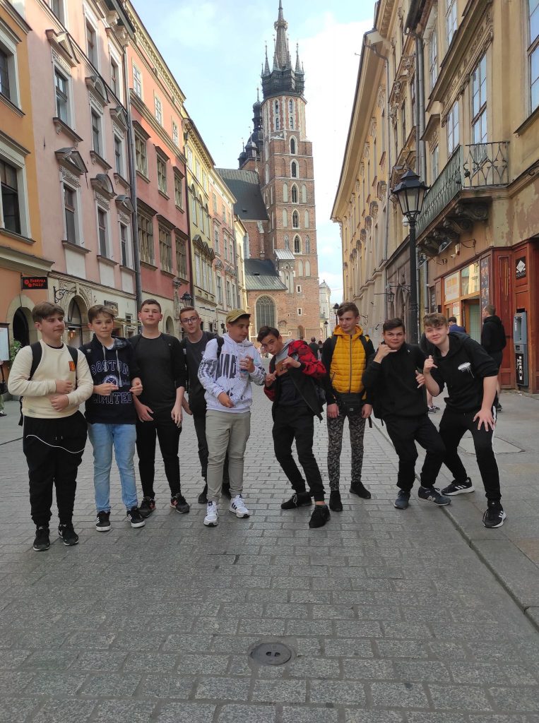 W środę, 8.06.2022 roku, uczniowie klas VII i VIII, wraz z wychowawcami p. Eweliną Borkowską i p. Remigiuszem Łubowskim, pociągiem udali się na wycieczkę do Krakowa i Oświęcimia. Wizyta w Autentycznym Miejscu Pamięci jest unikatowym doświadczeniem edukacyjnym i ogromnym przeżyciem. Historia obozu w Auschwitz jest niezwykle złożona. Łączył on dwie funkcje: obozu koncentracyjnego i ośrodka zagłady. Nazistowskie Niemcy prześladowały w nim różne grupy ludzi, a kompleks obozowy nieustannie rozbudowywano i przekształcano. Wizyta w obozie wywarła niezatarte wrażenia na naszej młodzieży . Na lekcjach historii, dowiedzieli się o istnieniu takiego miejsca i co się tam działo, ale to co zobaczyli na żywo przerosło ich wyobrażenia. Bloki w muzeum zwiedzaliśmy w ciszy i zadumie. Wstrząsający był widok setek, a nawet tysięcy par butów, należących, niegdyś do więźniów, szczególnie tych najmniejszych, zdjętych 4 – 6 latkowi. Widzieliśmy wiele walizek, naczyń, bo każdy myślał że zostanie tylko przesiedlony. W budynkach na ścianach, były zawieszone zdjęcia ludzi, a pod nimi informację o wieku, tożsamości, masie i czasie spędzonym w obozie. Pani przewodnik, poinformowała że człowiek wytrzymywał maksymalnie 3 miesiące w obozie. Przez ten okres ludzie byli wykańczani fizycznie oraz psychicznie. Była to niezwykła lekcja historii i na pewno uczniowie, nigdy nie zapomną tej wizyty na największym cmentarzysku świata. Po zwiedzaniu obozu, udaliśmy się do Krakowa. Na miejscu zwiedziliśmy Stare Miasto, min. Sukiennice, ratusz, kościół Mariacki. Następnie udaliśmy się na wzgórze Wawel, gdzie znajduję się zamek królewski.