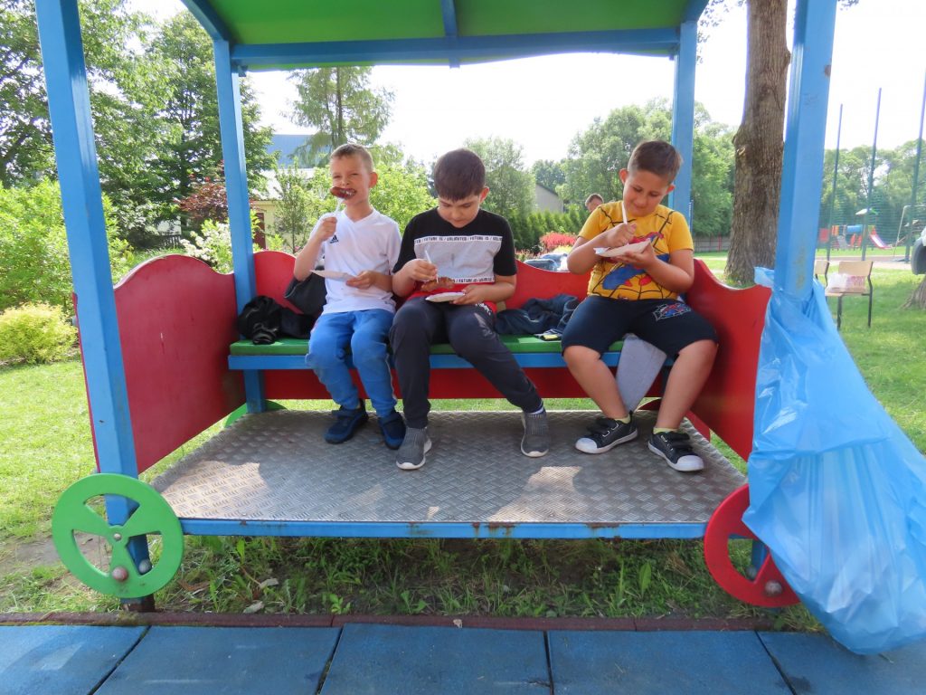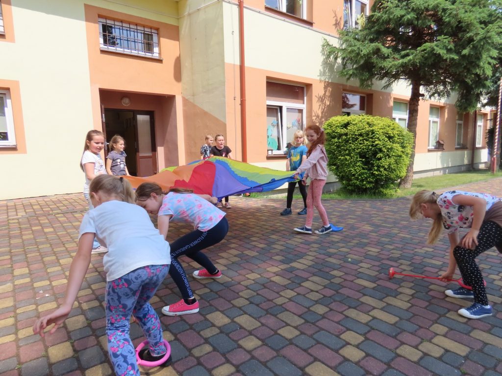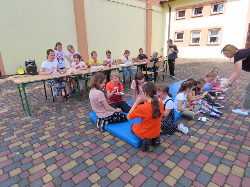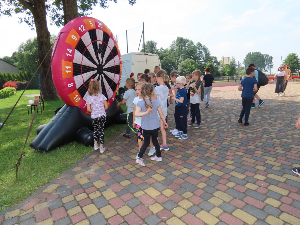 9 czerwca b.r. obchodziliśmy w naszej szkole Dzień Dziecka. Tego dnia uśmiech nie schodził z dziecięcych twarzy. Uczniowie w odpowiednich grupach świetnie bawiły się na hali i świeżym powietrzu. Korzystały z zasponsorowanego przez Radę Rodziców przy Szkole Podstawowej w Kunicach dmuchanego placu zabaw, zjeżdżalni, trampoliny, toru przeszkód. Dodatkowo każde dziecko odwiedziło kawiarenkę gdzie przemiły Pan Maciej częstował watą cukrową lub popcornem. Punktem kulminacyjnym było jedzenie przepysznych kiełbasek z grilla. Dzień Dziecka w naszej szkole obfitował w wiele atrakcji. Uczniowie puszczali bańki, przeciągali linę, tańczyli, rzucali do tarczy i chętne brały udział w sportowych rozgrywkach. Ten wyjątkowy dzień, dostarczył dzieciom wielu emocji.