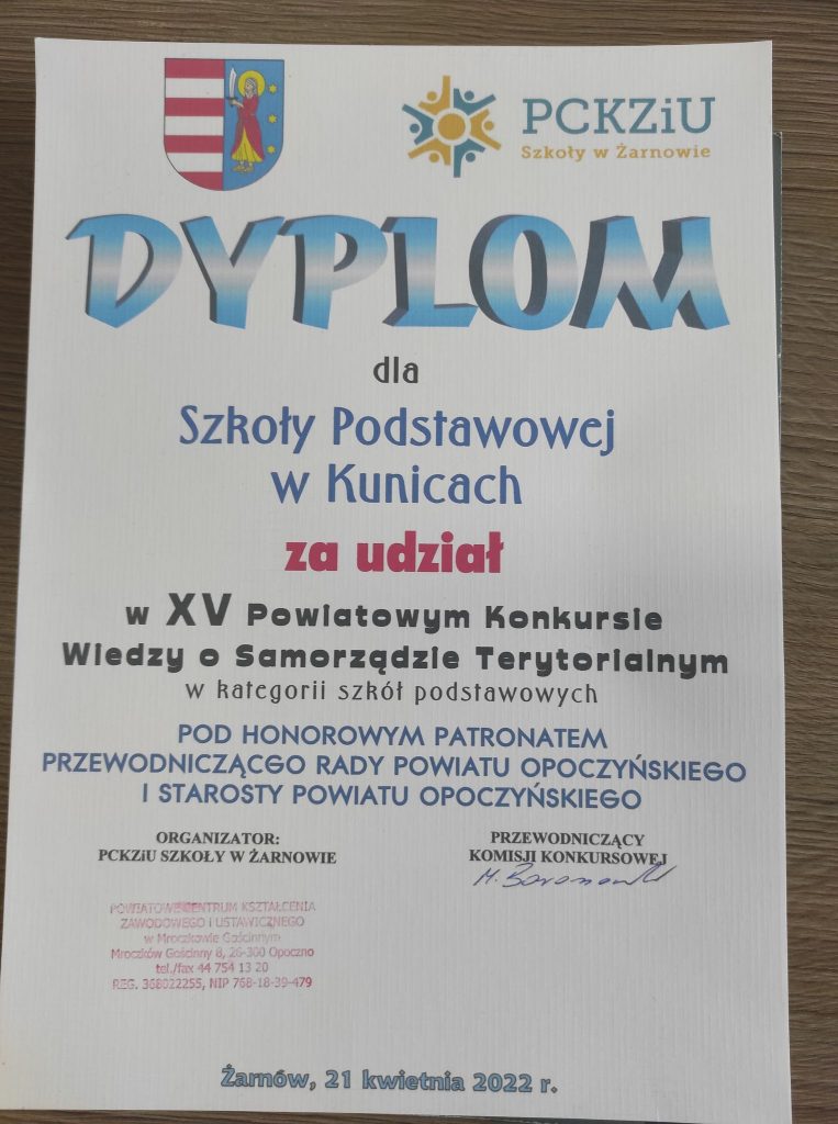 Dnia 28 kwietnia b.r w Szkole Podstawowej w Kunicach odbył się uroczysty apele z okazji 231 rocznicy uchwalenia Konstytucji 3 Maja. Aby upamiętnić ten doniosły fakt z historii Polski uczniowie z klas 0 i 8 pod kierunkiem p. Anny Kupis i p. Remigiusza Łubowskiego przygotowali montaż słowno-muzyczny o patriotycznej wymowie. Apel rozpoczęto wprowadzeniem sztandaru oraz odśpiewaniem hymnu państwowego. Uczniowie recytowali wiersze i śpiewali pieśni. Podczas uroczystości przybliżono okoliczności ustanowienia konstytucji z 1791 roku. Podkreślono, że był to drugi tego typu dokument na świecie i pierwszy w Europie. Ponadto uczniowie z kl. 0 zatańczyli Poloneza, a dziewczynki z kl.5 i 8 zaprezentowały taniec z flagami do melodii „ Two Steps From Hell- Heart Of Courage”. Piękną dekorację przygotowały p. Barbara Wielgus i p. Ewelina Borkowska.