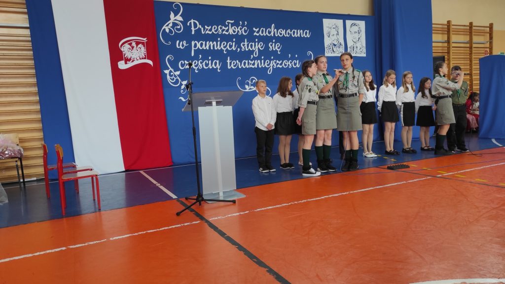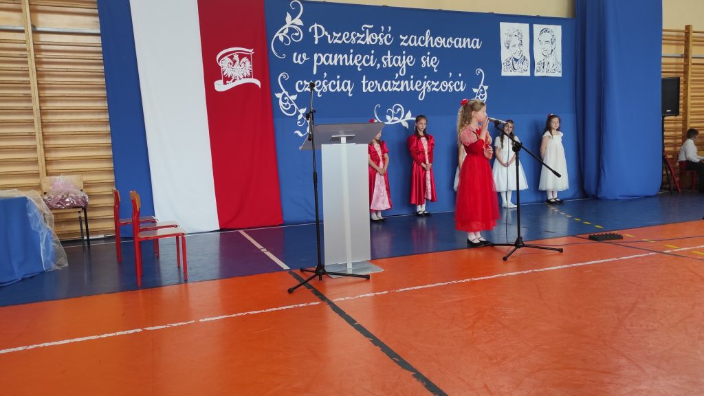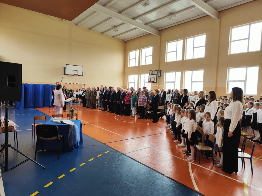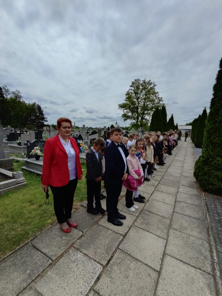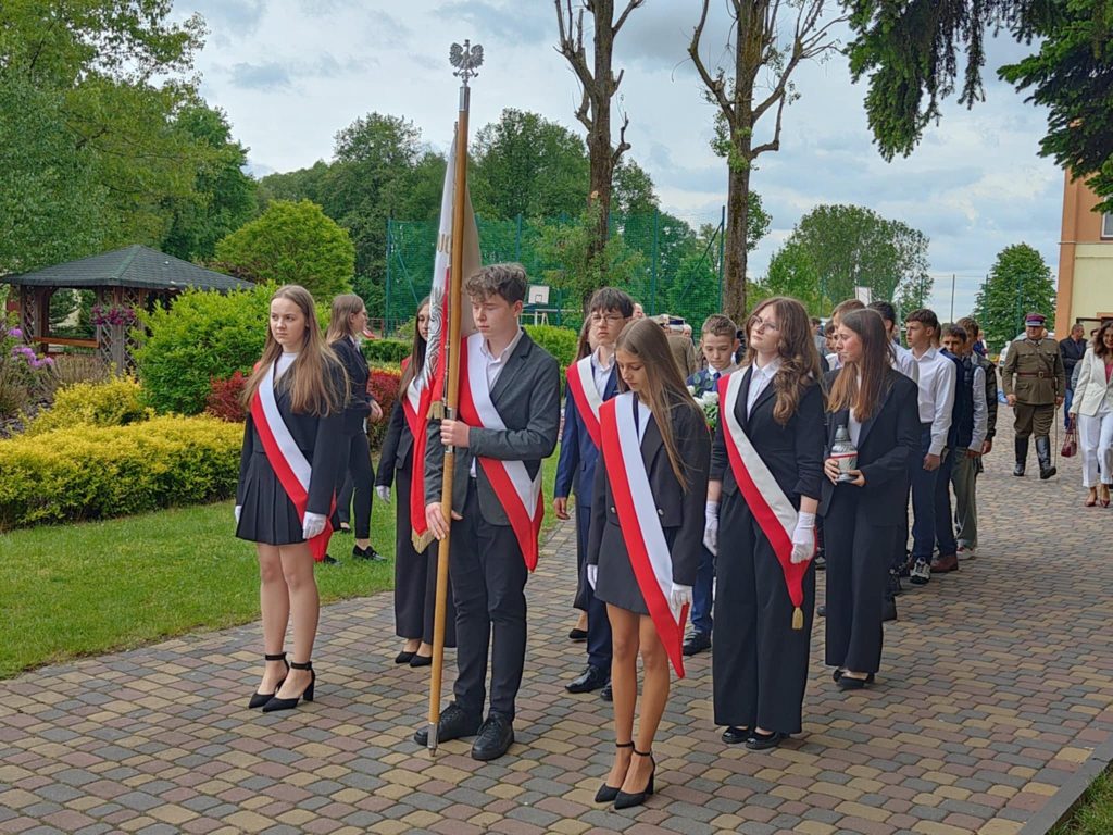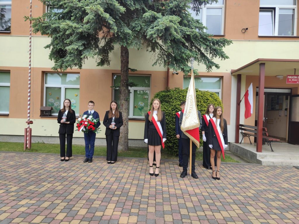 23 maja 2025 r. w Publicznej Szkole Podstawowej im. Wandy i Henryka Ossowskich w Kunicach był obchodzony Dzień Patrona – Święto Szkoły. Uroczystość rozpoczęła się od powitania zaproszonych gości przez panią dyrektor Beatę Chrustowicz. Wśród przybyłych gości byli; syn patrona szkoły Henryk Ossowski z rodziną, Wójt Gminy Sławno – Tadeusz Wojciechowski, zastępca Wójta -pani Beata Szlęzak, przedstawiciele Związku Żołnierzy Wojska Polskiego w Piotrkowie Trybunalskim oraz Stowarzyszenia Ułanów im. Oddziału Wydzielonego Wojska Polskiego majora Hubala, członkowie Hubalowej Rodziny, prezes Stowarzyszenia Byłych i Czynnych Żołnierzy Kawalerii Powietrznej ROTA BELLATORIS, członkowie Stowarzyszenia „Hubalczycy” 1939-1940″,pani Aleksandra Ziółkowska- Boehm – Honorowy Obywatel Gminy Sławno. Następnie uczniowie, nauczyciele oraz wszyscy przybyli udali się na miejscowy cmentarz, gdzie spoczywają patroni szkoły – Wanda i Henryk Ossowscy oraz pozostali członkowie ich rodziny. Po Apelu Poległych przeprowadzonym przez pana Stefana Mazura i zapaleniu zniczy, pamięć o zmarłych z rodziny Ossowskich uczczono minutą ciszy. Dalsza część obchodów Dnia Patrona miała miejsce w szkole, gdzie uczniowie przygotowani przez panią Jolantę Gajewską, Ewę Stępniewską oraz Jolantę Szmigiel zaprezentowali się w montażu słowno – muzycznym o charakterze patriotycznym. Uczniowie klasy II przygotowani przez panią Jolantę Szmigiel odnieśli się do tak radosnego wydarzenia w naszej historii, jakim było uchwalenie Konstytucji 3 Maja. W swym występie przypomnieli o historycznym znaczeniu tej konstytucji, patriotycznych wartościach i historii jej uchwalenia. Uczniowie klasy IV i VI przypomnieli natomiast o tym, jak niezwykłymi ludźmi byli patroni naszej szkoły. To święto sprawia, że zatrzymujemy się na chwilę i wspominamy ludzi, którzy poświęcili życie za Ojczyznę. Piękna dekoracja wykonana przez Martynę Piwowarczyk, Annę Kupis i Annę Dziurzyńską podkreśliła uroczysty charakter tego dnia.
