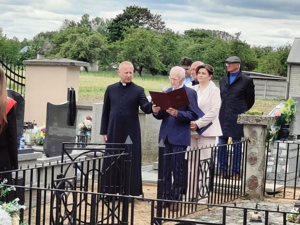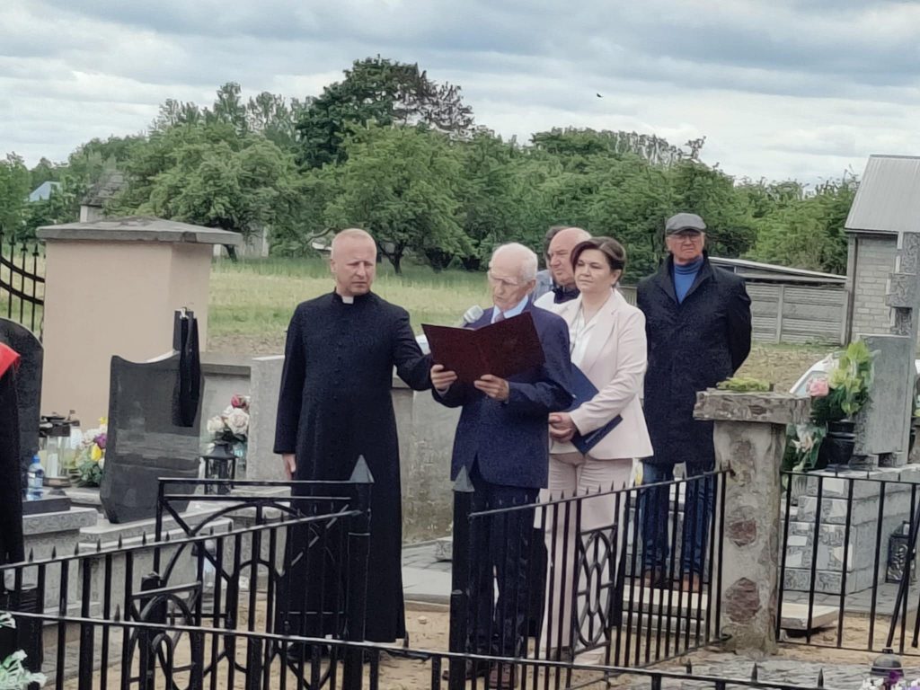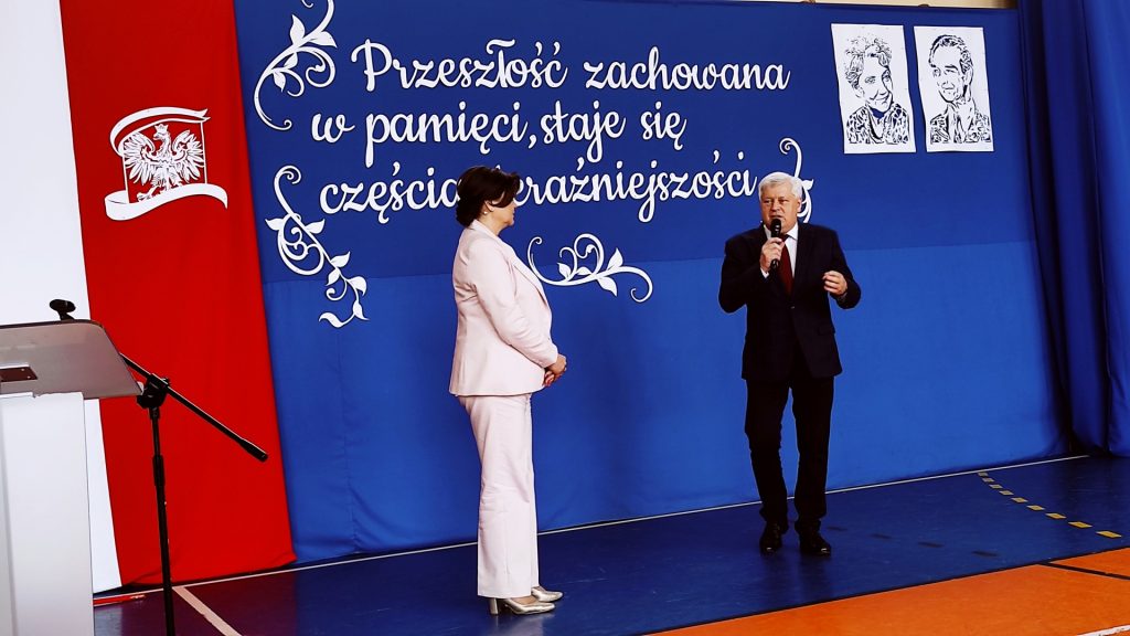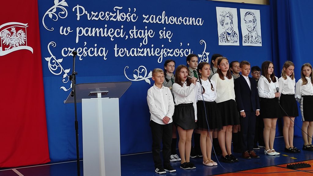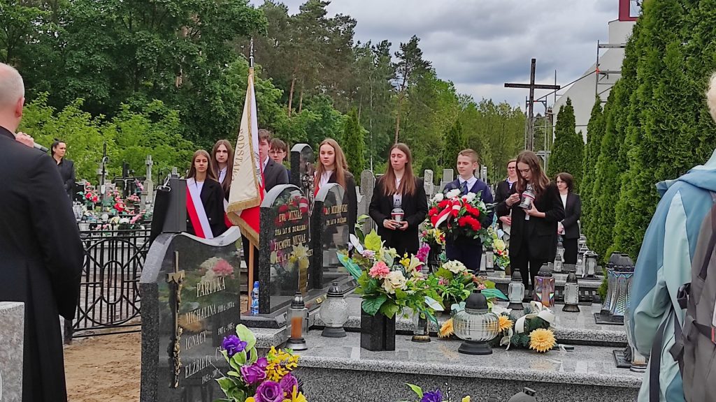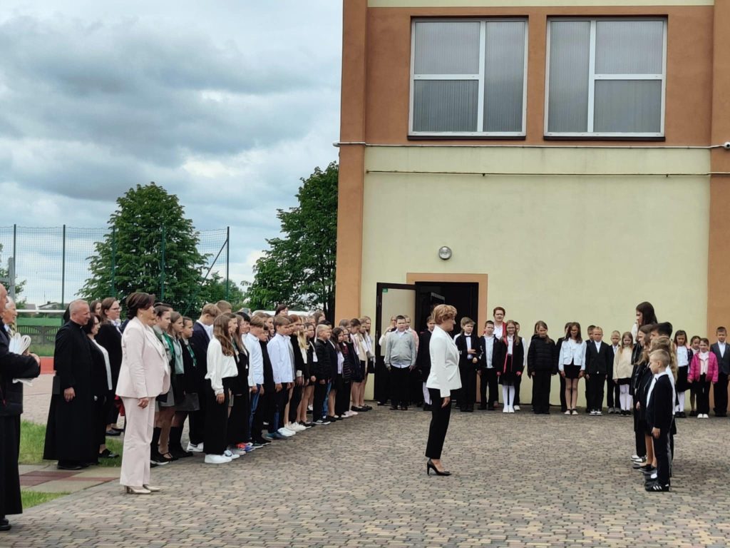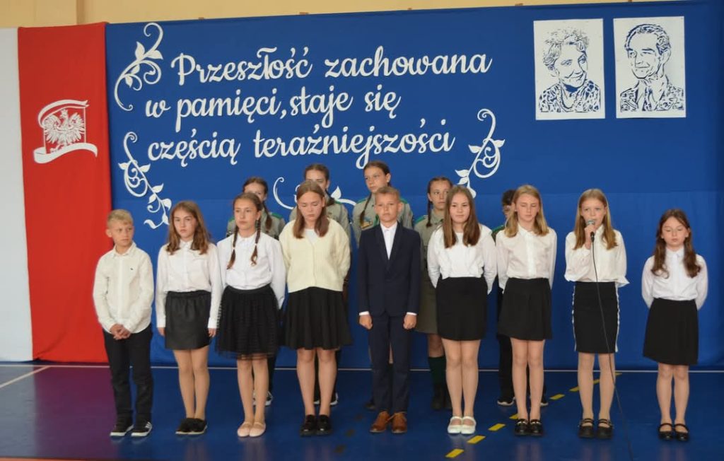23 maja 2025 r. w Publicznej Szkole Podstawowej im. Wandy i Henryka Ossowskich w Kunicach był obchodzony Dzień Patrona – Święto Szkoły. Uroczystość rozpoczęła się od powitania zaproszonych gości przez panią dyrektor Beatę Chrustowicz. Wśród przybyłych gości byli; syn patrona szkoły Henryk Ossowski z rodziną, Wójt Gminy Sławno – Tadeusz Wojciechowski, zastępca Wójta -pani Beata Szlęzak, przedstawiciele Związku Żołnierzy Wojska Polskiego w Piotrkowie Trybunalskim oraz Stowarzyszenia Ułanów im. Oddziału Wydzielonego Wojska Polskiego majora Hubala, członkowie Hubalowej Rodziny, prezes Stowarzyszenia Byłych i Czynnych Żołnierzy Kawalerii Powietrznej ROTA BELLATORIS, członkowie Stowarzyszenia „Hubalczycy” 1939-1940″,pani Aleksandra Ziółkowska- Boehm – Honorowy Obywatel Gminy Sławno. Następnie uczniowie, nauczyciele oraz wszyscy przybyli udali się na miejscowy cmentarz, gdzie spoczywają patroni szkoły – Wanda i Henryk Ossowscy oraz pozostali członkowie ich rodziny. Po Apelu Poległych przeprowadzonym przez pana Stefana Mazura i zapaleniu zniczy, pamięć o zmarłych z rodziny Ossowskich uczczono minutą ciszy. Dalsza część obchodów Dnia Patrona miała miejsce w szkole, gdzie uczniowie przygotowani przez panią Jolantę Gajewską, Ewę Stępniewską oraz Jolantę Szmigiel zaprezentowali się w montażu słowno – muzycznym o charakterze patriotycznym. Uczniowie klasy II przygotowani przez panią Jolantę Szmigiel odnieśli się do tak radosnego wydarzenia w naszej historii, jakim było uchwalenie Konstytucji 3 Maja. W swym występie przypomnieli o historycznym znaczeniu tej konstytucji, patriotycznych wartościach i historii jej uchwalenia. Uczniowie klasy IV i VI przypomnieli natomiast o tym, jak niezwykłymi ludźmi byli patroni naszej szkoły. To święto sprawia, że zatrzymujemy się na chwilę i wspominamy ludzi, którzy poświęcili życie za Ojczyznę. Piękna dekoracja wykonana przez Martynę Piwowarczyk, Annę Kupis i Annę Dziurzyńską podkreśliła uroczysty charakter tego dnia.