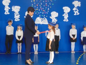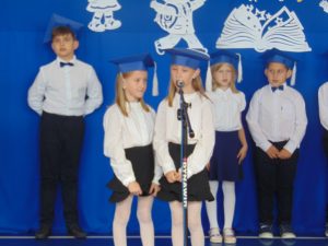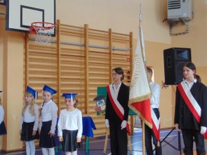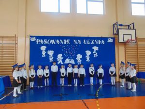 W podniosłej atmosferze, przed pocztem sztandarowym, pierwszoklasiści w pięknych biretach, ślubowali być dobrymi uczniami i Polakami, godnie reprezentować swoją szkołę i klasę, zachowaniem i nauką sprawiać radość rodzicom