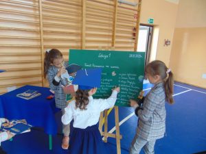 i drobne upominki. Po części oficjalnej uczniowie udali się na słodki poczęstunek przygotowany przez ich rodziców. Uczniowie klasy 1:Aleksander Chachuła, Iga Franas, Antonina Gorzałczyńska, Nikola Kowalska, Aleksandra Krawczyk, Helena Kuleta, Julia Kuleta, Zuzanna Kuleta, Oliwia Matysiak, Jakub Ogłoziński, Adam Pawlik, Alicja Przybyła, Michalina Rudzka, Mikołaj Szmulski, Adam Śmigiel, Julia Wijata, Aleksandra Wróbel, Alicja Zdulska.