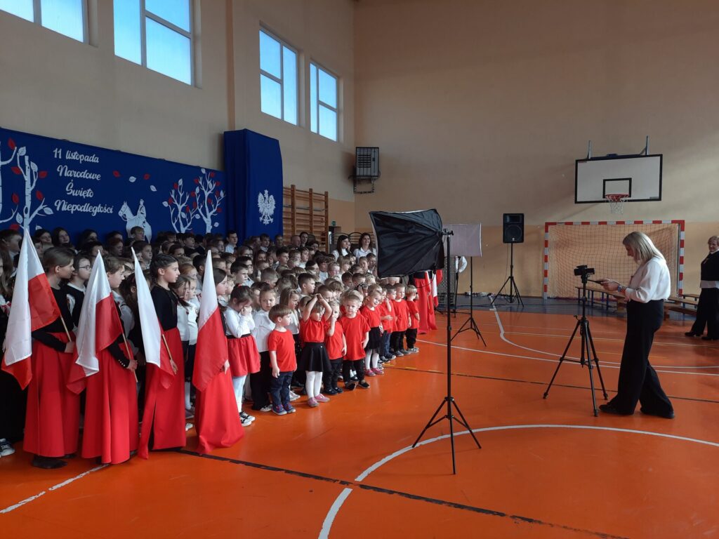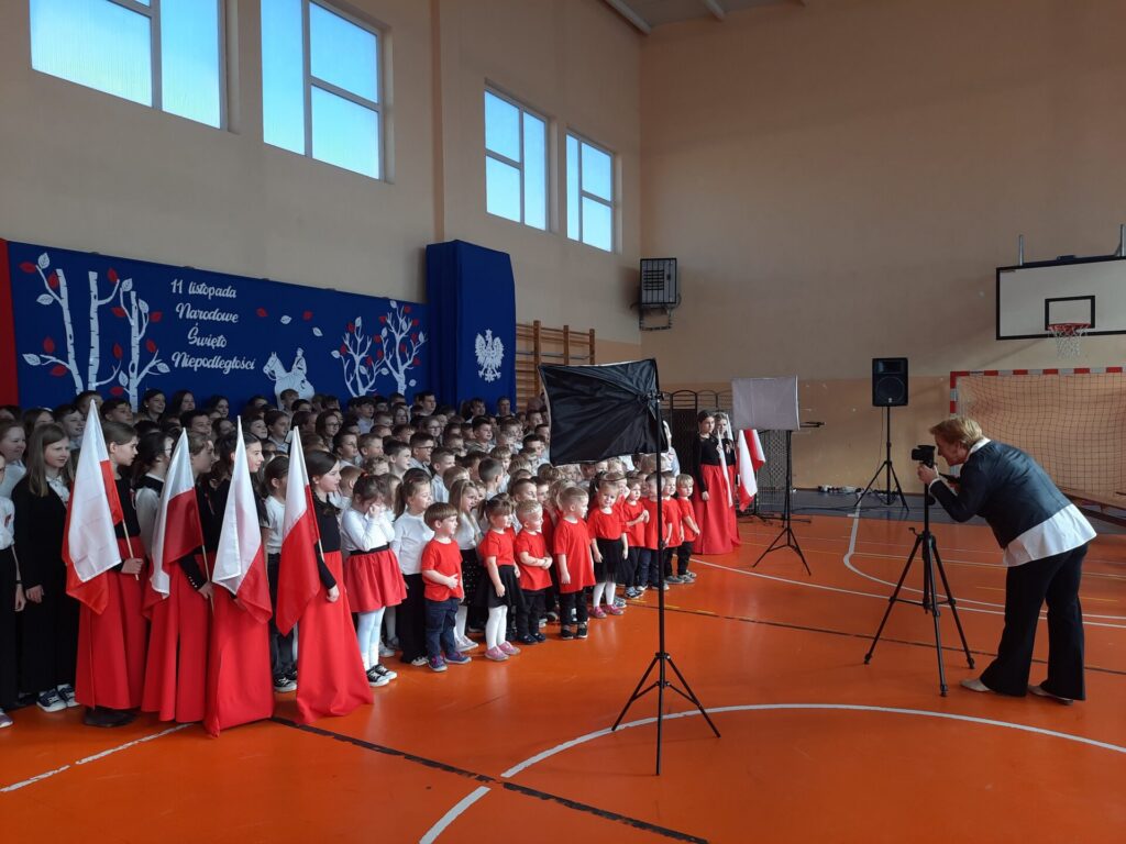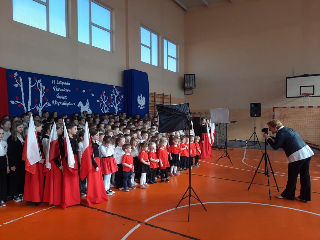Dnia 7 listopada w naszej szkole odbyło się uroczyste śpiewanie hymnu Polski. Dzięki sprzętowi zakupionemu w ramach programu Laboratoria przyszłości nagranie i sesja zdjęciowa były profesjonalne. Wszyscy uczniowie w tym dniu ubrani byli na galowo. Tego typu inicjatywy integrują zespoły klasowe i kształtują poczucie tożsamości narodowej.