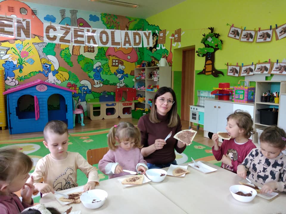 Ten słodki dzień bardzo przypadł dzieciom do gustu! Maluszki rozmawiały z ciociami również o tym że czekoladę można jeść, ale z umiarem i że warto jednak częściej sięgać po warzywa i owoce! Ale raz do roku możemy pozwolić sobie na taki słodki, szalony dzień w przedszkolu…