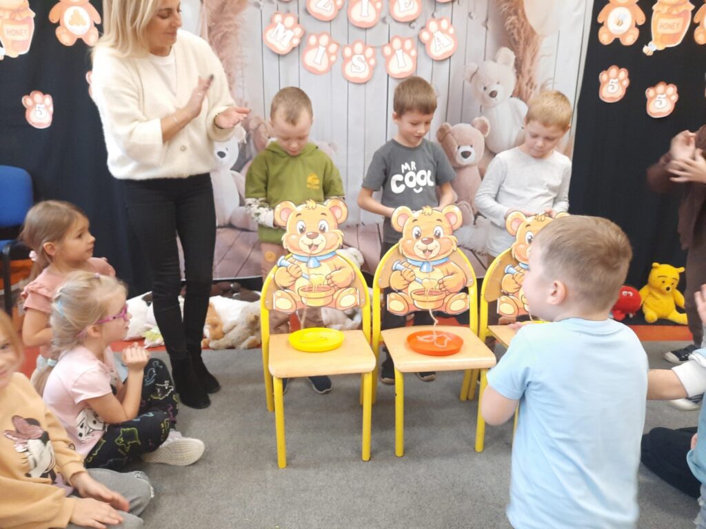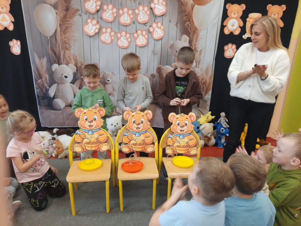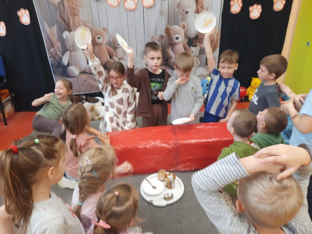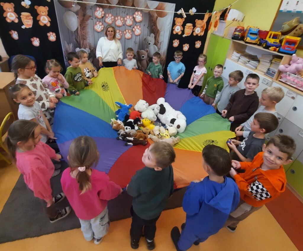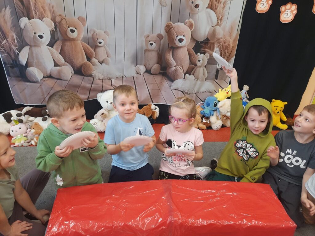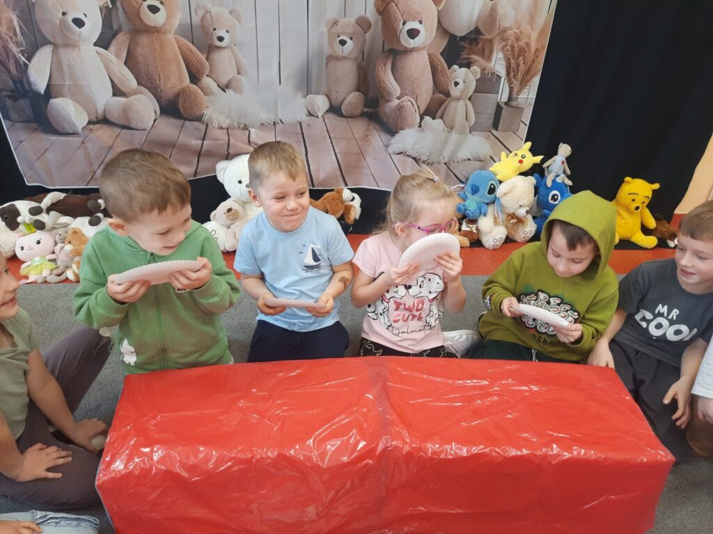 Uczniowie klasy „0” bawili się „Bum Bum Rurkami”, wystukując na nich gamę w górę i w dół. Ćwiczenia rytmiczne z wykorzystaniem tych instrumentów okazały się dla dzieci wyjątkowo atrakcyjne i angażujące. Dzięki zabawie z kolorowymi rurkami uczniowie rozwijali poczucie rytmu, koordynację ruchową oraz wrażliwość muzyczną.
