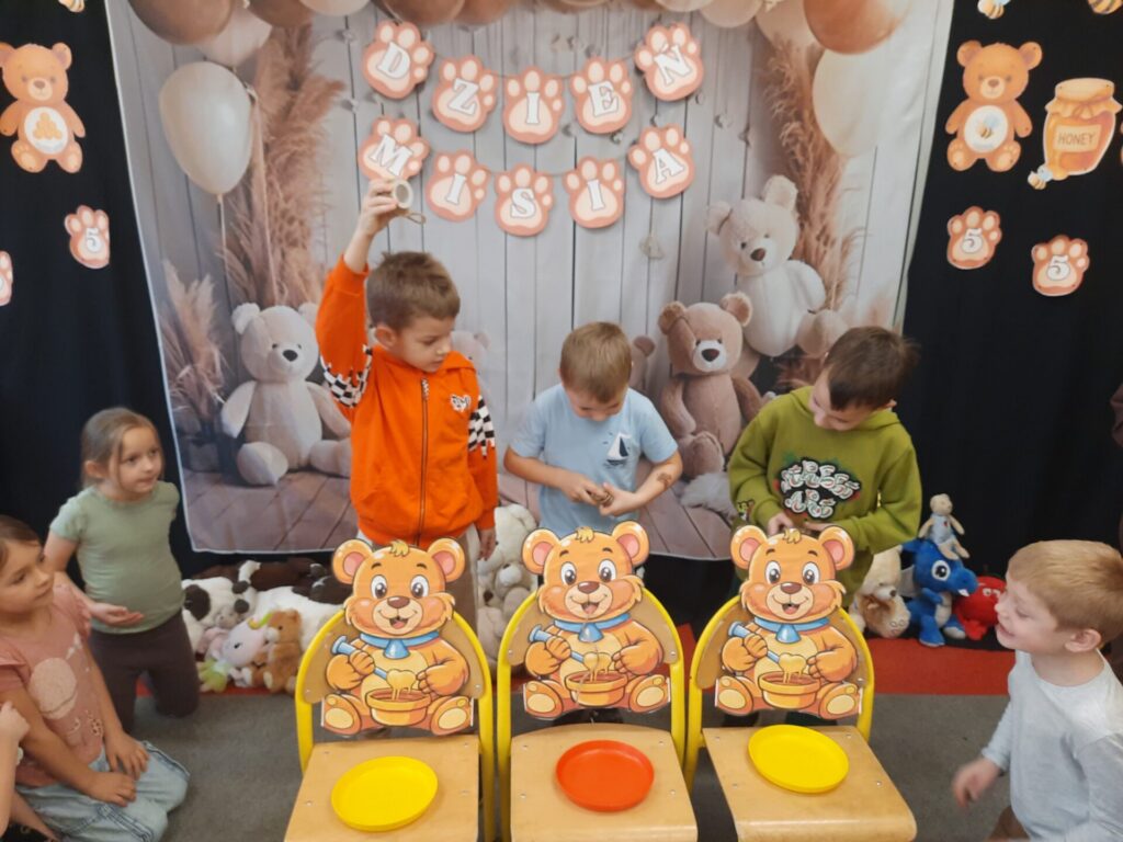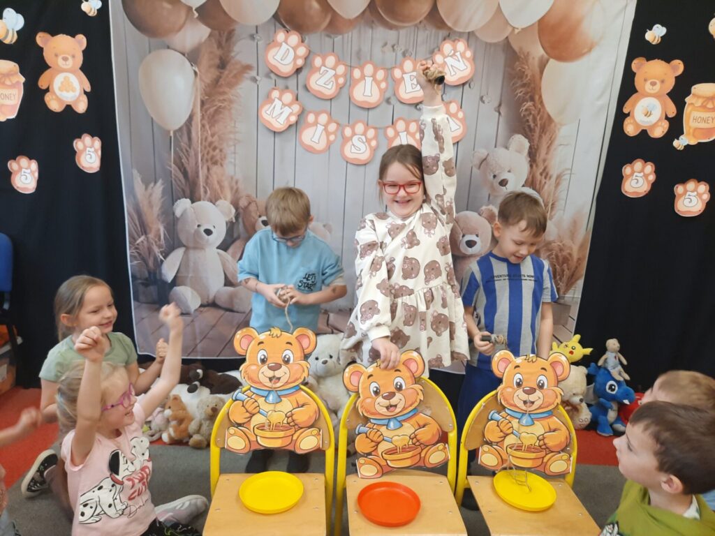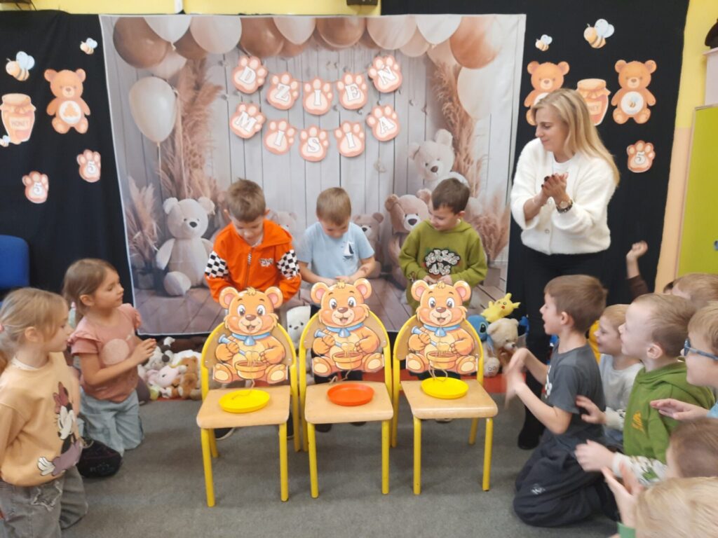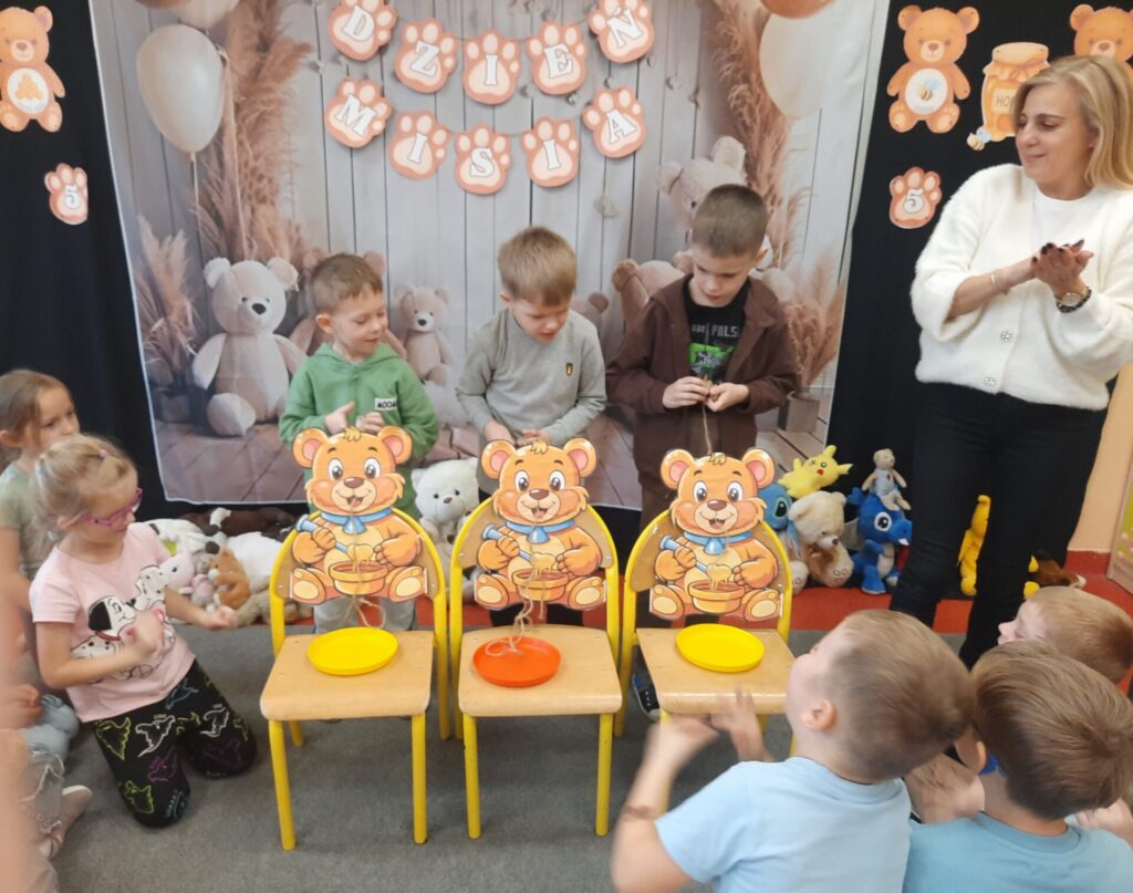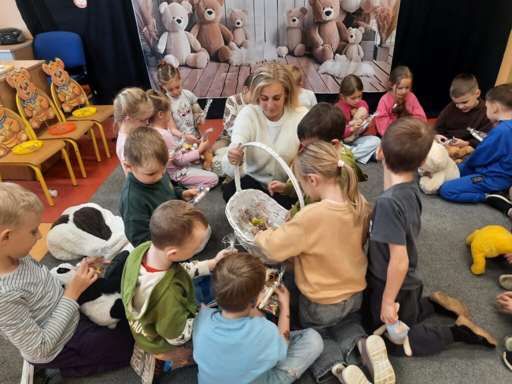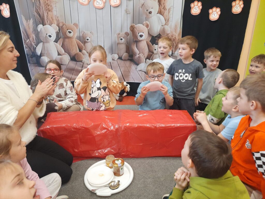 Uczniowie klasy „0” bawili się „Bum Bum Rurkami”, wystukując na nich gamę w górę i w dół. Ćwiczenia rytmiczne z wykorzystaniem tych instrumentów okazały się dla dzieci wyjątkowo atrakcyjne i angażujące. Dzięki zabawie z kolorowymi rurkami uczniowie rozwijali poczucie rytmu, koordynację ruchową oraz wrażliwość muzyczną.