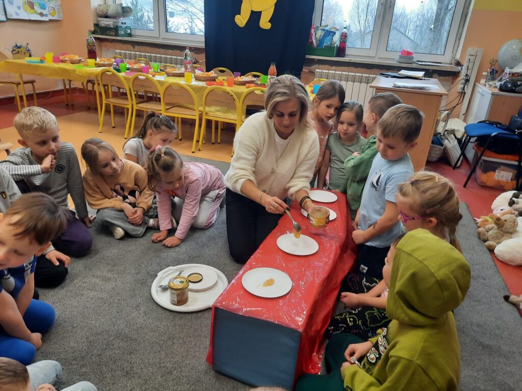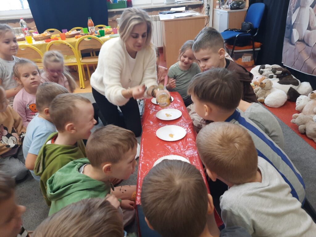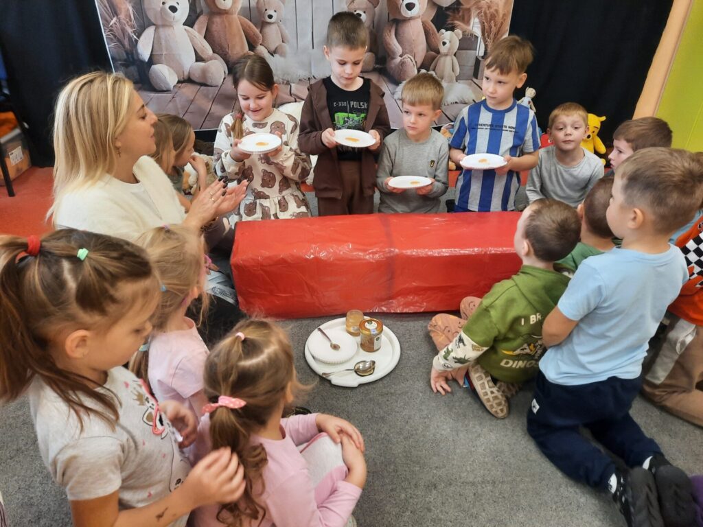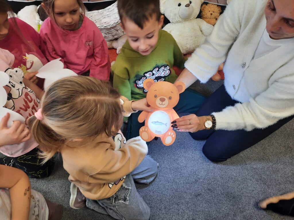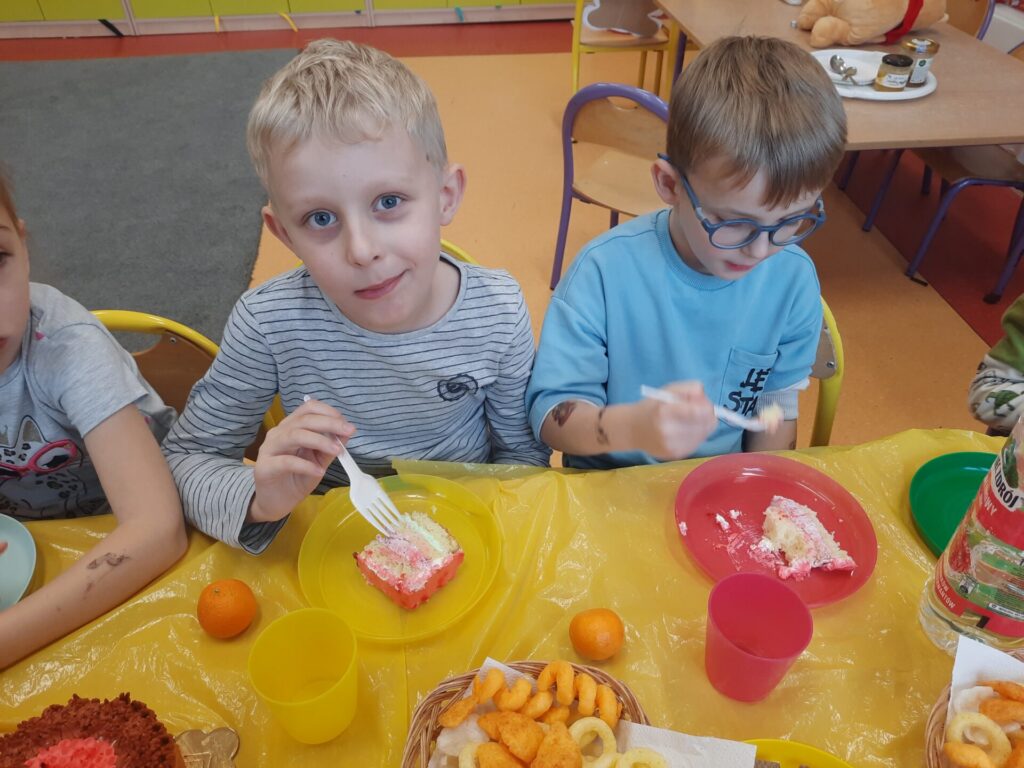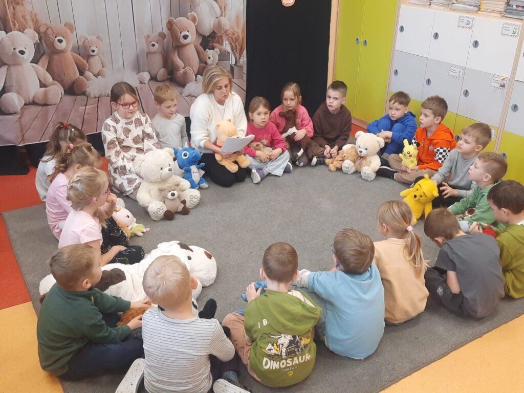 Uczniowie klasy „0” bawili się „Bum Bum Rurkami”, wystukując na nich gamę w górę i w dół. Ćwiczenia rytmiczne z wykorzystaniem tych instrumentów okazały się dla dzieci wyjątkowo atrakcyjne i angażujące. Dzięki zabawie z kolorowymi rurkami uczniowie rozwijali poczucie rytmu, koordynację ruchową oraz wrażliwość muzyczną.