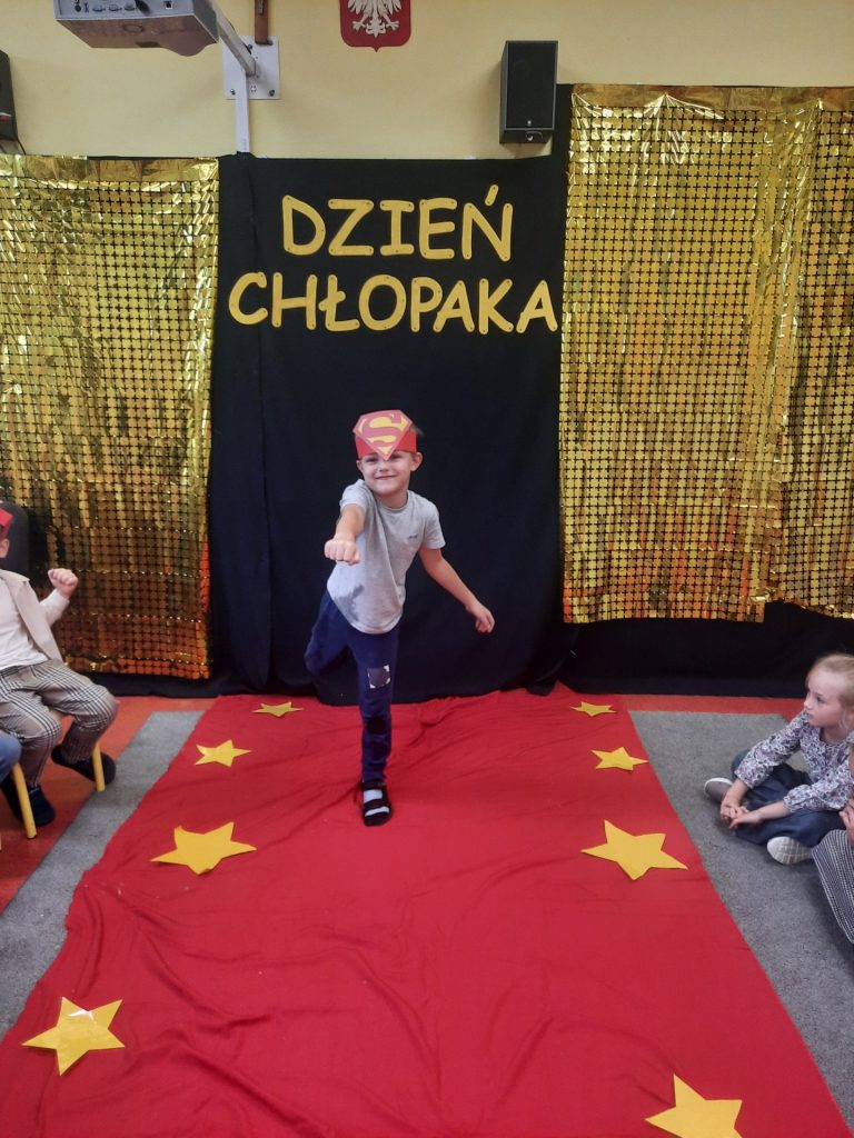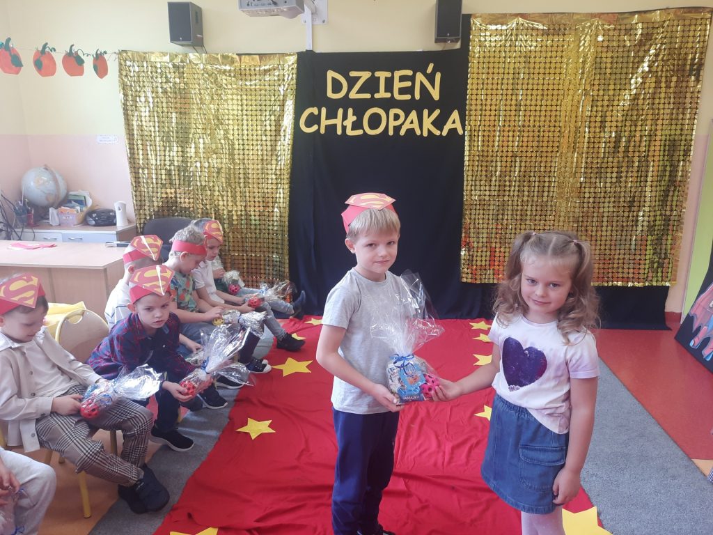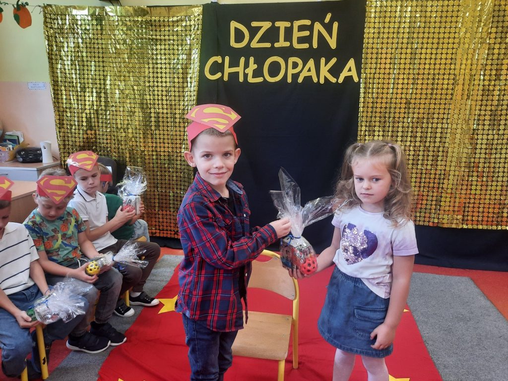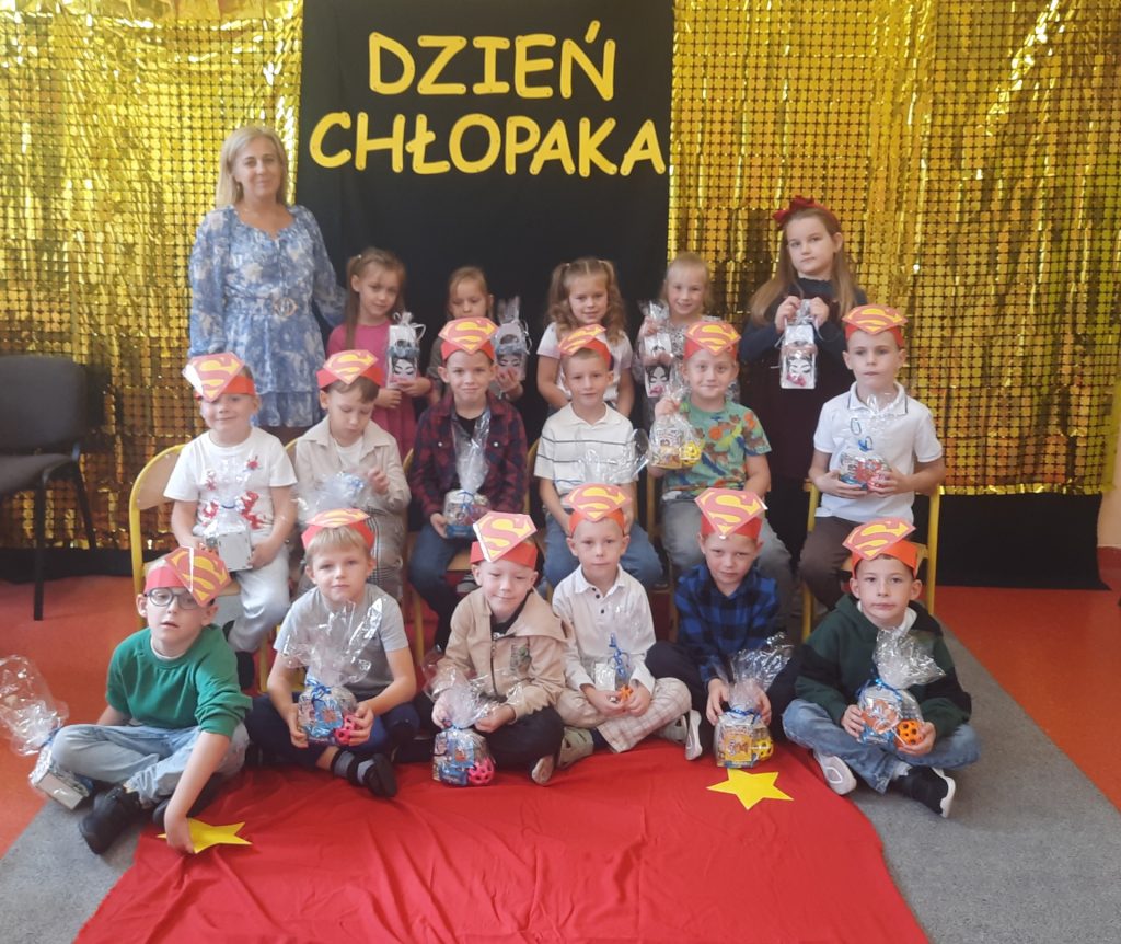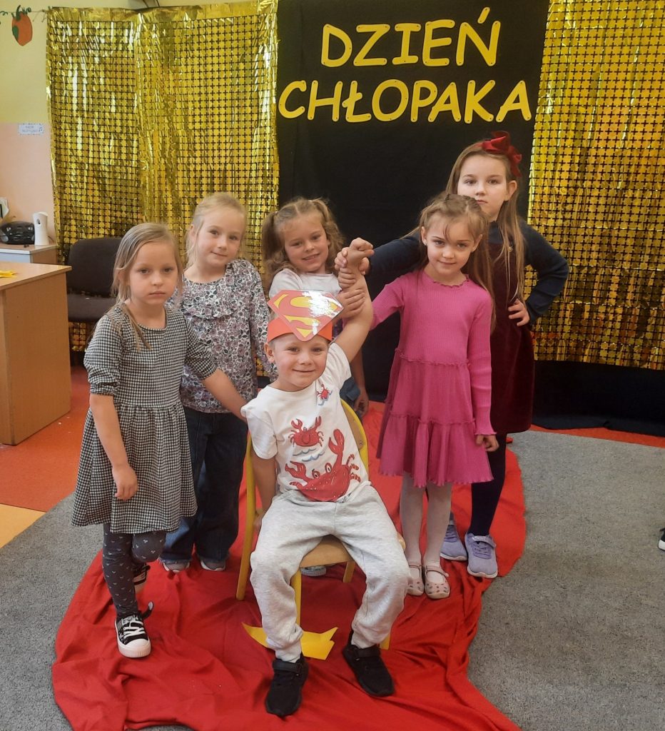 Jak co roku w przedszkoly pod koniec września obchodzimy Dzień Chłopaka. Jest to wyjątkowy dzień dla naszych dzieci. W tym roku na chłopaków czekało wiele niespodzianek i atrakcji. Były różne gry, zabawy i konkursy. Tego wyjątkowego dnia dziewczynki zamieniły się w jurorów, a chłopcy brali udział w przeróżnych konkurencjach na MISTERA PRZEDSZKOLAKÓW m.in. odgadywanie po znaczku marki samochodów, rzucali do celu, wykonywali pompki, tańczyli, prezentowali się na czerwonym dywanie. Nie zabrakło również samodzielnie wykonanych przez dziewczynki upominków i opasek Supermena dla naszych małych chłopaków. Uwieńczeniem imprezy był przepyszny poczęstunek przygotowany przez rodziców uczniów, za co serdecznie dziękujemy.