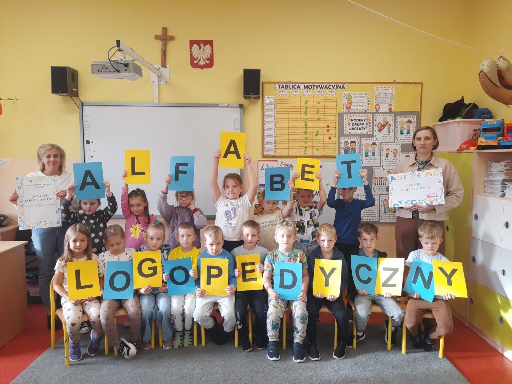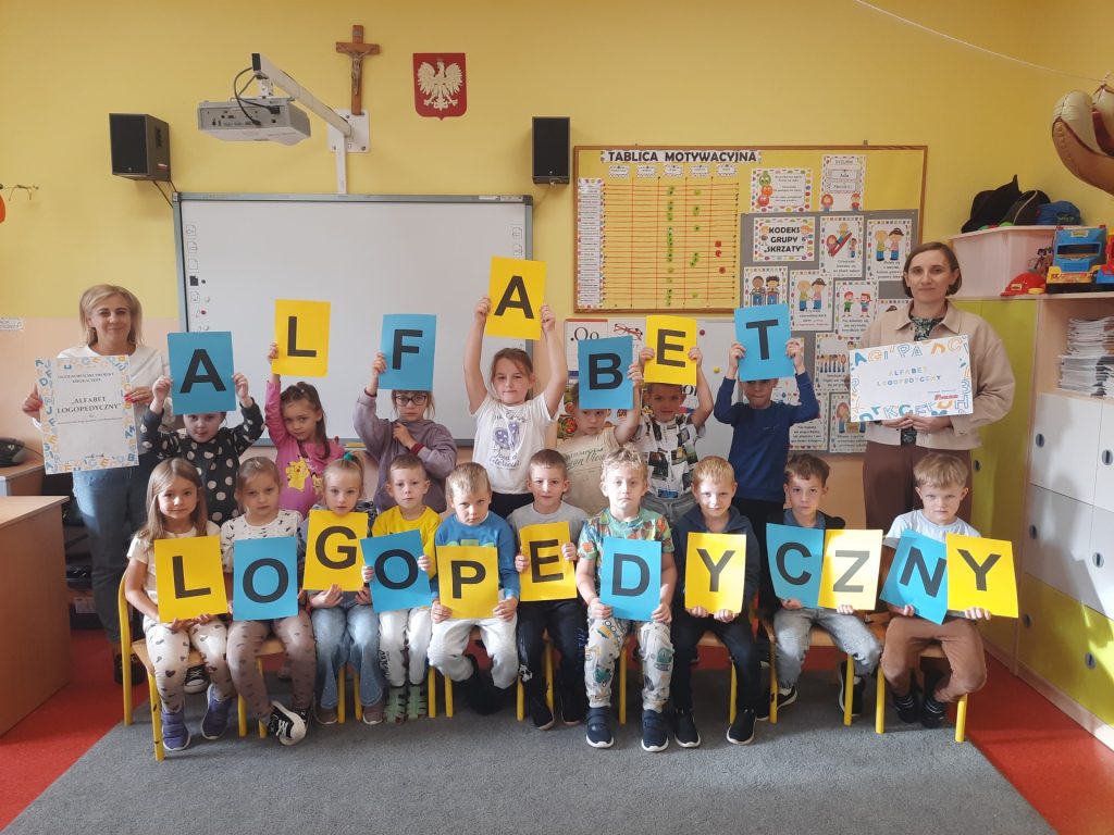 Z początkiem października dzieci z oddziału przedszkolnego pod kierunkiem pani Anny Kupis i pani logopedy Anny Dziurzyńskiej zaczęły realizować Ogólnopolski Projekt Edukacyjny pt. „Alfabet Logopedyczny”, którego głównym celem jest dbanie o właściwą stymulację rozwoju mowy.