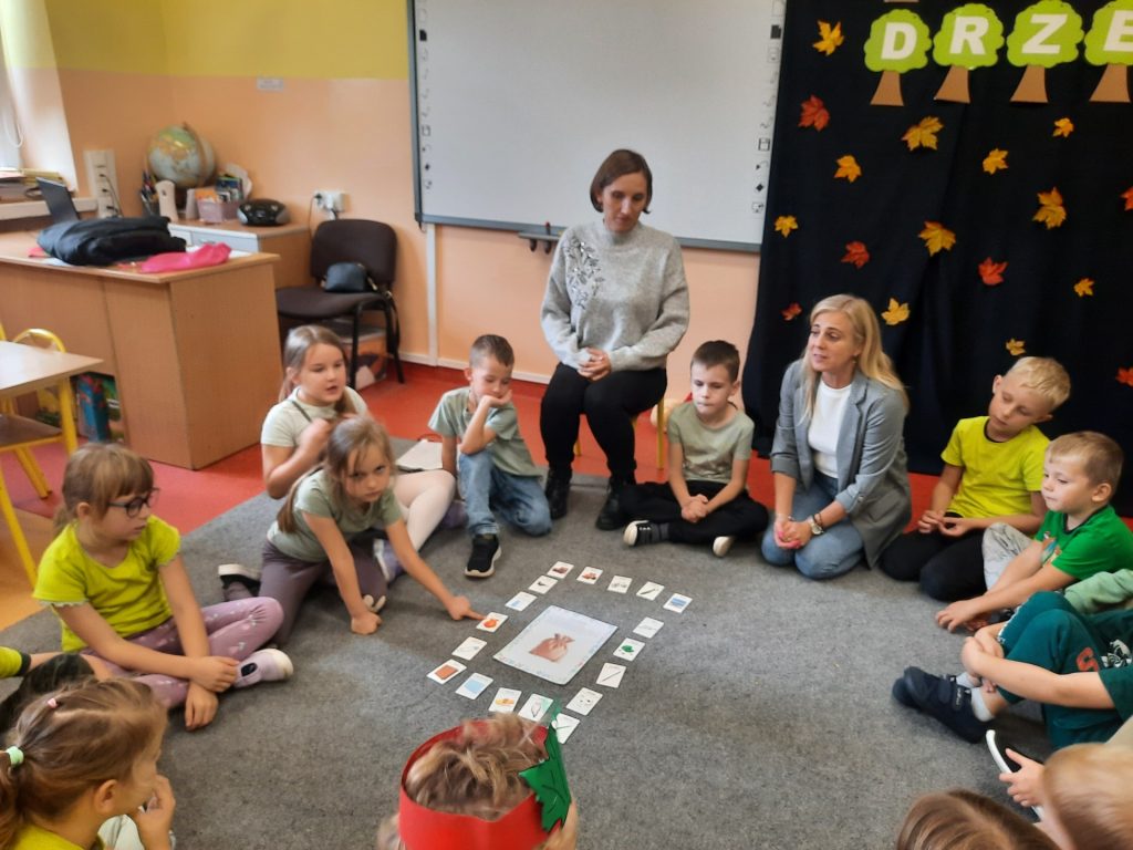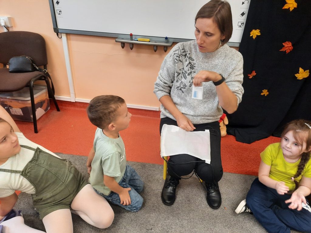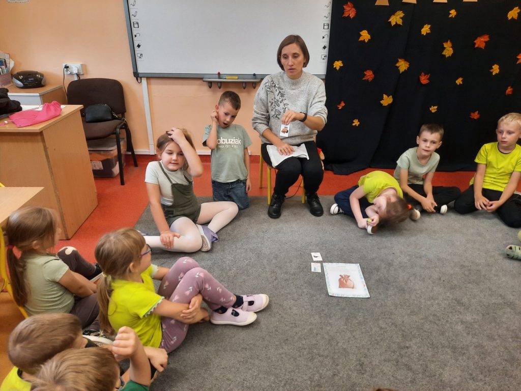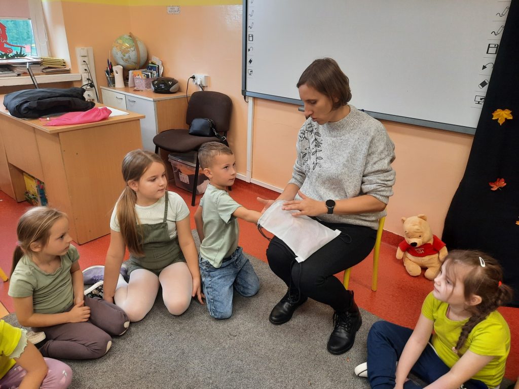 Na pierwszych zajęciach dominowała litera „o” jak obrazek. Dzieci ćwiczyły słuch fonematyczny.