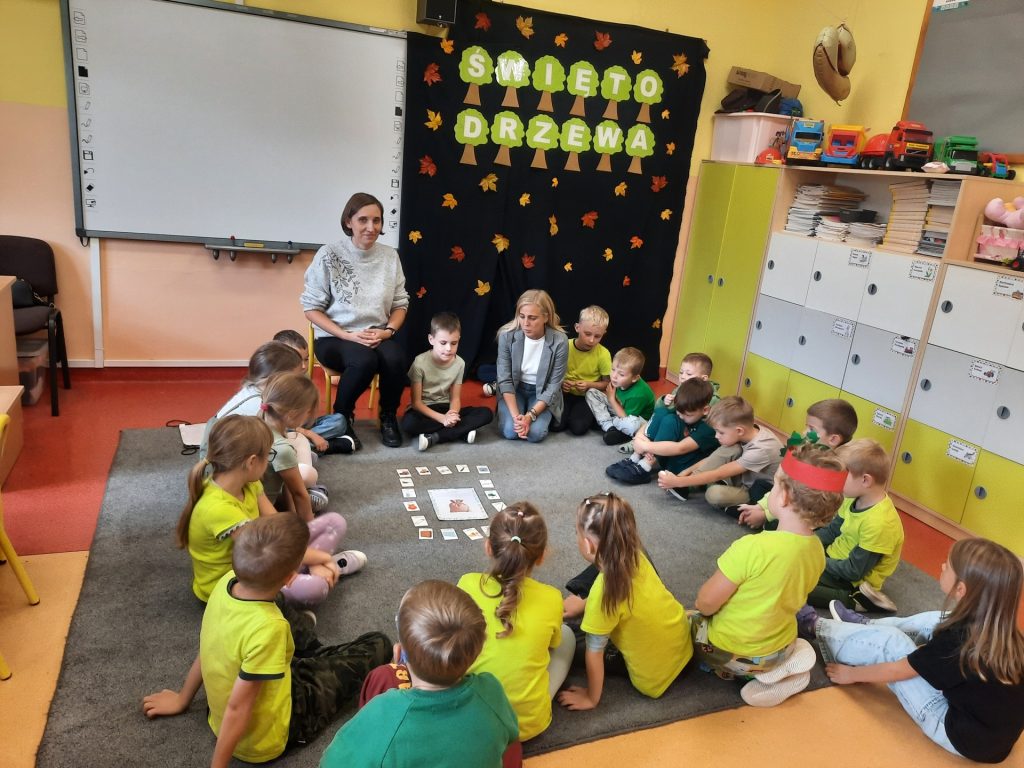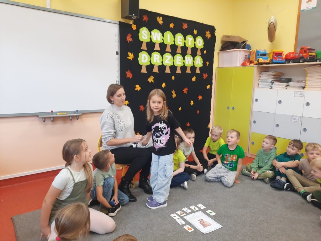 Dnia 7 października b.r. w naszym przedszkolu z okazji „Dnia Drzewa” gościliśmy Pana leśnika.Celem tego spotkania było zapoznanie dzieci z pracą leśnika. Nasz gość opowiedział, a zarazem przypomniał dzieciom o zwierzętach występujących w lesie. Pan leśnik opowiedział również o sadzeniu lasu, przypomniał roślinność występującą w lesie oraz poszerzył nasze wiadomości o ochronie drzew przed szkodnikami. Przypomniał też jak należy zachowywać się w lesie. Dzieci z dużym zainteresowaniem słuchały tych opowieści.