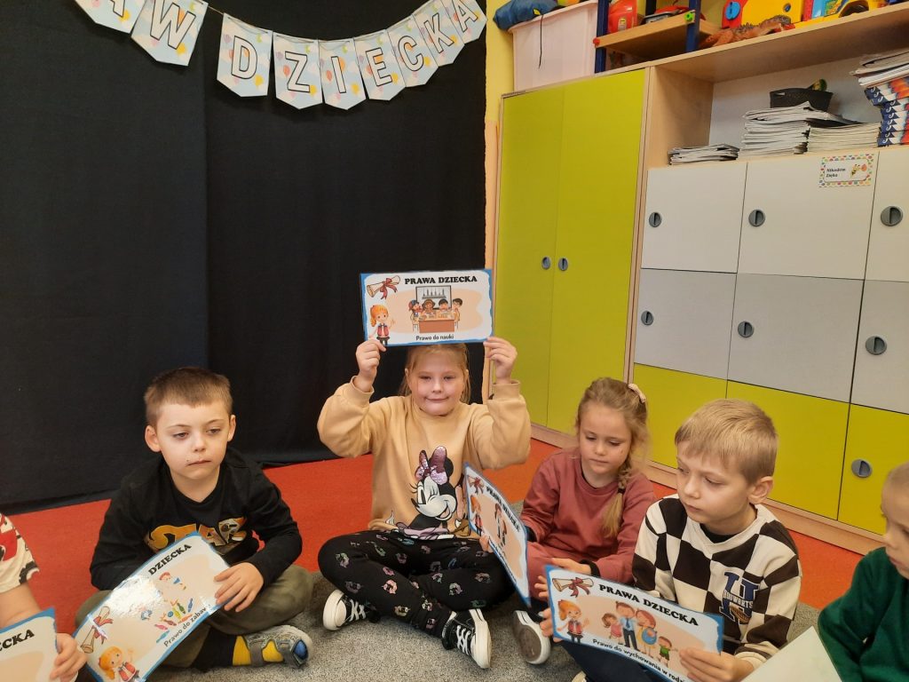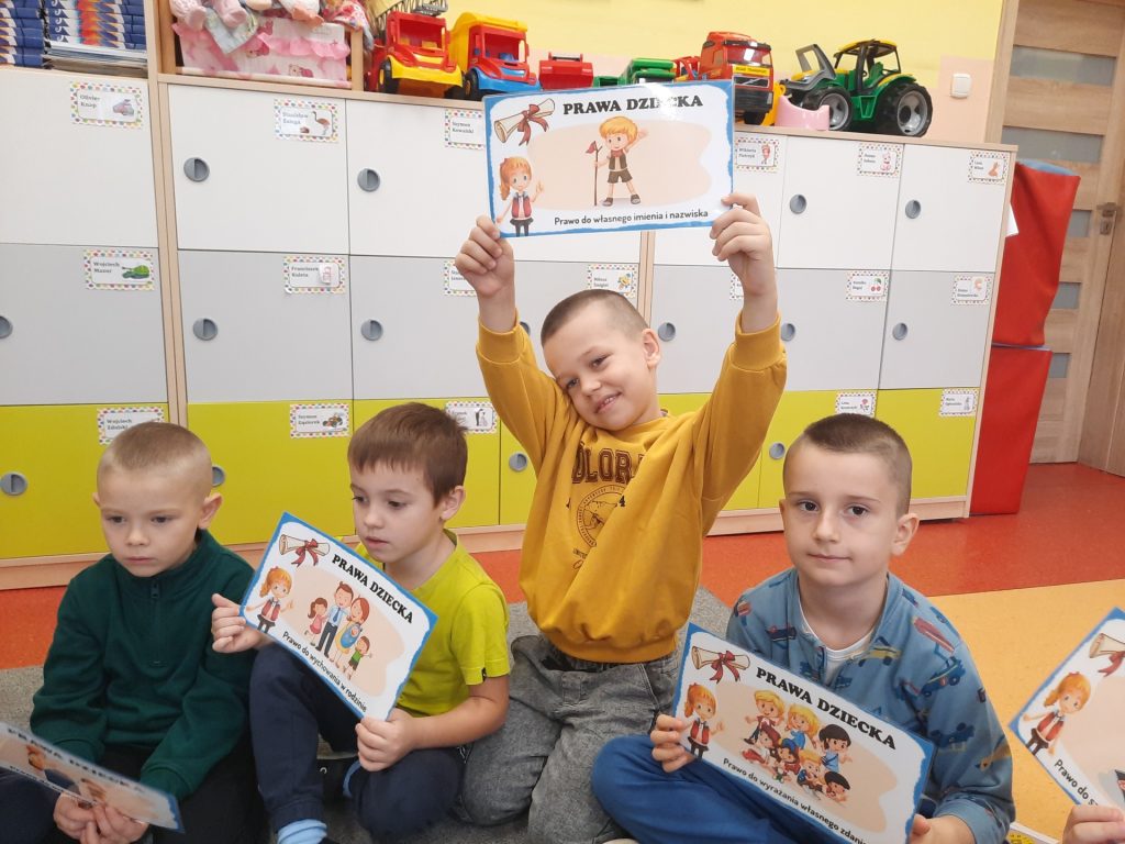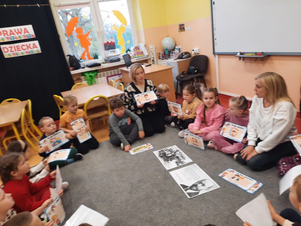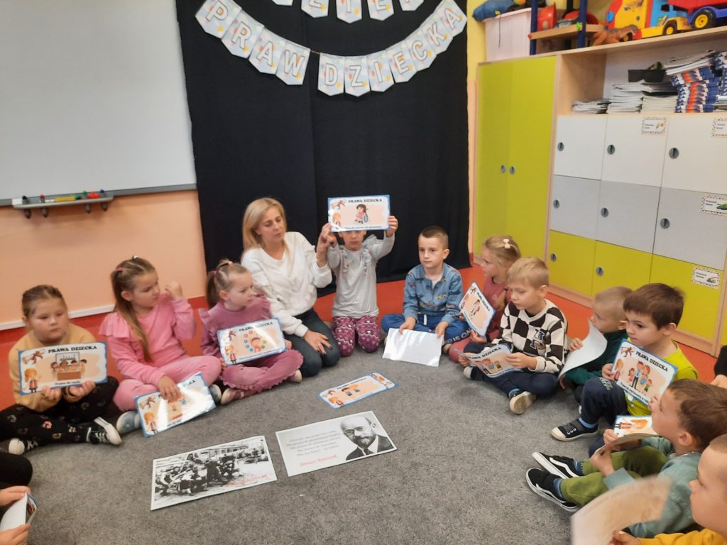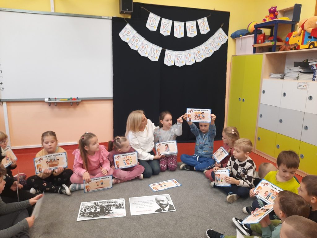 Starszaki z tej okazji odbyły rozmowy z paniami , omawiały otrzymane emblematy z prawami, zapoznały się z sylwetką wybitnego pedagoga Janusza Korczaka, obejrzały film edukacyjny o tematyce związanej z Konwencją o prawach dziecka. Były również zabawy dydaktyczne, wysłuchały piosenki ” Mam prawo do”. Na koniec celem podsumowania całego przedsięwzięcia Starszaki wykonały w grupach plakaty upamiętniające ten dzień i nadane im prawa. Należy podkreślić, że „prawa dziecka” chronią najmłodszych , ale i wspierają je w prawidłowym rozwoju. Znajomość praw pozwala dzieciom uchronić się przed różnymi niebezpieczeństwami. Z drugiej strony daje im możliwość aktywnego uczestniczenia w procesach podejmowania decyzji, które ich dotyczą. Rolą dorosłych jest nie tylko dbanie o to, aby prawa dziecka były przestrzegane, ale także szerzenie wiedzy o prawach dziecka, w tym edukowanie dzieci.
