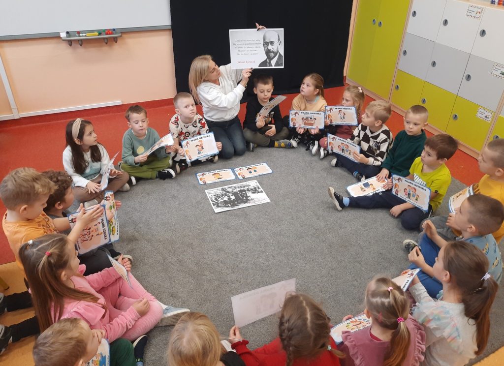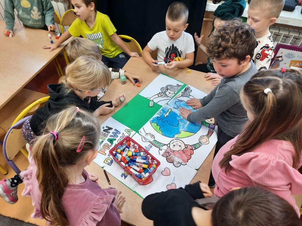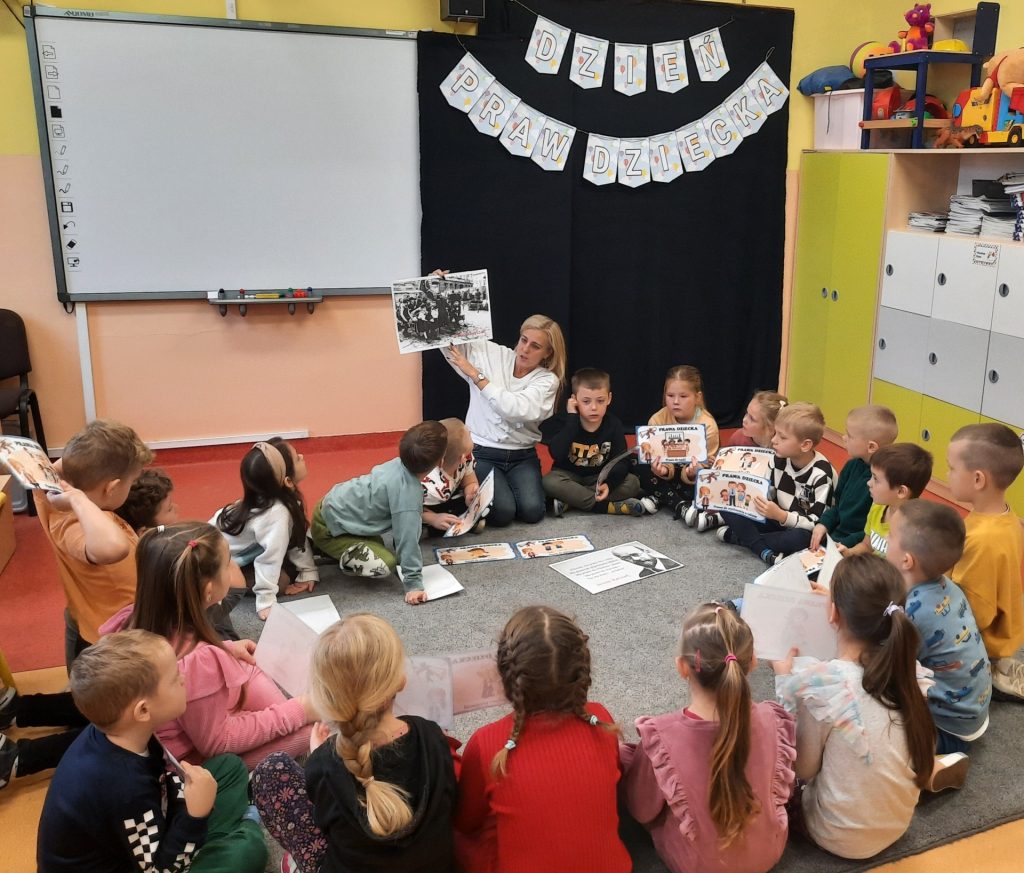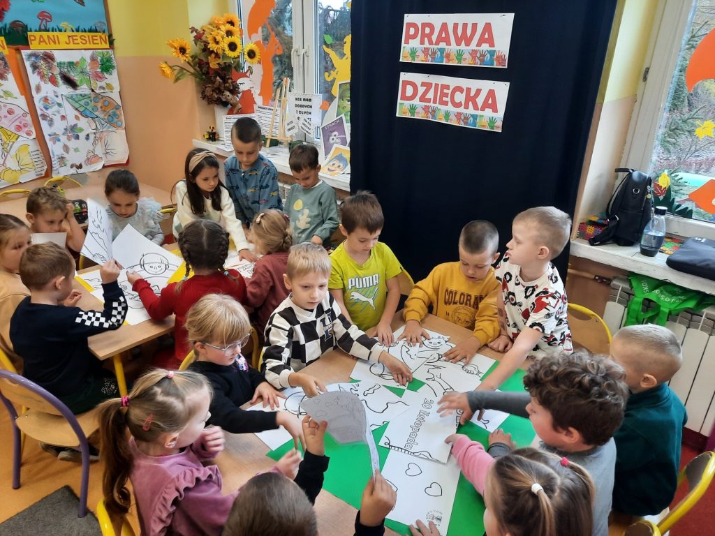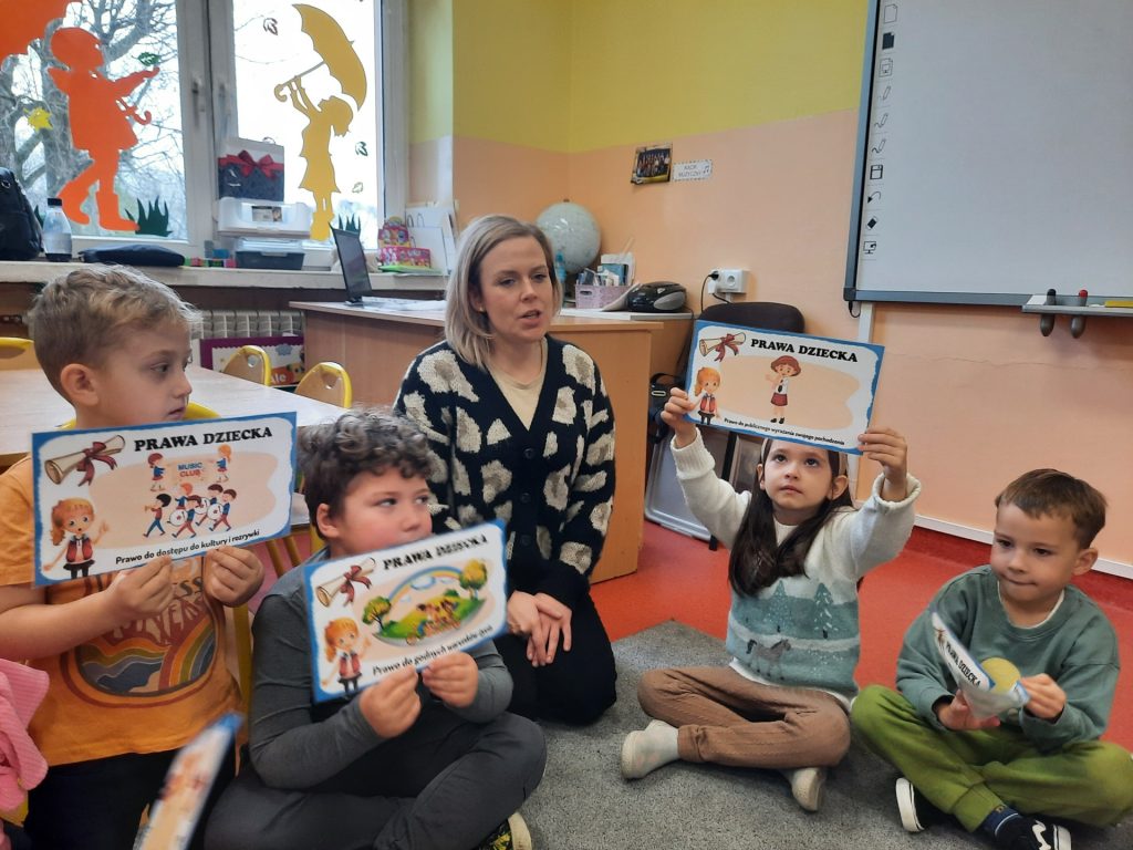 Starszaki z tej okazji odbyły rozmowy z paniami , omawiały otrzymane emblematy z prawami, zapoznały się z sylwetką wybitnego pedagoga Janusza Korczaka, obejrzały film edukacyjny o tematyce związanej z Konwencją o prawach dziecka. Były również zabawy dydaktyczne, wysłuchały piosenki ” Mam prawo do”. Na koniec celem podsumowania całego przedsięwzięcia Starszaki wykonały w grupach plakaty upamiętniające ten dzień i nadane im prawa. Należy podkreślić, że „prawa dziecka” chronią najmłodszych , ale i wspierają je w prawidłowym rozwoju. Znajomość praw pozwala dzieciom uchronić się przed różnymi niebezpieczeństwami. Z drugiej strony daje im możliwość aktywnego uczestniczenia w procesach podejmowania decyzji, które ich dotyczą. Rolą dorosłych jest nie tylko dbanie o to, aby prawa dziecka były przestrzegane, ale także szerzenie wiedzy o prawach dziecka, w tym edukowanie dzieci.