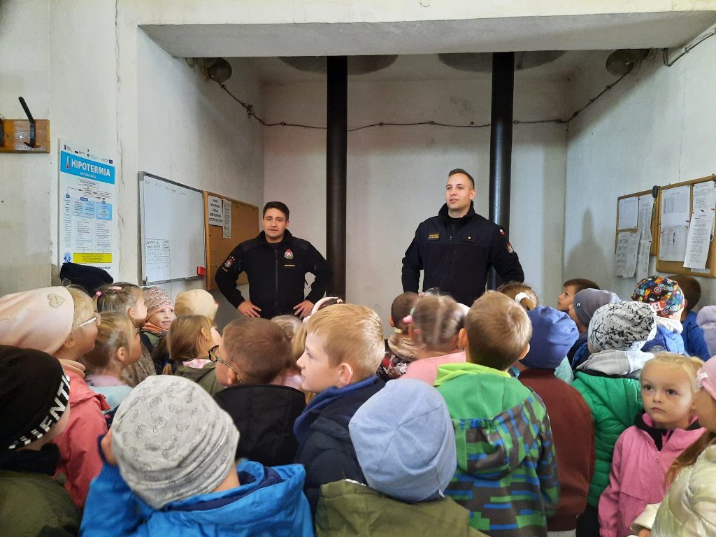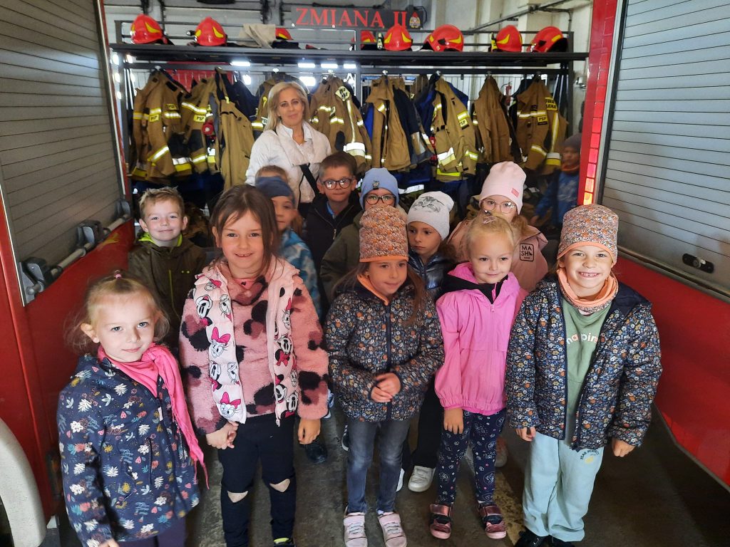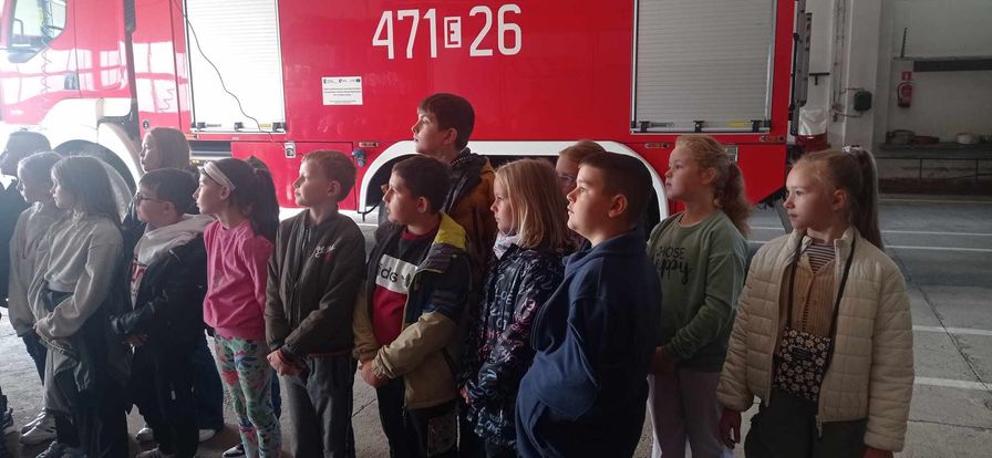 Kolejnym punktem wycieczki była wizyta w Państwowej Straży Pożarnej. Uczniowie z ogromnym zaciekawieniem słuchały opowieści Strażaków na temat ich pracy, utrwaliły sobie numer alarmowy oraz dowiedziały się jak należy postąpić w przypadku zagrożenia. Najbardziej wyczekiwanym momentem zwiedzania Jednostki był pokaz sprzętu pożarniczego oraz różnych wozów strażackich. Nasze dzieci mogły również przez chwilę wcielić się w strażaków. Przymierzanie hełmów, wejście do wozu, polewanie wodą z węża strażackiego – to atrakcje, które podobały się najbardziej. Wielu chłopców, ale także i dziewczynek postanowiło, że w przyszłości chcą wstąpić w szeregi takich służb ratunkowych. Na sam koniec pobytu zostaliśmy zaprowadzeni do najważniejszego miejsca w całej strażnicy – do dyspozytorni, gdzie przyjmowane są zgłoszenia wypadków/pożarów i sytuacji trudnych.