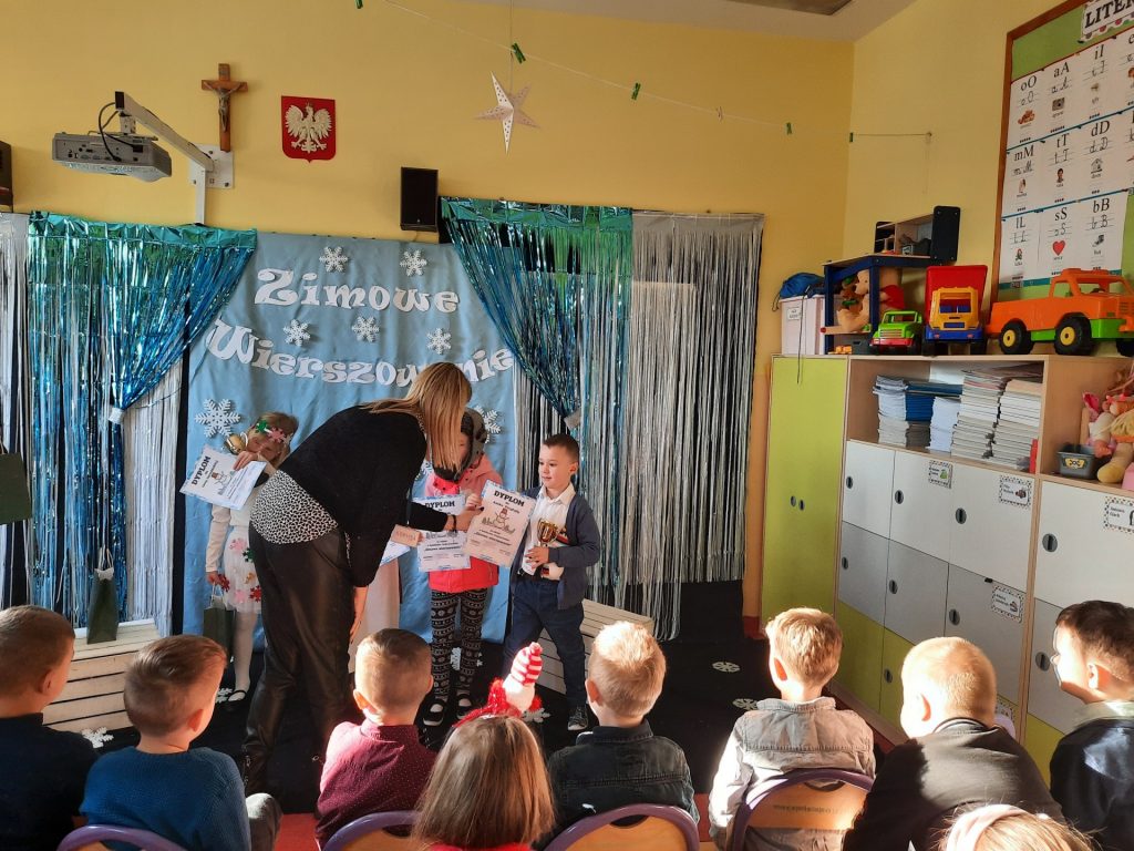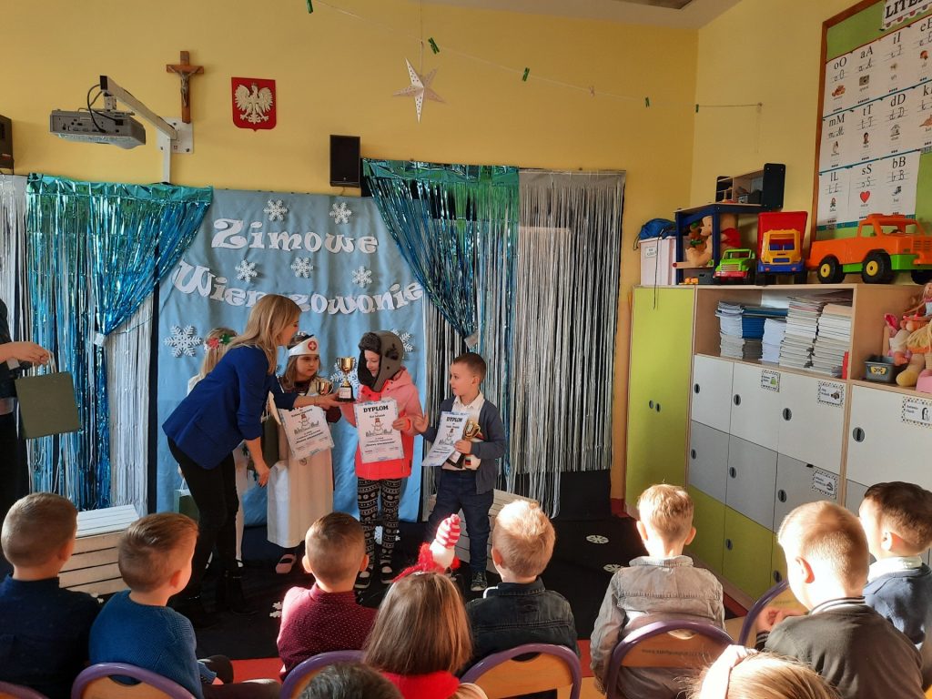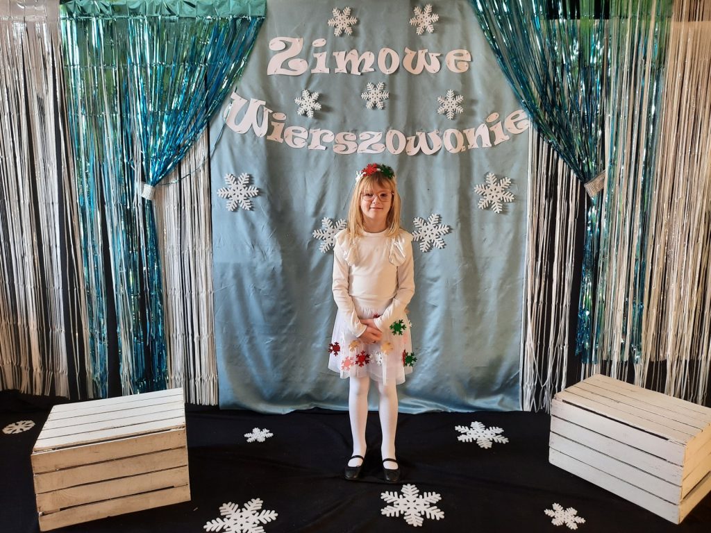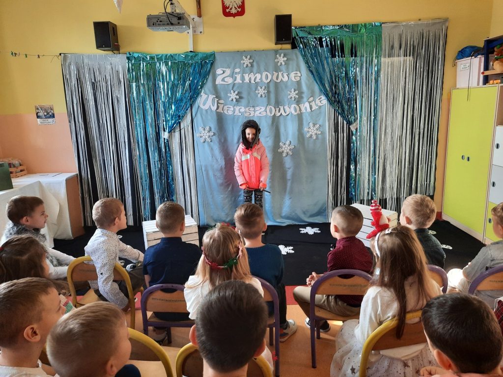 Dnia 9 lutego w klasie 0 odbył się zimowy konkurs recytatorski. Przystąpiło do niego 17 dzieci. W komisji konkursowej zasiadły p. Ewelina Pawlak, p. Martyna Piwowarczyk, p. Anna Kupis.Wszyscy uczestnicy konkursu wspaniale recytowali. Trudno było wyłonić zwycięzców. Jury po burzliwych obradach przyznało I miejsce Lence Jarosińskiej, II miejsce zajęła Kalinka Chachuła, III miejsce egzekwo zajęły: Kaja Leśniak i Antoś Przybyła . Gratulujemy zwycięzcom Pozostali uczestnicy konkursu otrzymali wyróżnienie byli to: Mateusz Ogłoziński, Szymon Karpiński, Daria i Oliwia Wojton,Tosia Ciach, Julka Popecka, Michał i Mateusz Pardej, Szymon Lasota, Adam Kowalski, Antoś Pomykała, Bartosz Śmigiel, Antoś Mazur. Jeszcze raz gratulujemy wszystkim uczestnikom konkursu. Rodzicom dziękuję za przygotowanie strojów i rekwizytów.