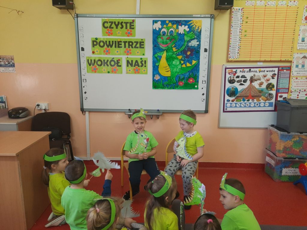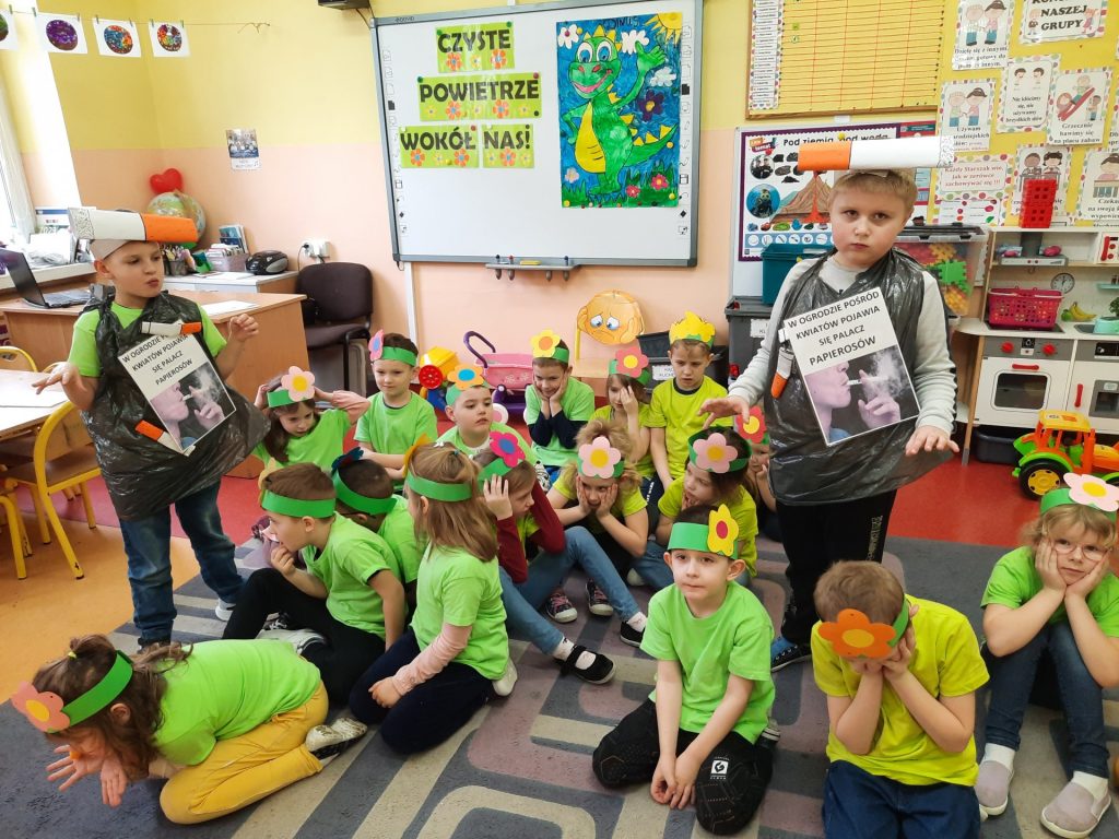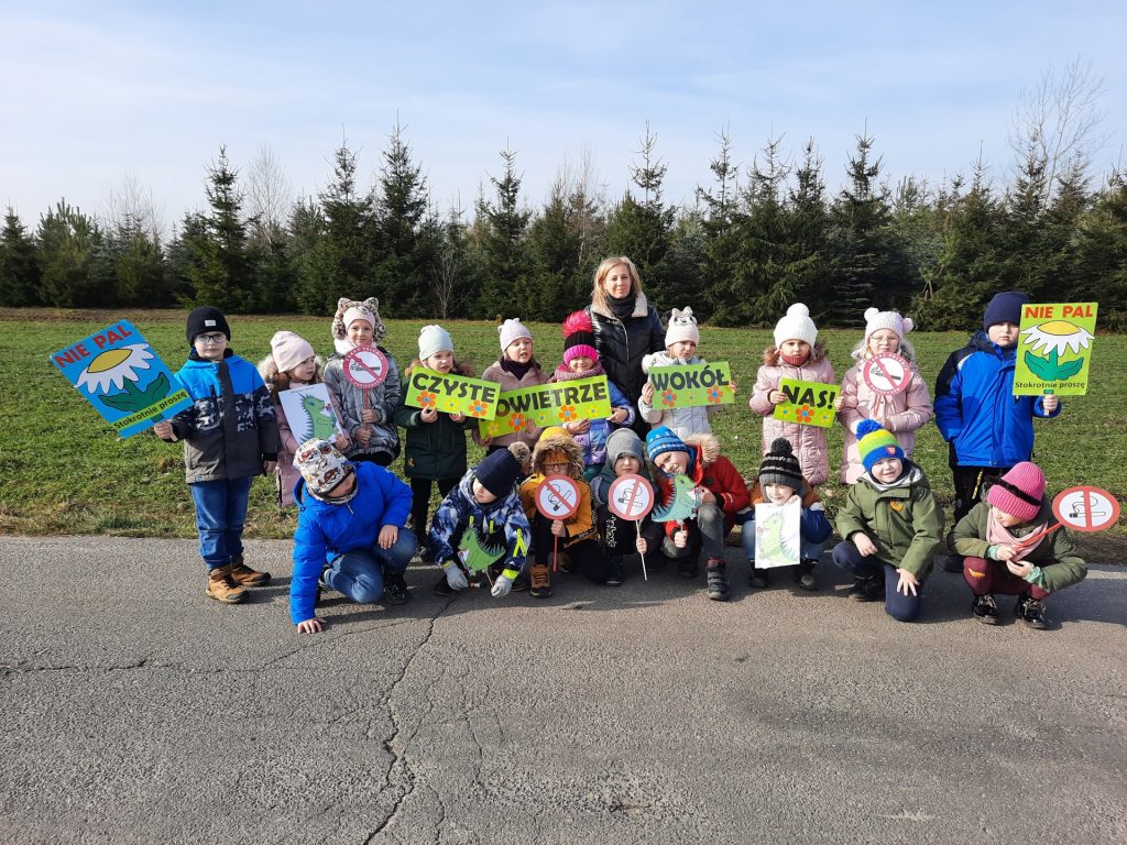 Pierwszym zajęciem była wycieczka w pobliżu szkoły, gdzie dzieci zauważyły takie źródła dymy jak: dym ze spalin samochodowych, w oddali dym z palonych gałęzi, znalazły także puste pudełka po papierosach, które świadczą o tym, że ktoś wcześniej palił papierosy.