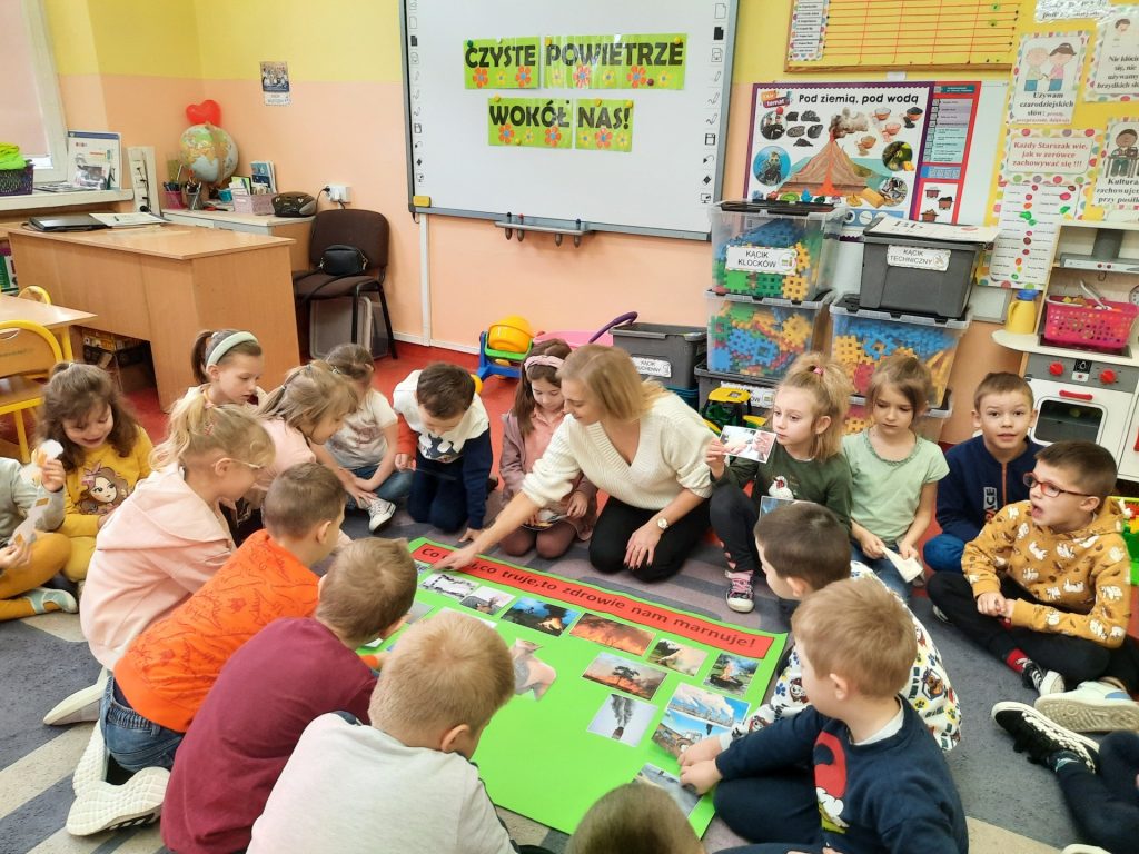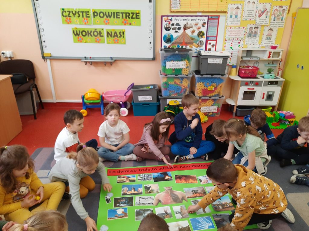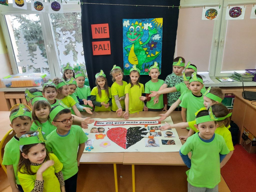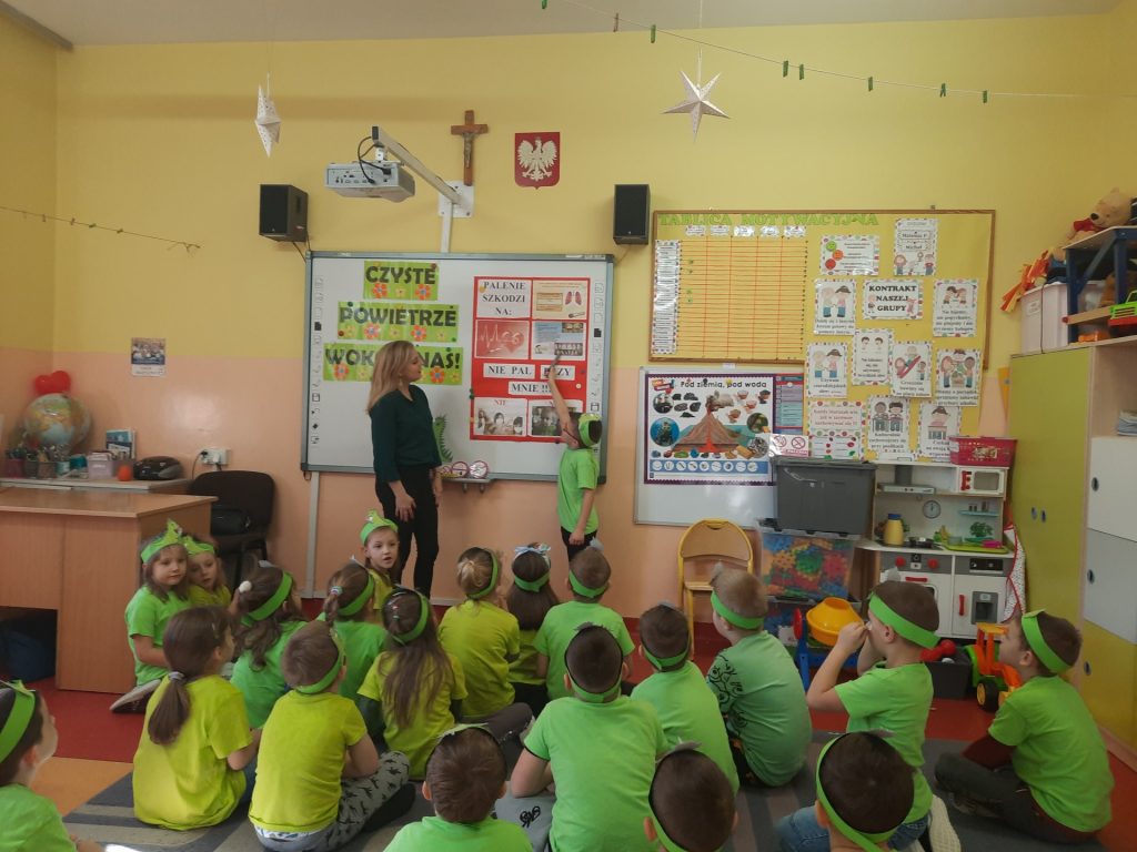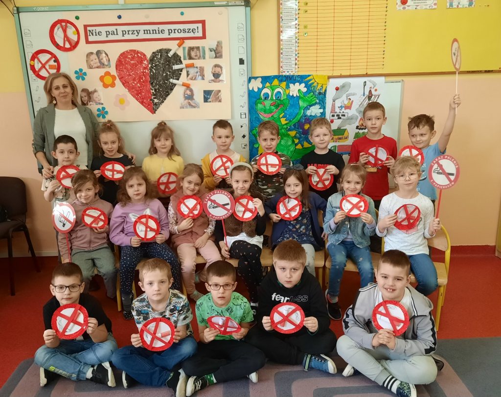W dniach od 16 do 23 lutego dzieci z grupy „Skrzaty” pod kierunkiem wychowawczyni p. Anny Kupis przystąpiły do realizacji programu antytytoniowego ,,Czyste powietrze wokół nas”. Program był adresowany do dzieci przedszkolnych. Założeniem programu było wykształcenie u dzieci świadomej umiejętności radzenia sobie w sytuacjach, w których jest zadymione powietrze lub kiedy bliscy palą przy nich papierosy.
