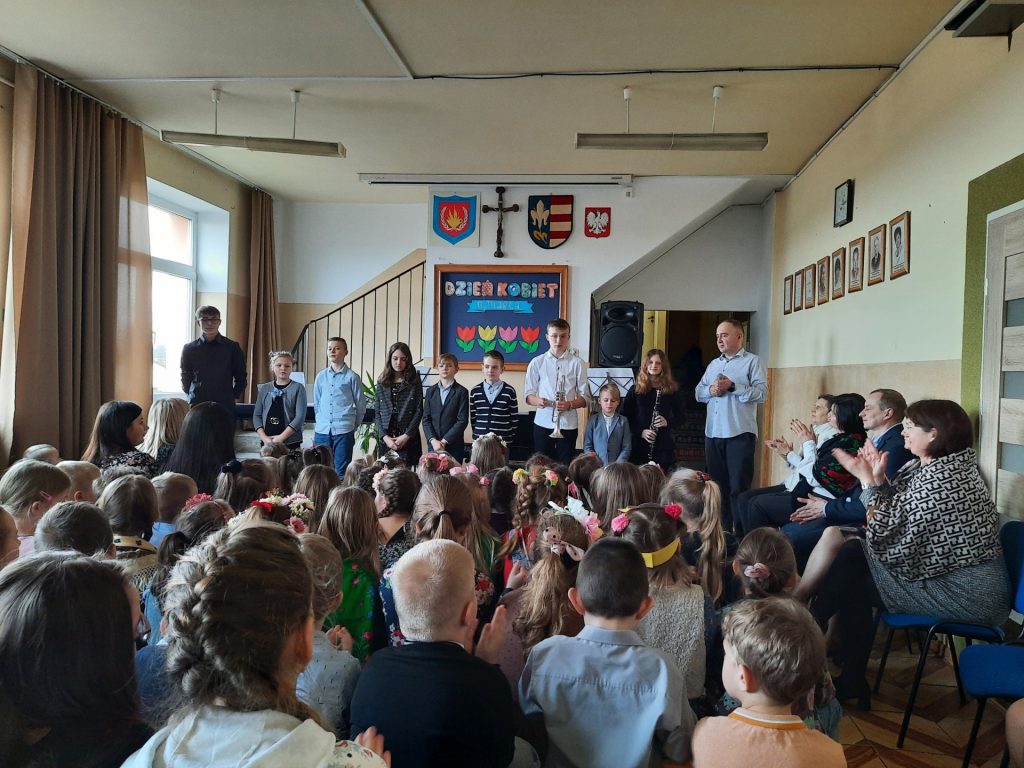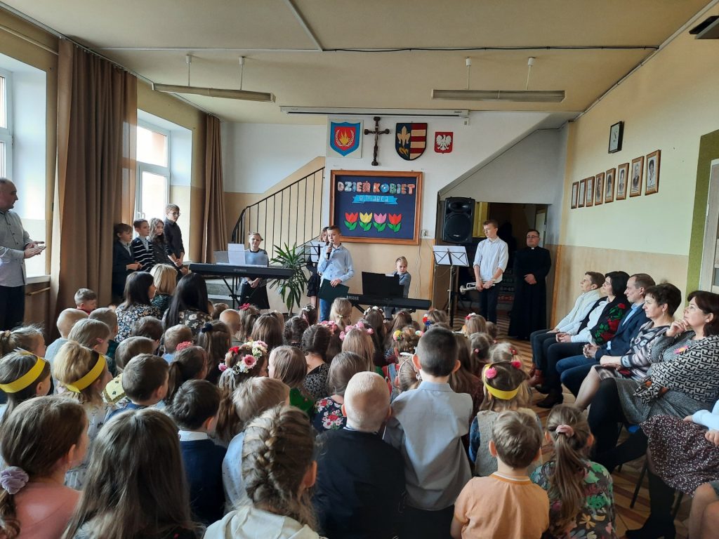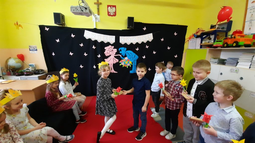 W dniu 8 marca każda kobieta i dziewczyna w naszej szkole mogła poczuć się wyjątkowo. Nasi chłopcy, odświętnie ubrani i pod obowiązkową muchą i krawatem, nie zapomnieli o wspaniałym Dniu Kobiet i już od samego rana składali życzenia swoim nauczycielkom i koleżankom i wręczali im kwiaty i drobne upominki. Punktem kulminacyjnym był przygotwany przez uczniów pod kierunkiem p. Remigiusza Łubowskiego i ks. Cezarego Jagiełły montażu słowno -muzycznego z okazji Dnia Kobiet.