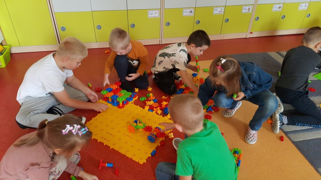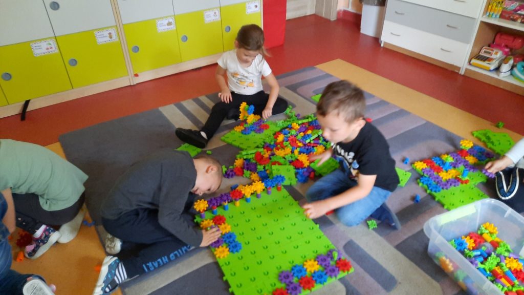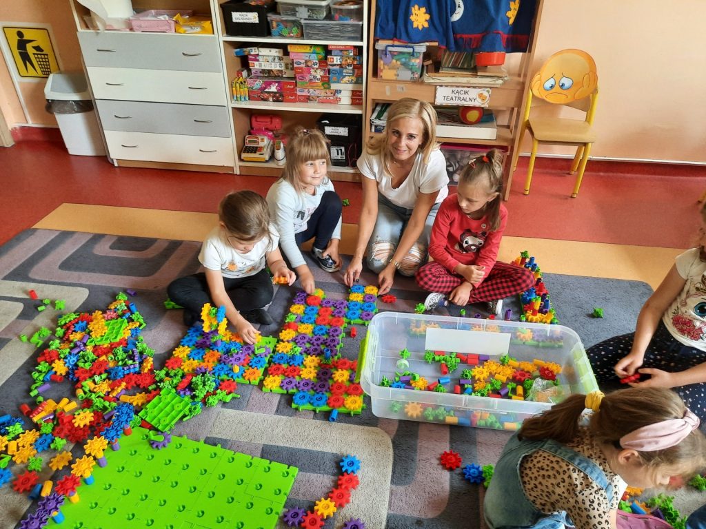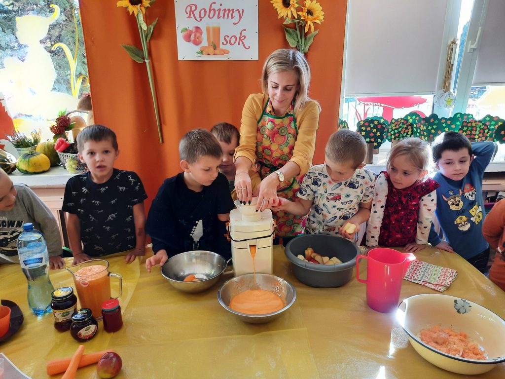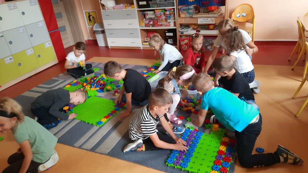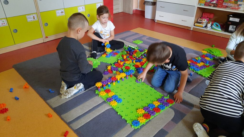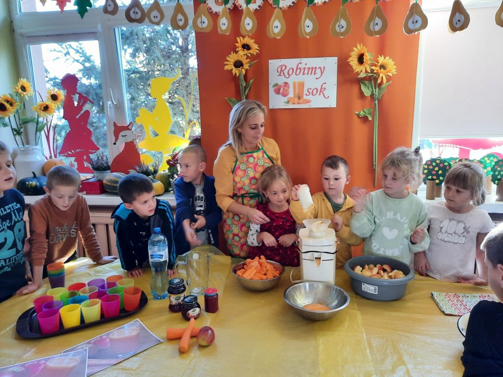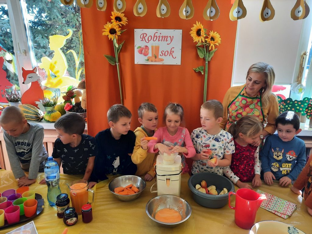 Wspólne tańce i zabawy przy drzewach były świetną okazją do integracji dzieci. Między innymi w ten sposób kształtujemy postawę ekologiczną wśród wychowanków i poczucie odpowiedzialności za zieleń wokół nas.