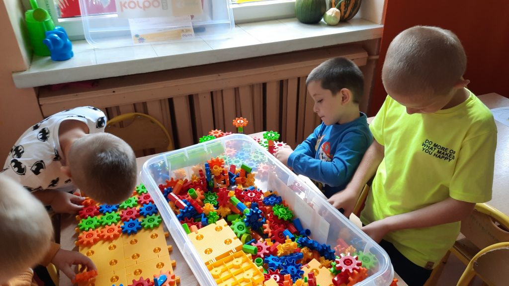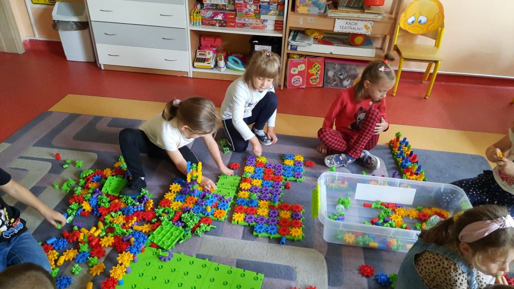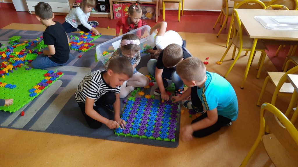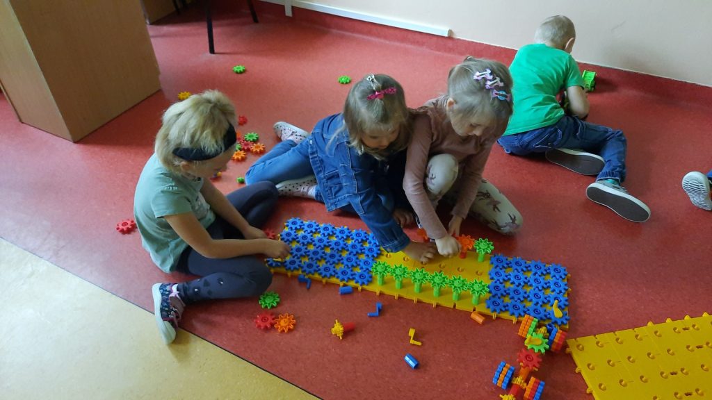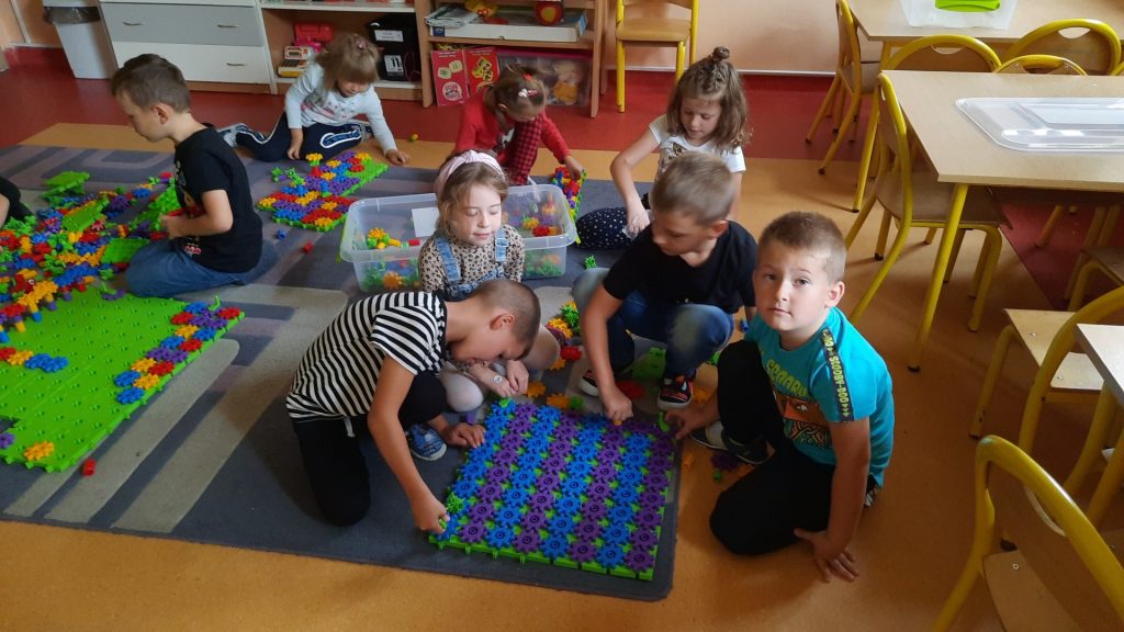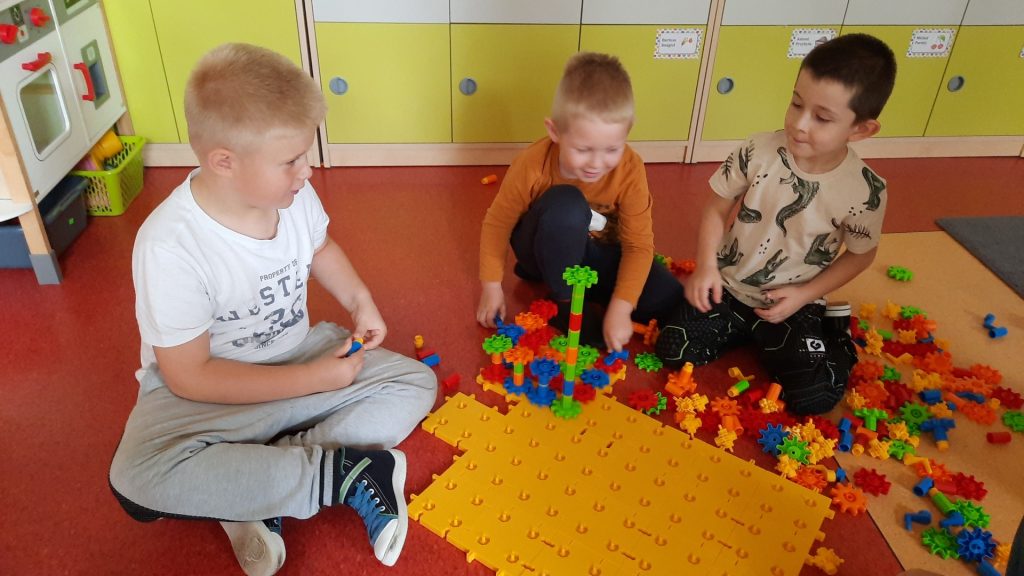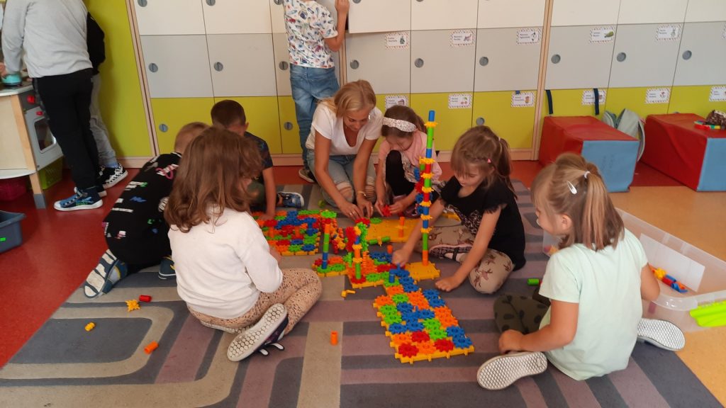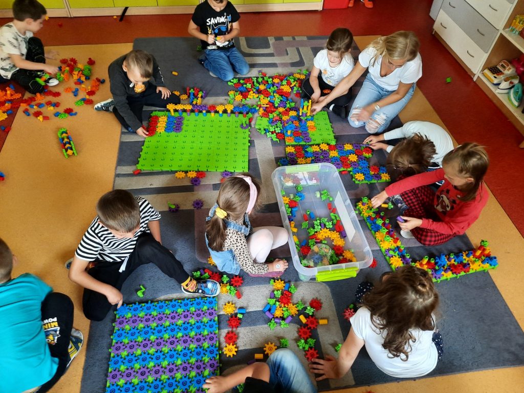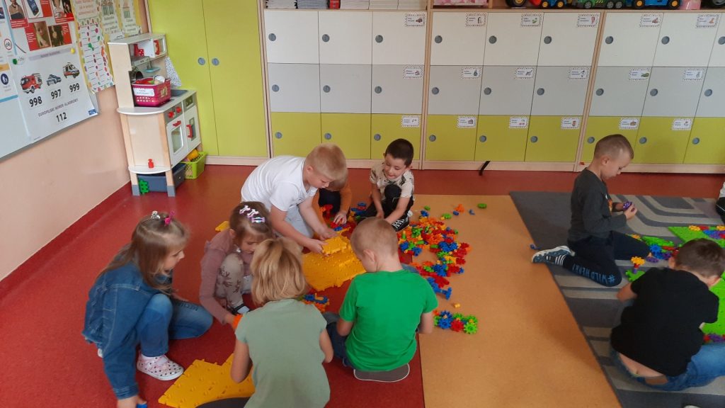 Wspólne tańce i zabawy przy drzewach były świetną okazją do integracji dzieci. Między innymi w ten sposób kształtujemy postawę ekologiczną wśród wychowanków i poczucie odpowiedzialności za zieleń wokół nas.