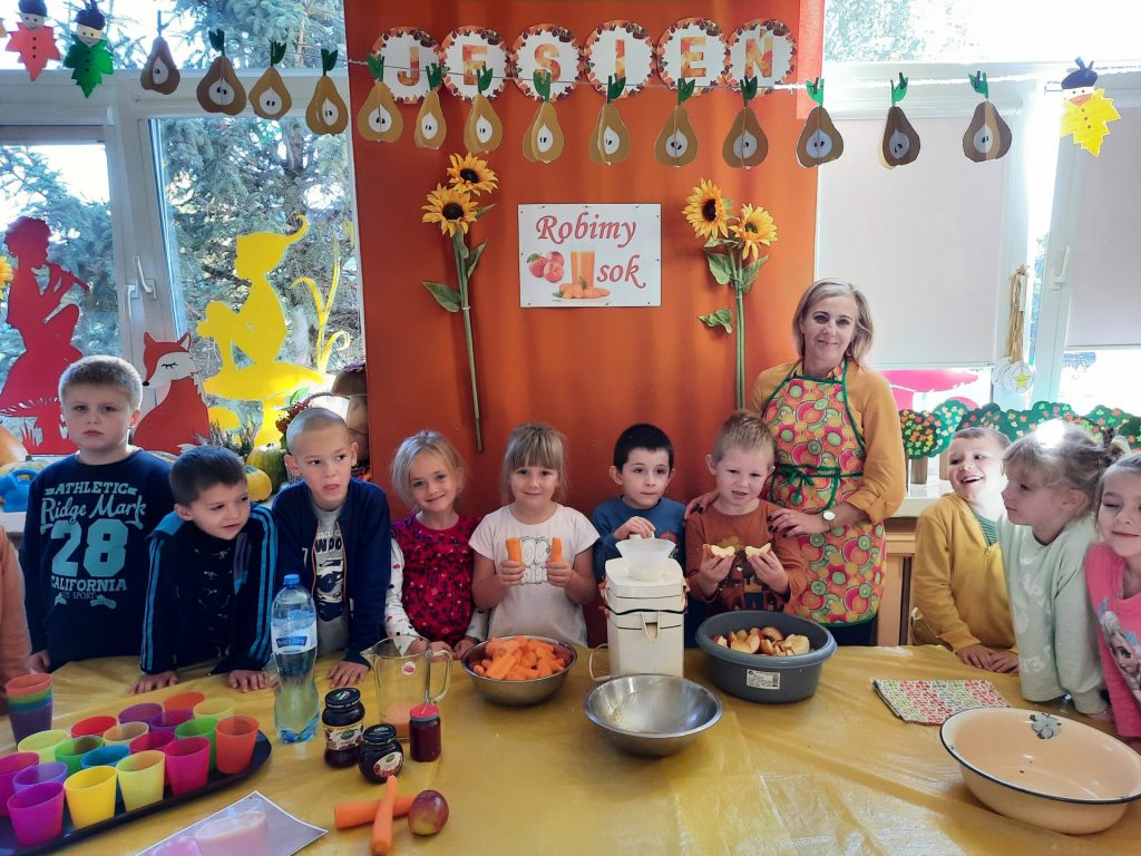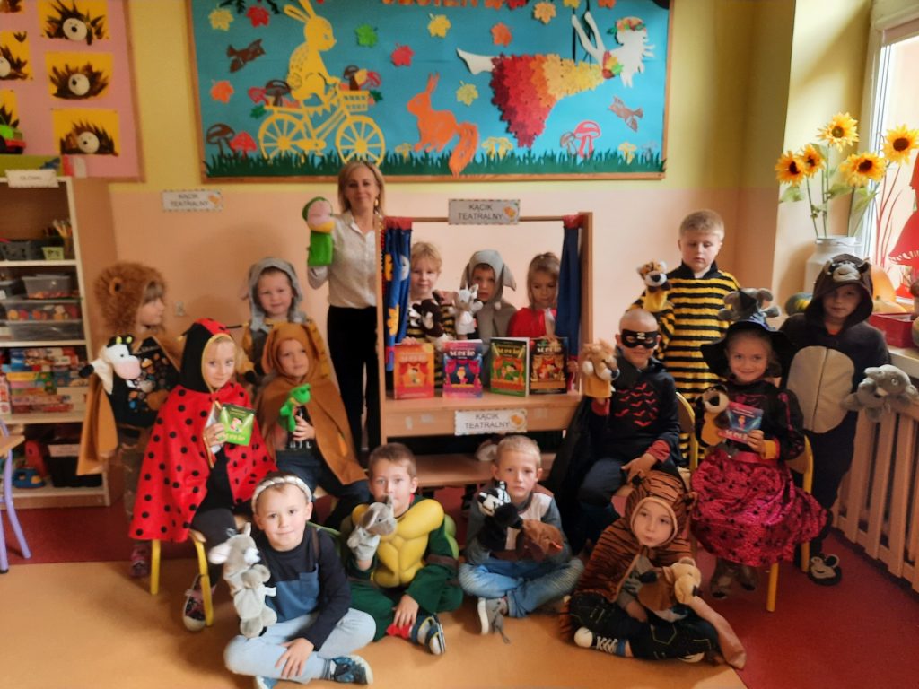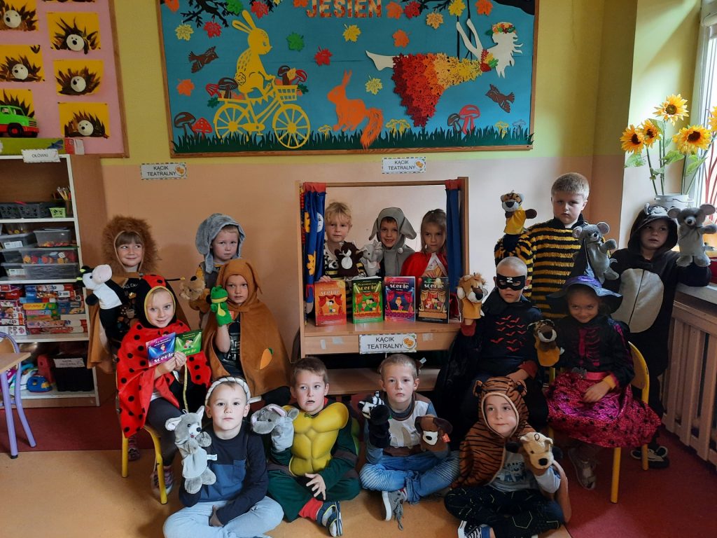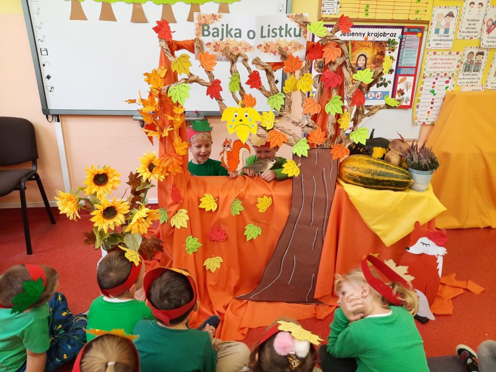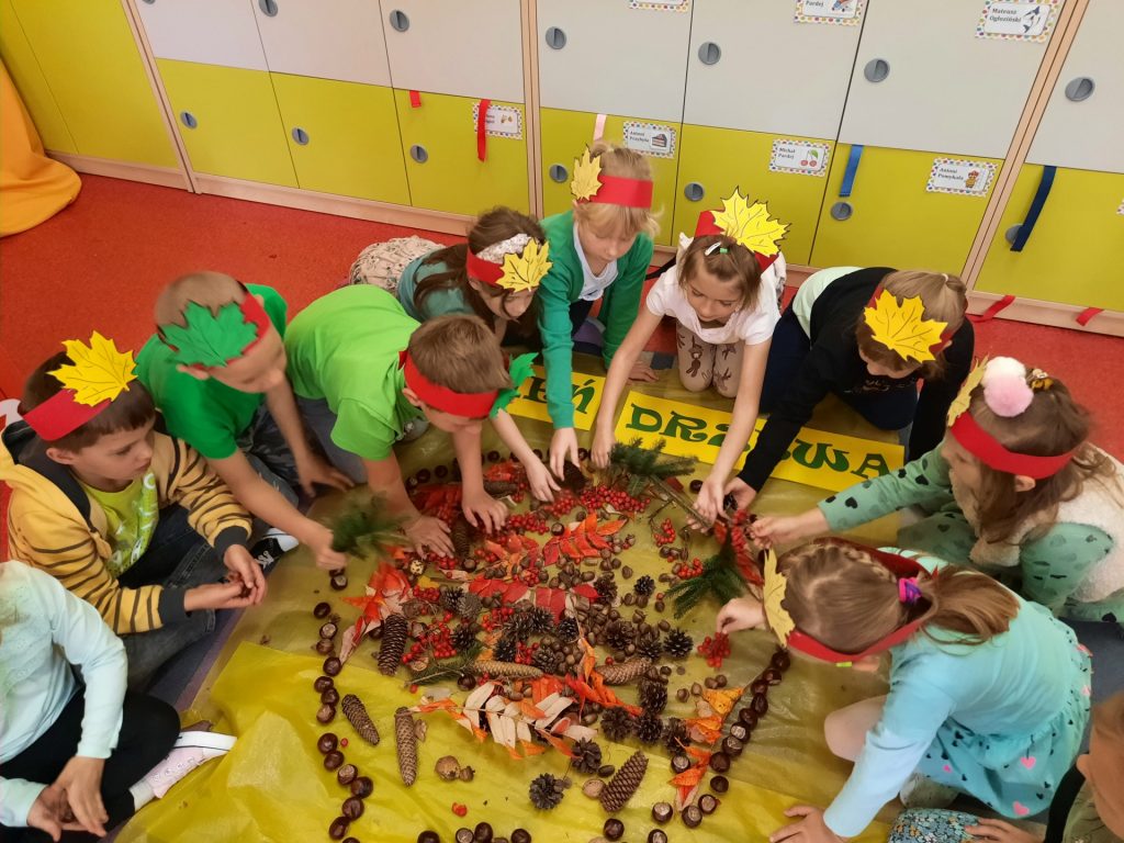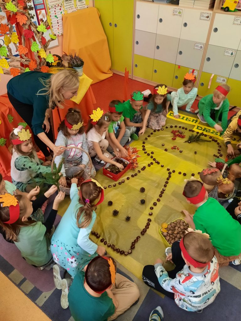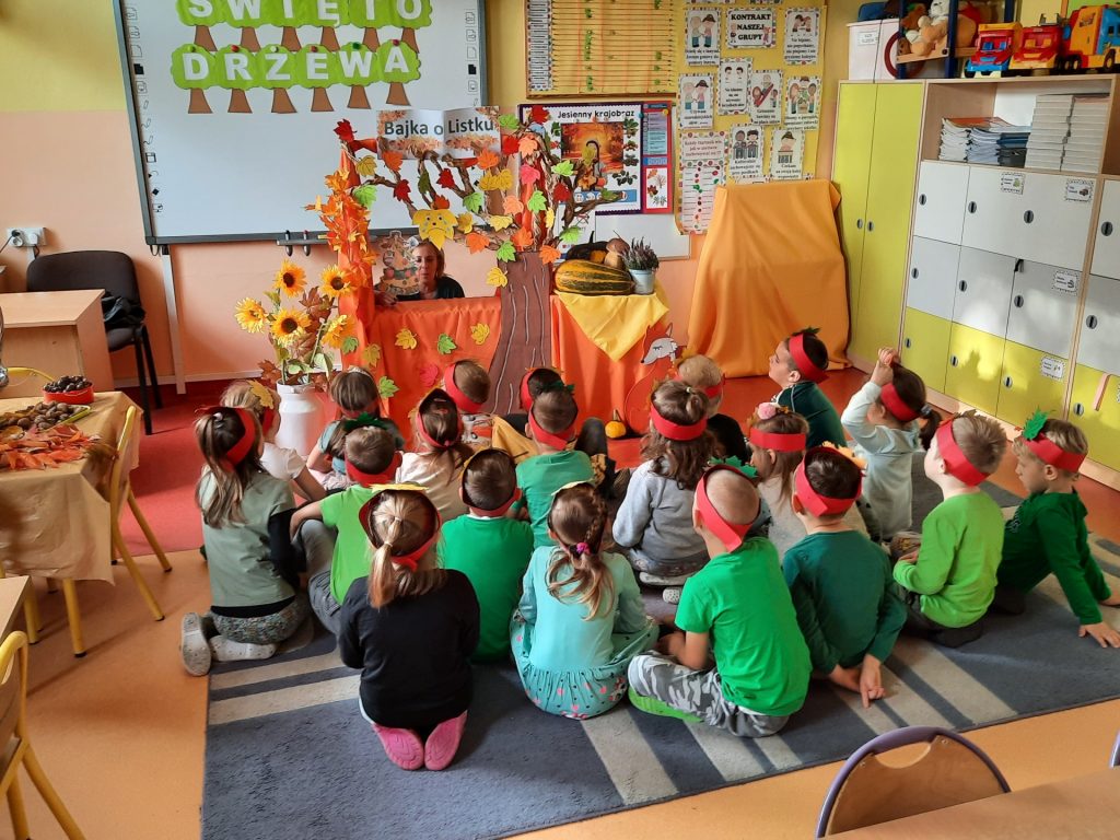 Dnia 10 października obchodziliśmy w naszej grupie Dzień Drzewa, który jest elementem edukacji ekologicznej. Tego dnia odbyły się zajęcia związane z tematyką drzew, dzieci poznały budowę drzewa, jego znaczenie dla człowieka, zwierząt i przyrody. Poznały także etapy wzrastania drzewa i ich rodzaje. Na zajęciach dzieci obejrzały teatrzyk kukiełkowy pt. „Bajka o listku, który chciał latać” i wspólnie ułożyły drzewo z jesiennych darów natury. Ponadto Starszaki wybrały się do ogrodu dydaktycznego, aby zobaczyć najbardziej okazałe drzewa. Dzień wcześniej przedszkolaki wykonały z papieru własne drzewka .