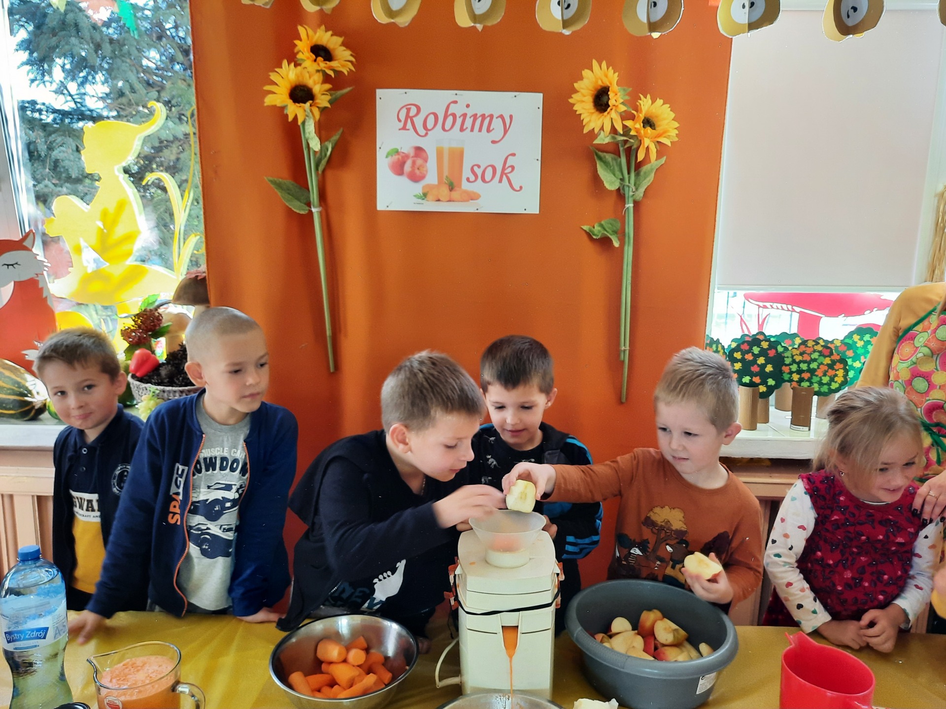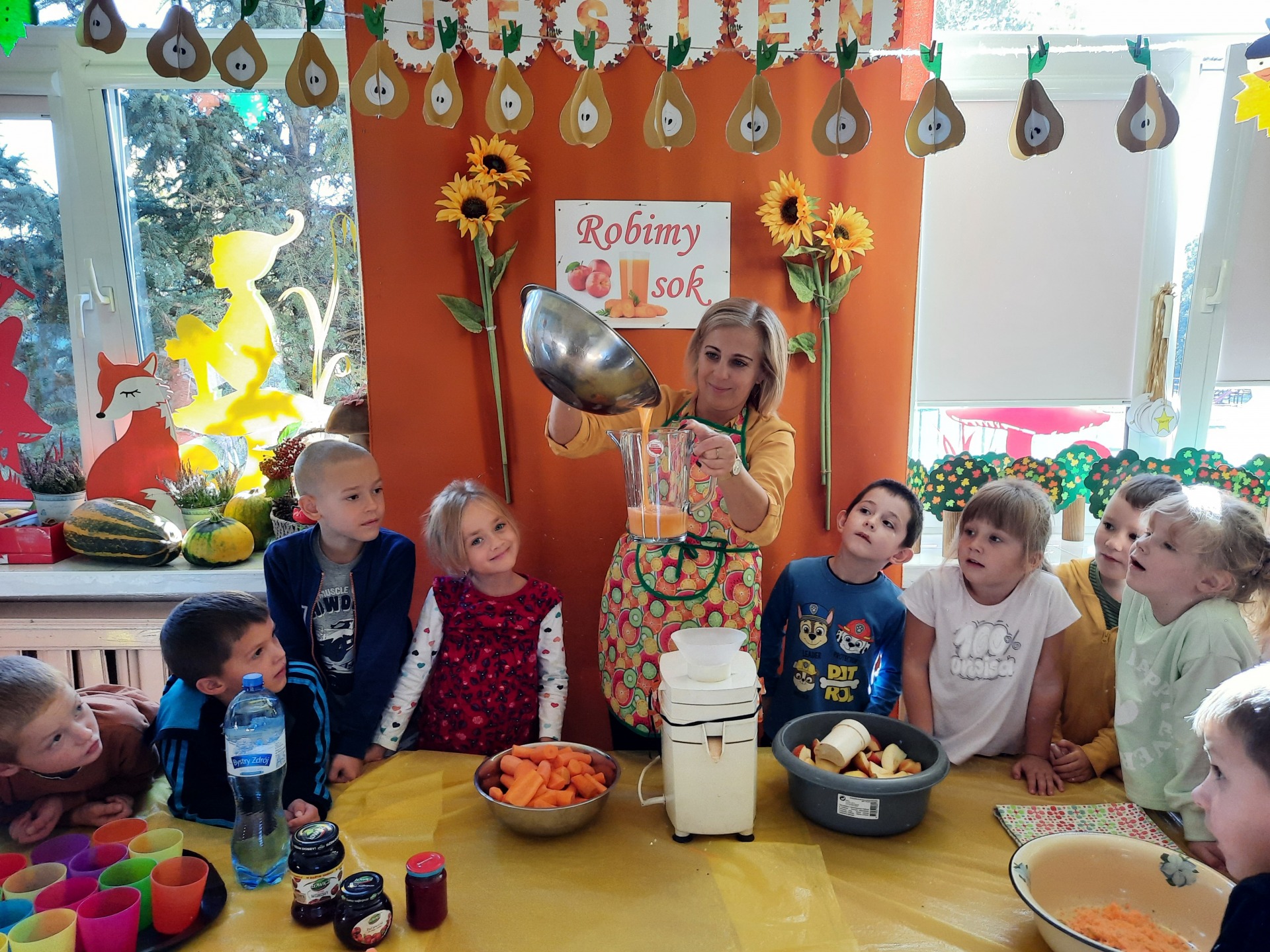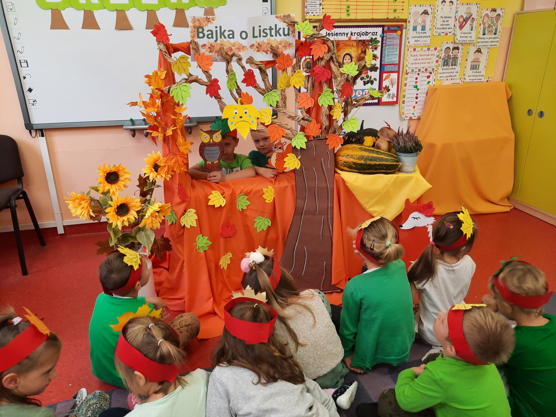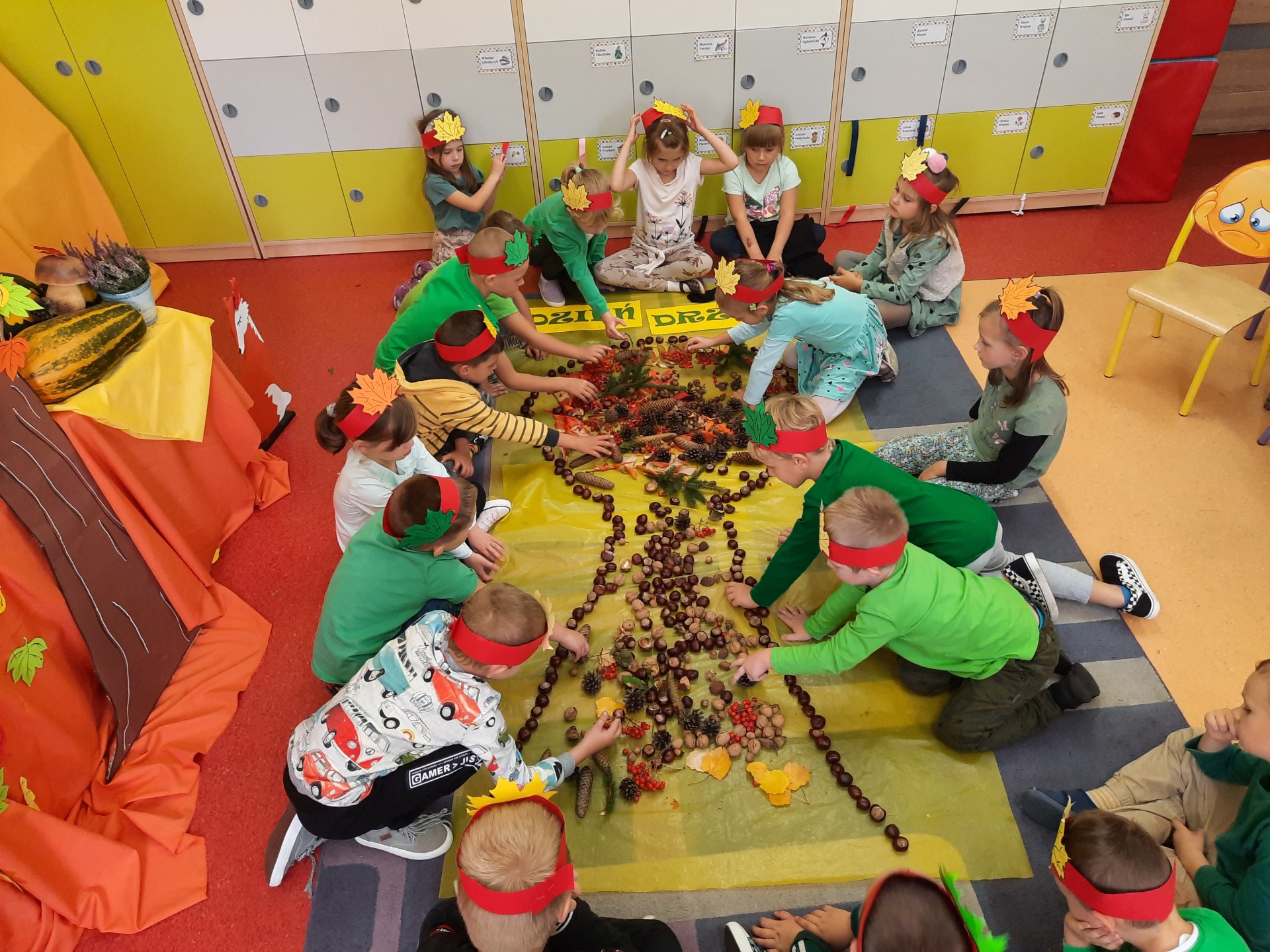 Dnia 10 października obchodziliśmy w naszej grupie Dzień Drzewa, który jest elementem edukacji ekologicznej. Tego dnia odbyły się zajęcia związane z tematyką drzew, dzieci poznały budowę drzewa, jego znaczenie dla człowieka, zwierząt i przyrody. Poznały także etapy wzrastania drzewa i ich rodzaje. Na zajęciach dzieci obejrzały teatrzyk kukiełkowy pt. „Bajka o listku, który chciał latać” i wspólnie ułożyły drzewo z jesiennych darów natury. Ponadto Starszaki wybrały się do ogrodu dydaktycznego, aby zobaczyć najbardziej okazałe drzewa. Dzień wcześniej przedszkolaki wykonały z papieru własne drzewka .