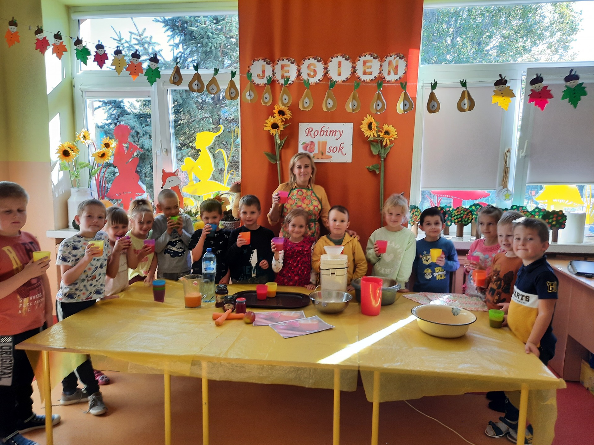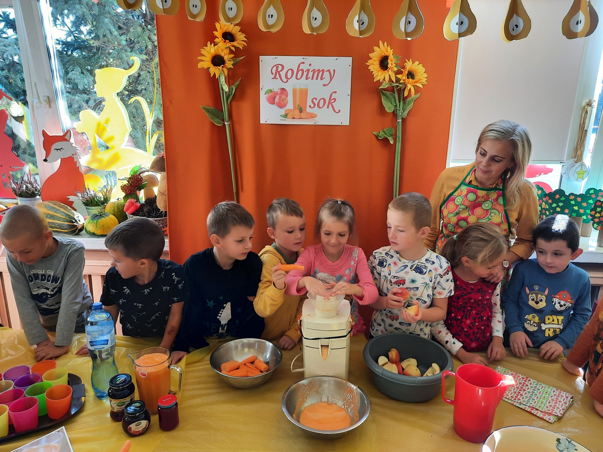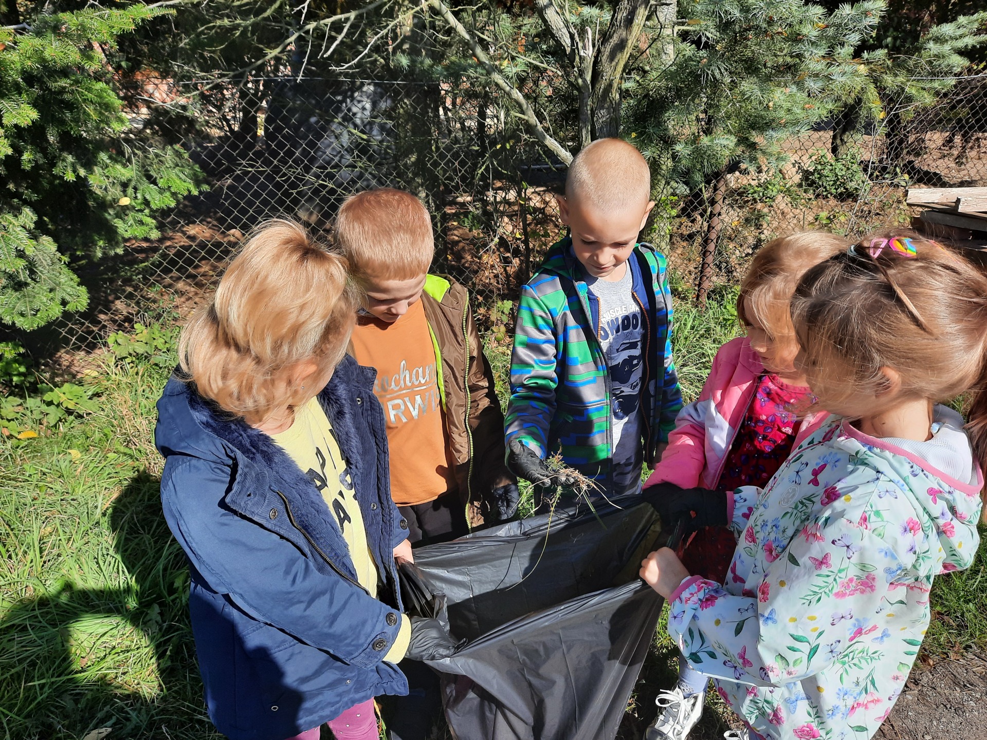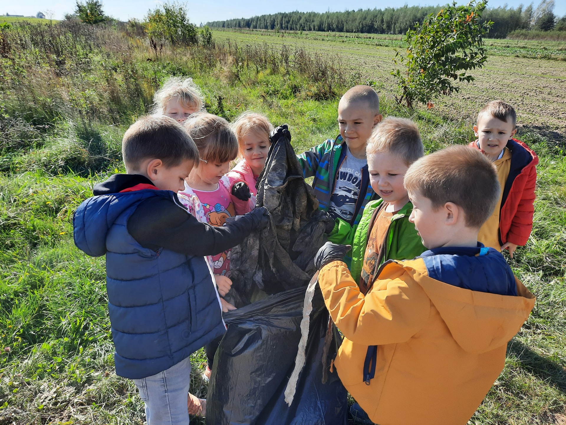 Wspólne tańce i zabawy przy drzewach były świetną okazją do integracji dzieci. Między innymi w ten sposób kształtujemy postawę ekologiczną wśród wychowanków i poczucie odpowiedzialności za zieleń wokół nas.