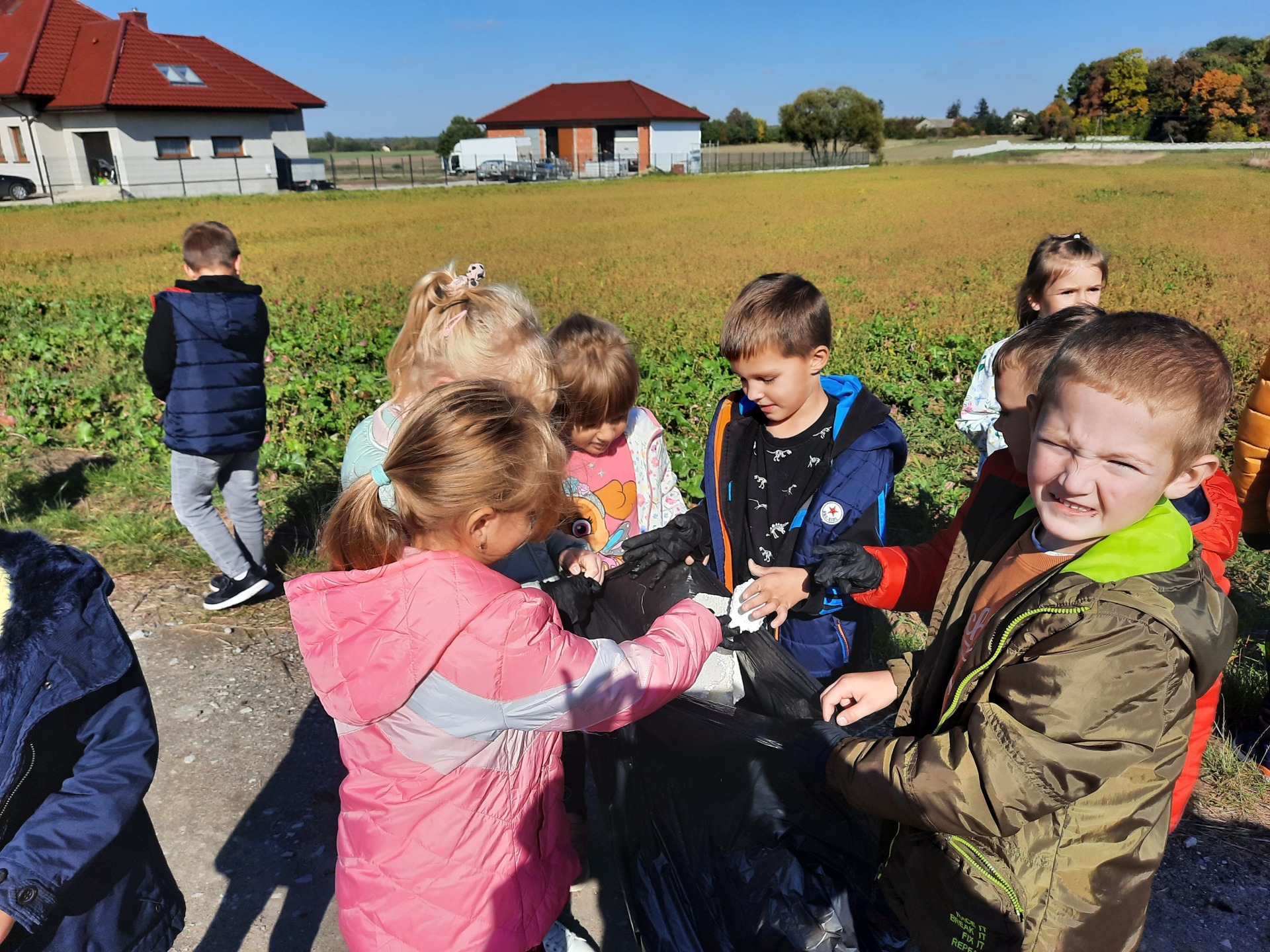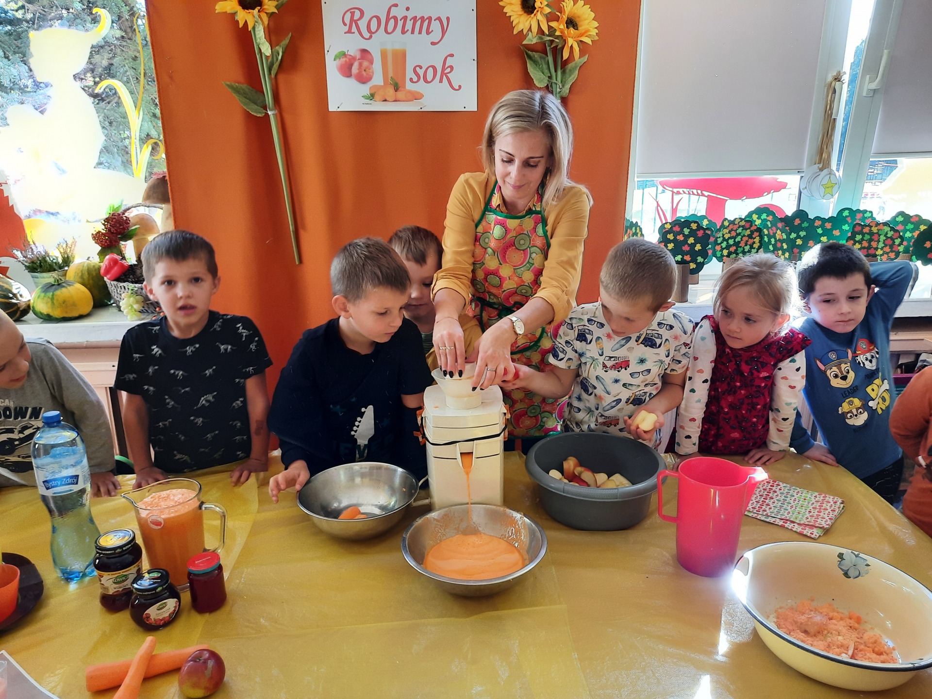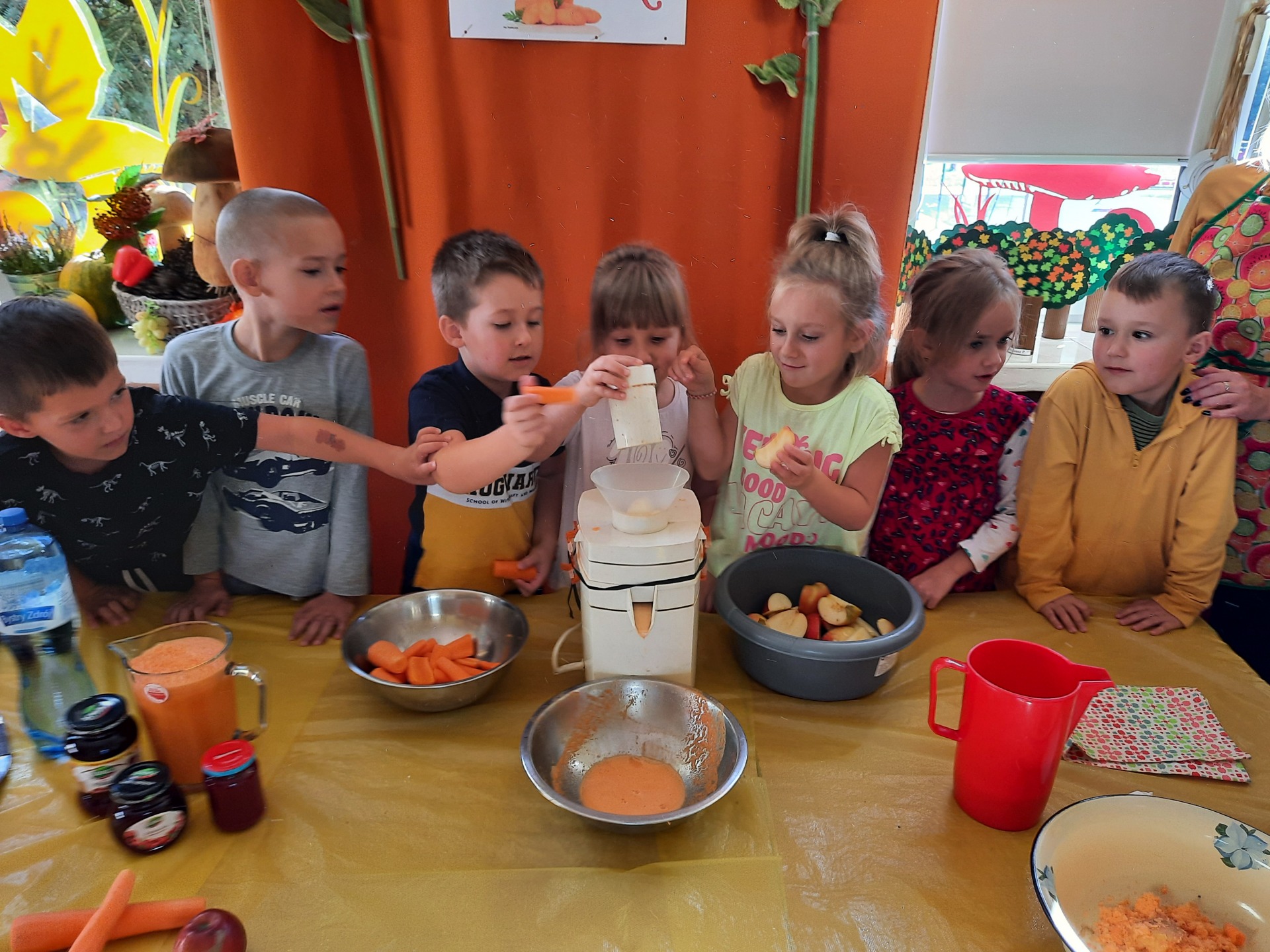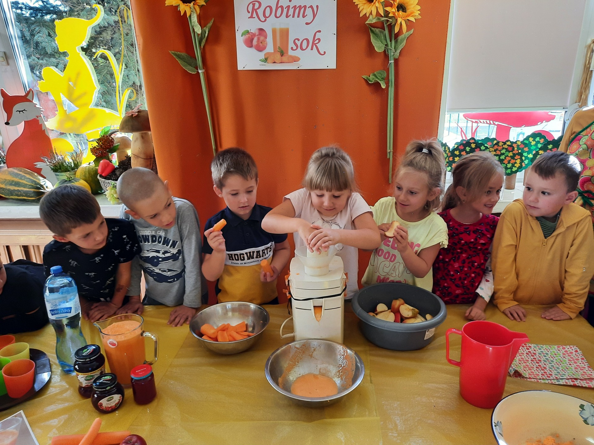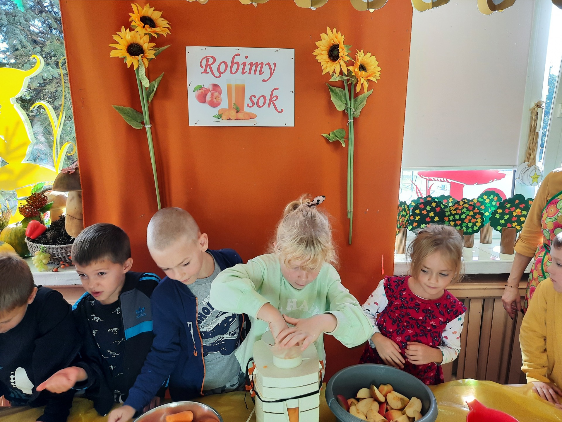 Wspólne tańce i zabawy przy drzewach były świetną okazją do integracji dzieci. Między innymi w ten sposób kształtujemy postawę ekologiczną wśród wychowanków i poczucie odpowiedzialności za zieleń wokół nas.