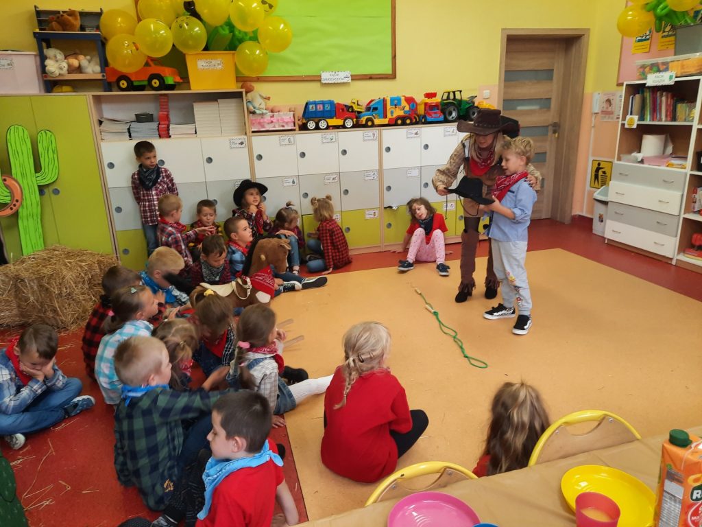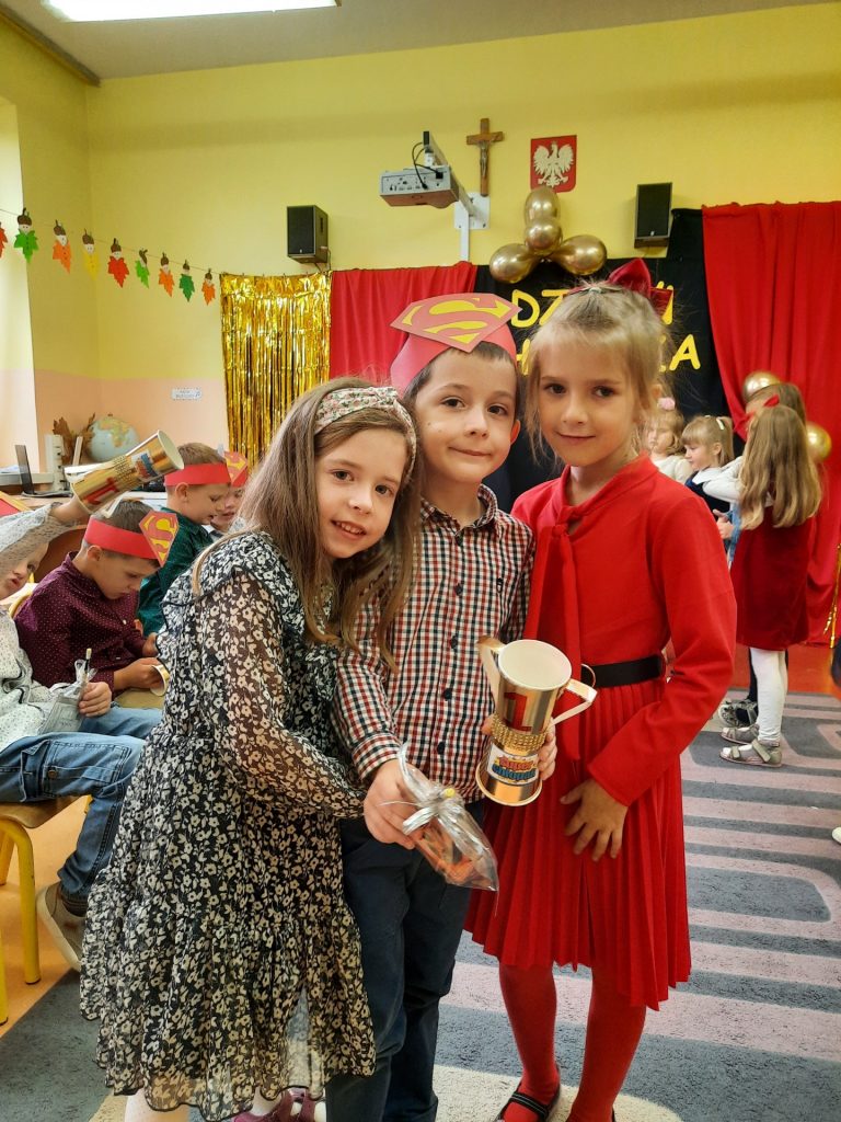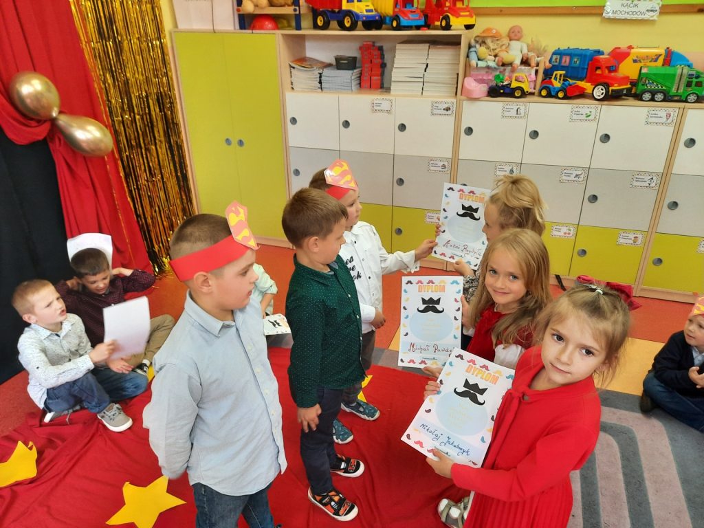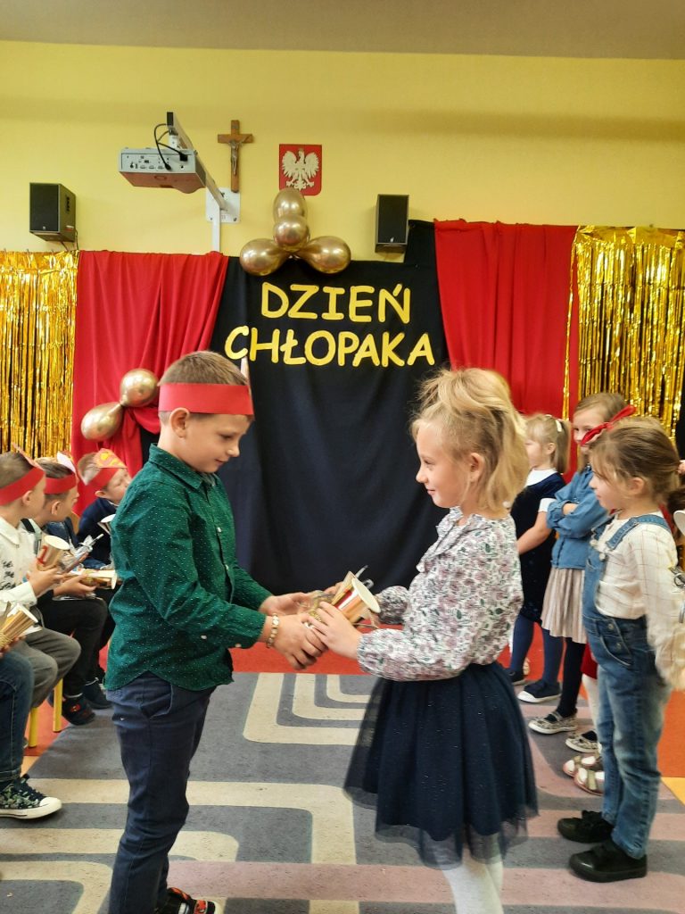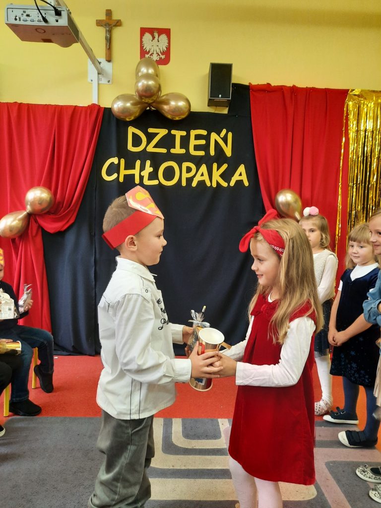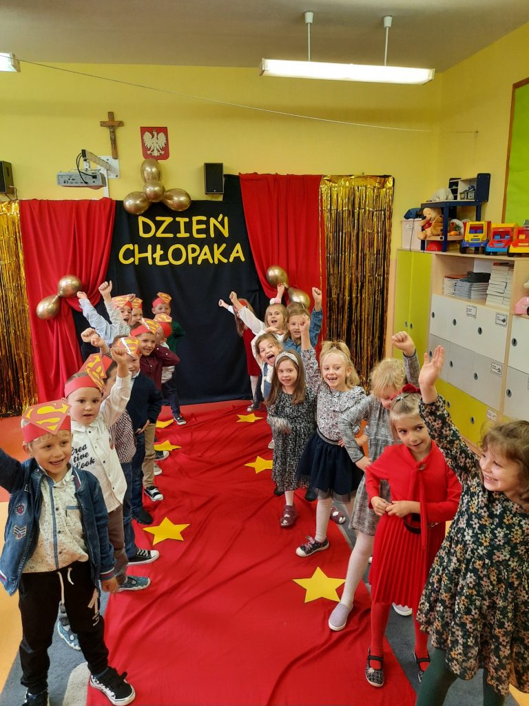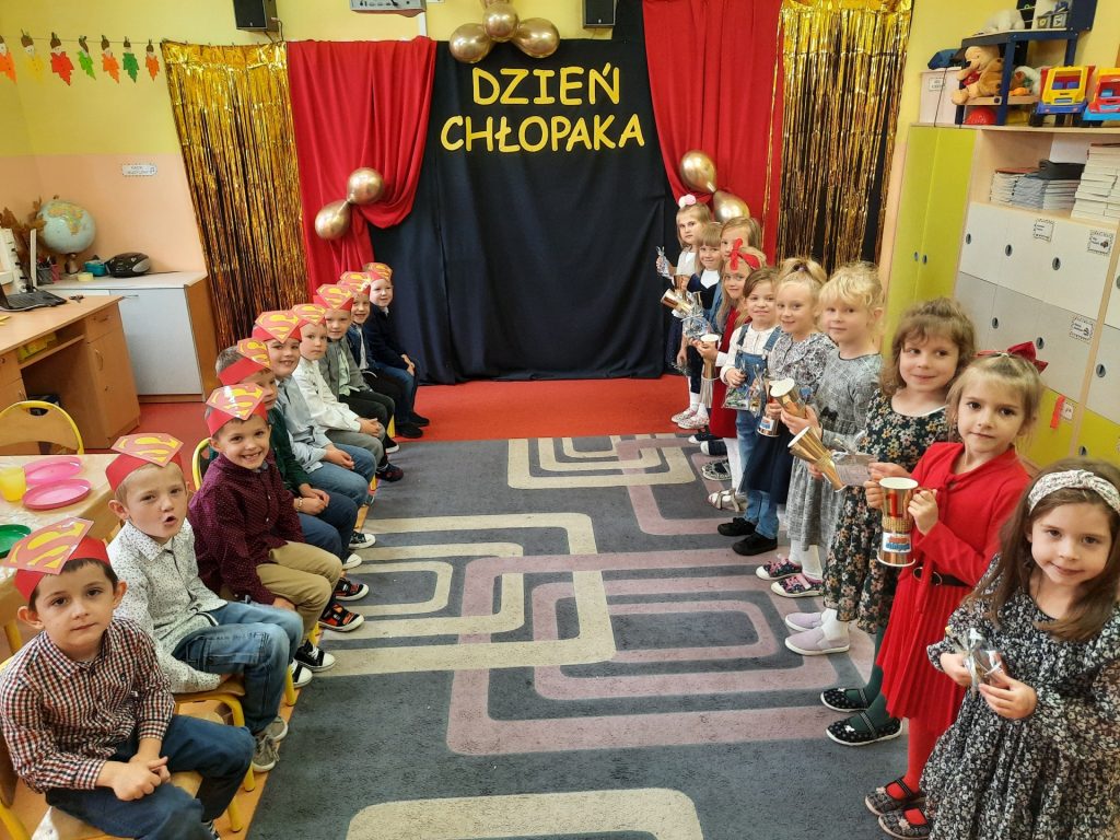 Jak co roku 30 września w przedszkolu obchodzimy Dzień Chłopaka. Jest to wyjątkowy dzień dla naszych dzieci. W tym roku na chłopaków czekało wiele niespodzianek i atrakcji. Były różne gry, zabawy i konkursy. Tego wyjątkowego dnia dziewczynki zamieniły się w jurorów, a chłopcy brali udział w przeróżnych konkurencjach na MISTERA PRZEDSZKOLAKÓW m.in. odgadywanie po znaczku marki samochodów, rzucali do celu, wykonywali pompki, tańczyli, prezentowali się na czerwonym dywanie. Nie zabrakło również upominków, opasek Supermena dla naszych małych chłopaków. Uwieńczeniem imprezy był przepyszny poczęstunek przygotowany przez mamę jednego z uczniów, za co serdecznie dziękujemy.