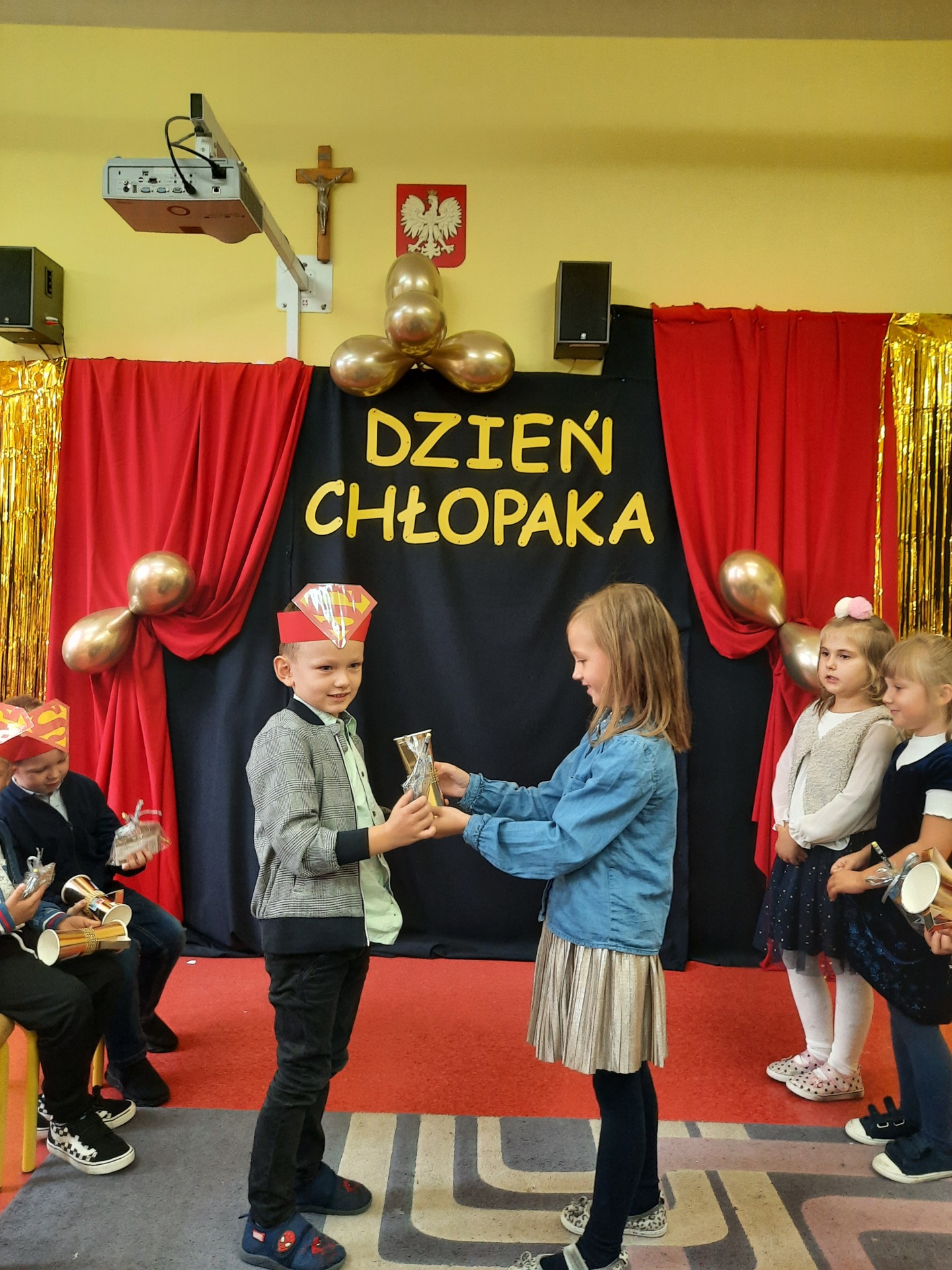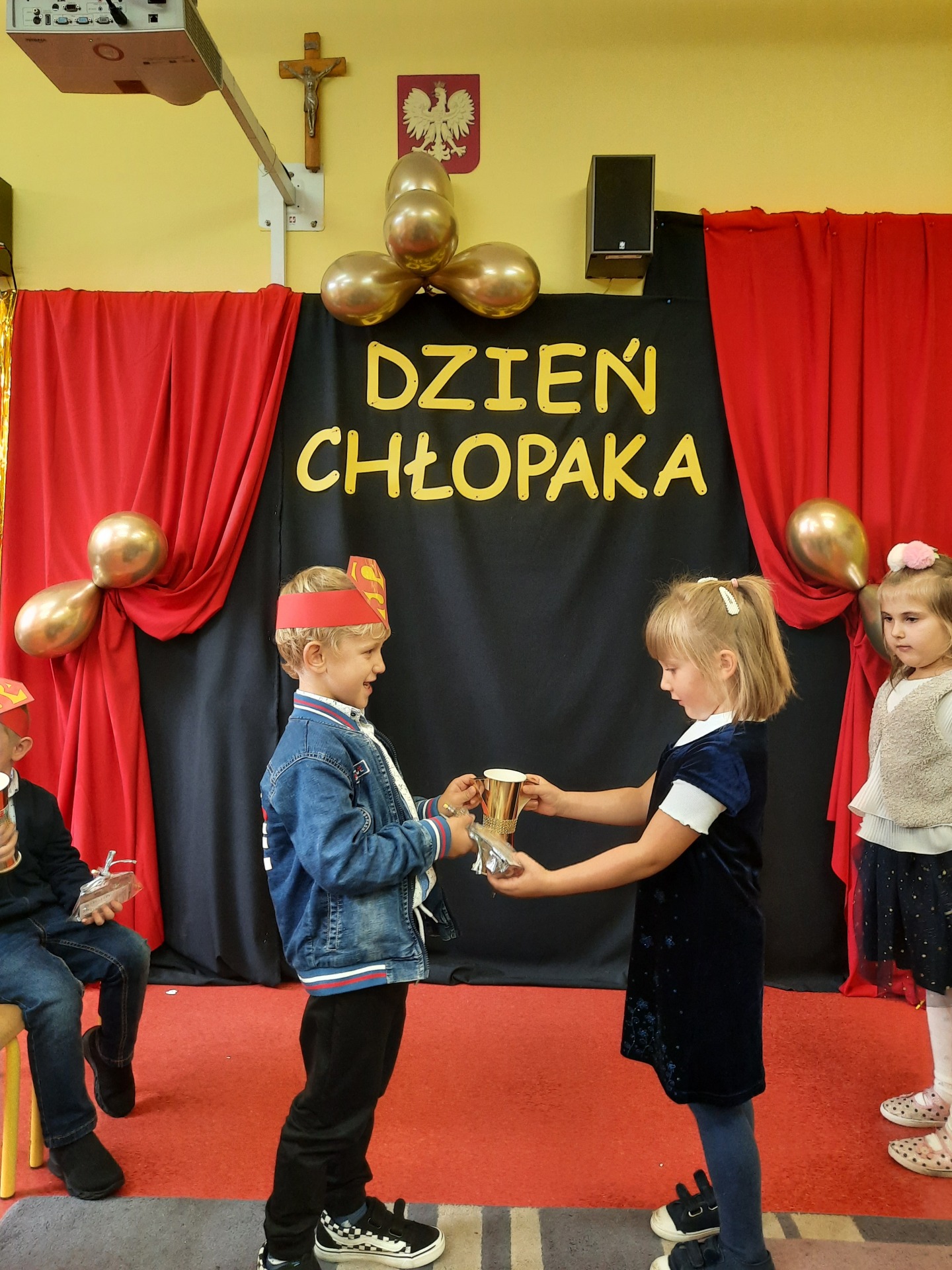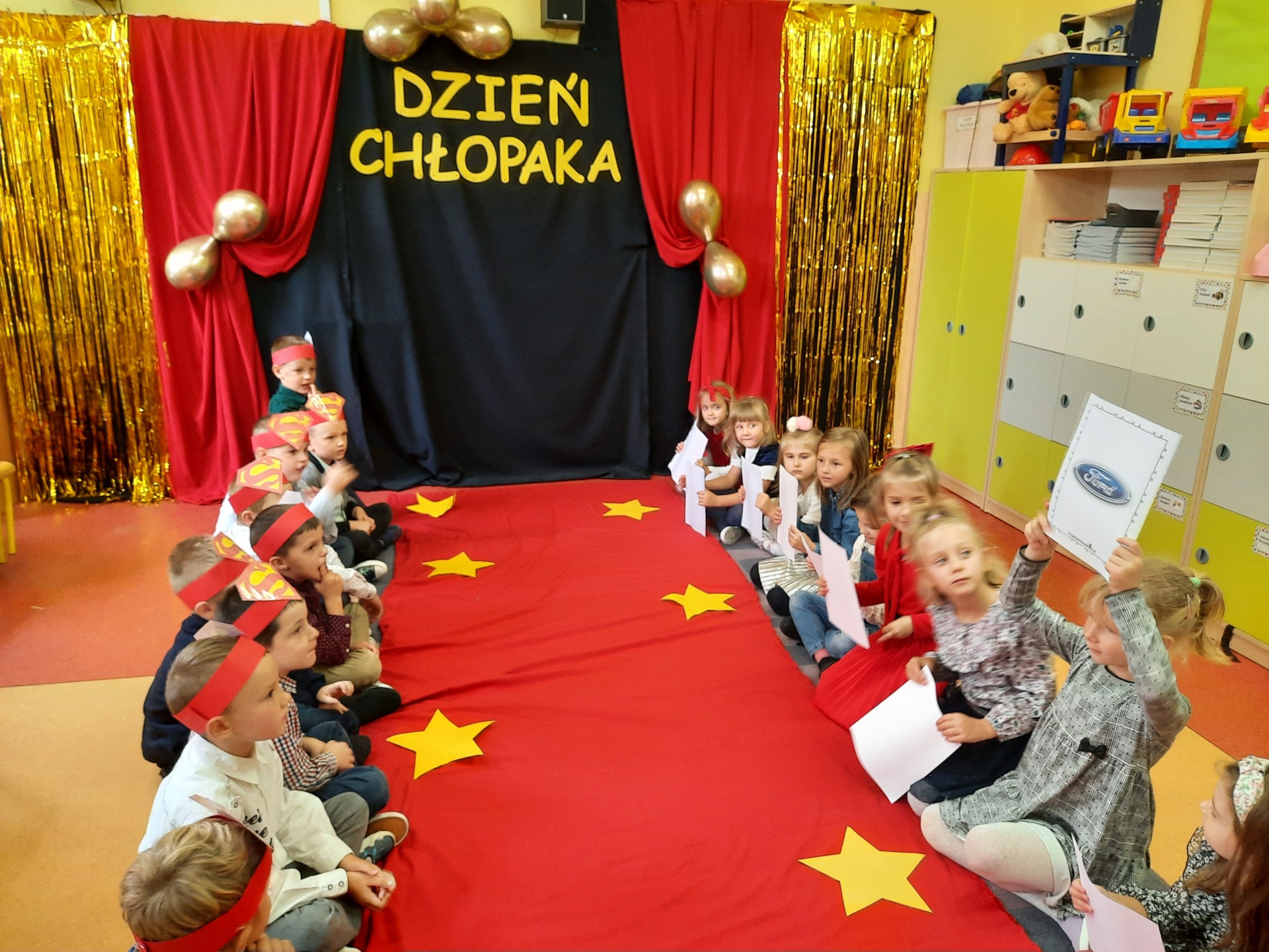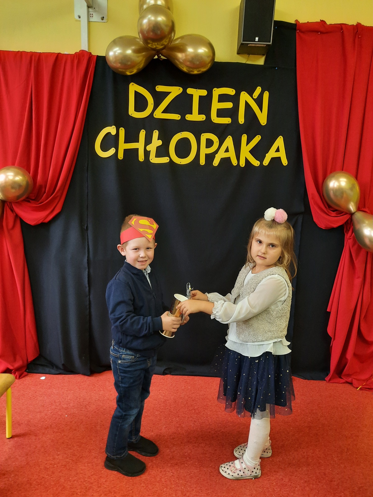 Jak co roku 30 września w przedszkolu obchodzimy Dzień Chłopaka. Jest to wyjątkowy dzień dla naszych dzieci. W tym roku na chłopaków czekało wiele niespodzianek i atrakcji. Były różne gry, zabawy i konkursy. Tego wyjątkowego dnia dziewczynki zamieniły się w jurorów, a chłopcy brali udział w przeróżnych konkurencjach na MISTERA PRZEDSZKOLAKÓW m.in. odgadywanie po znaczku marki samochodów, rzucali do celu, wykonywali pompki, tańczyli, prezentowali się na czerwonym dywanie. Nie zabrakło również upominków, opasek Supermena dla naszych małych chłopaków. Uwieńczeniem imprezy był przepyszny poczęstunek przygotowany przez mamę jednego z uczniów, za co serdecznie dziękujemy.