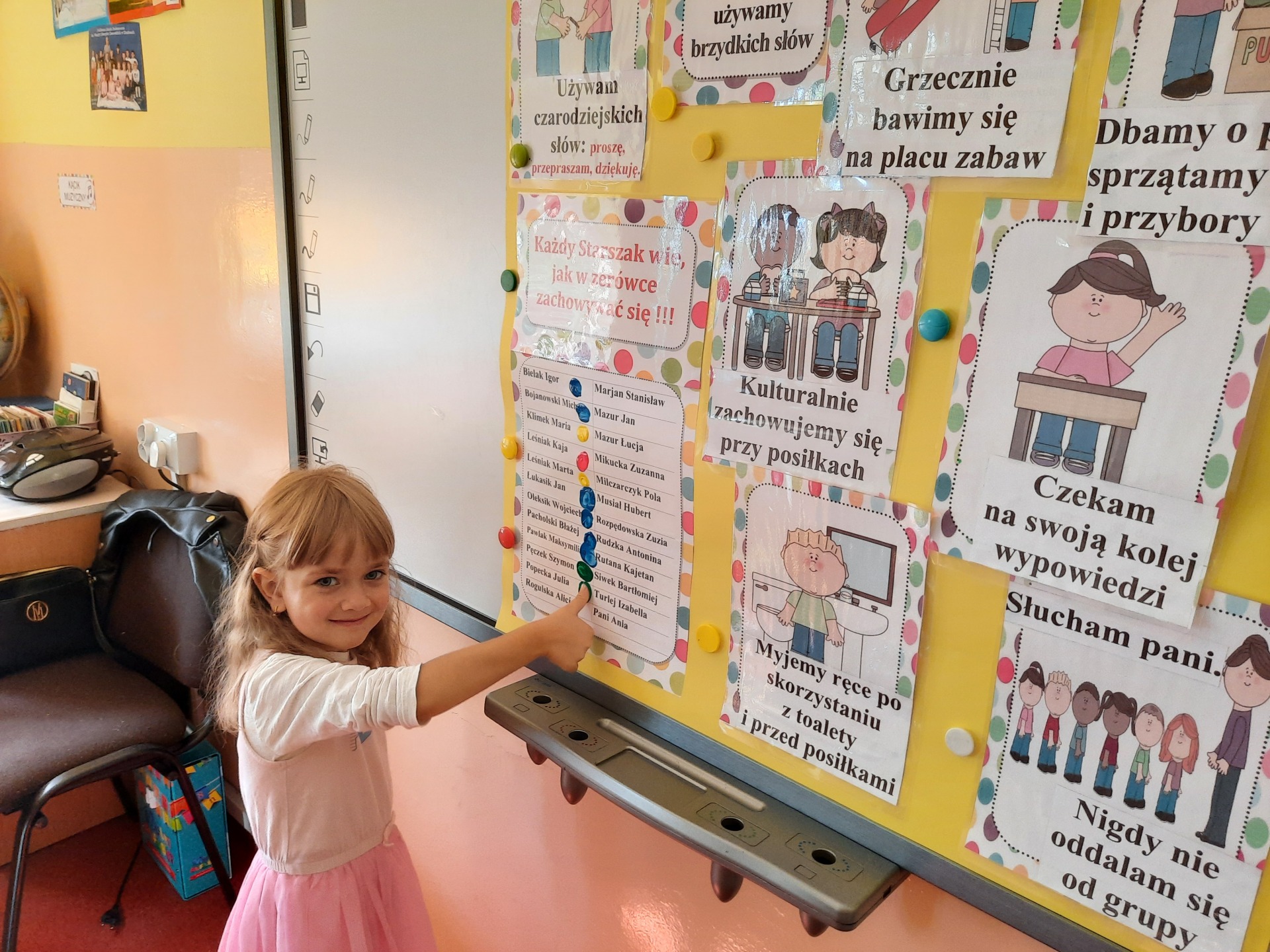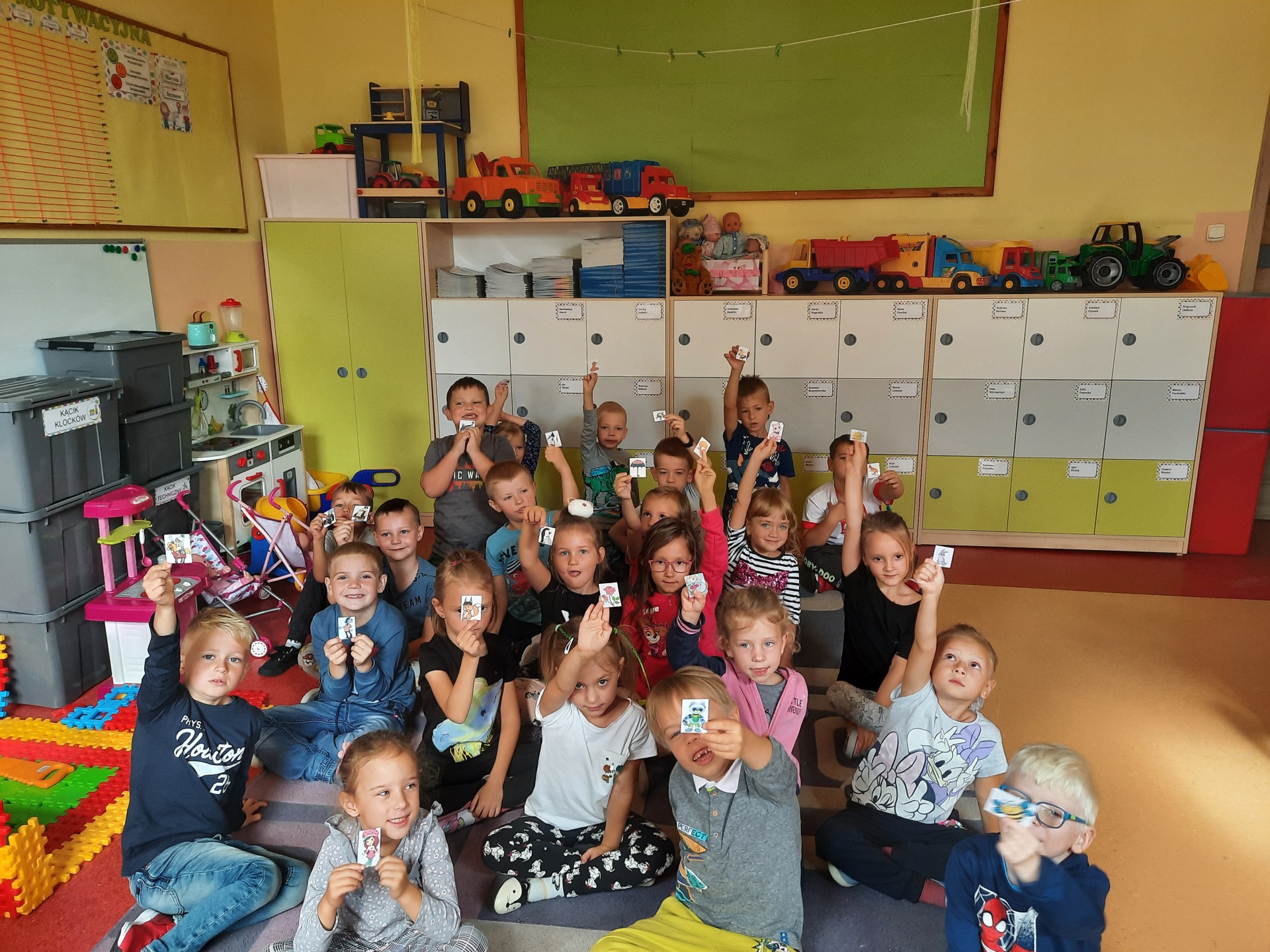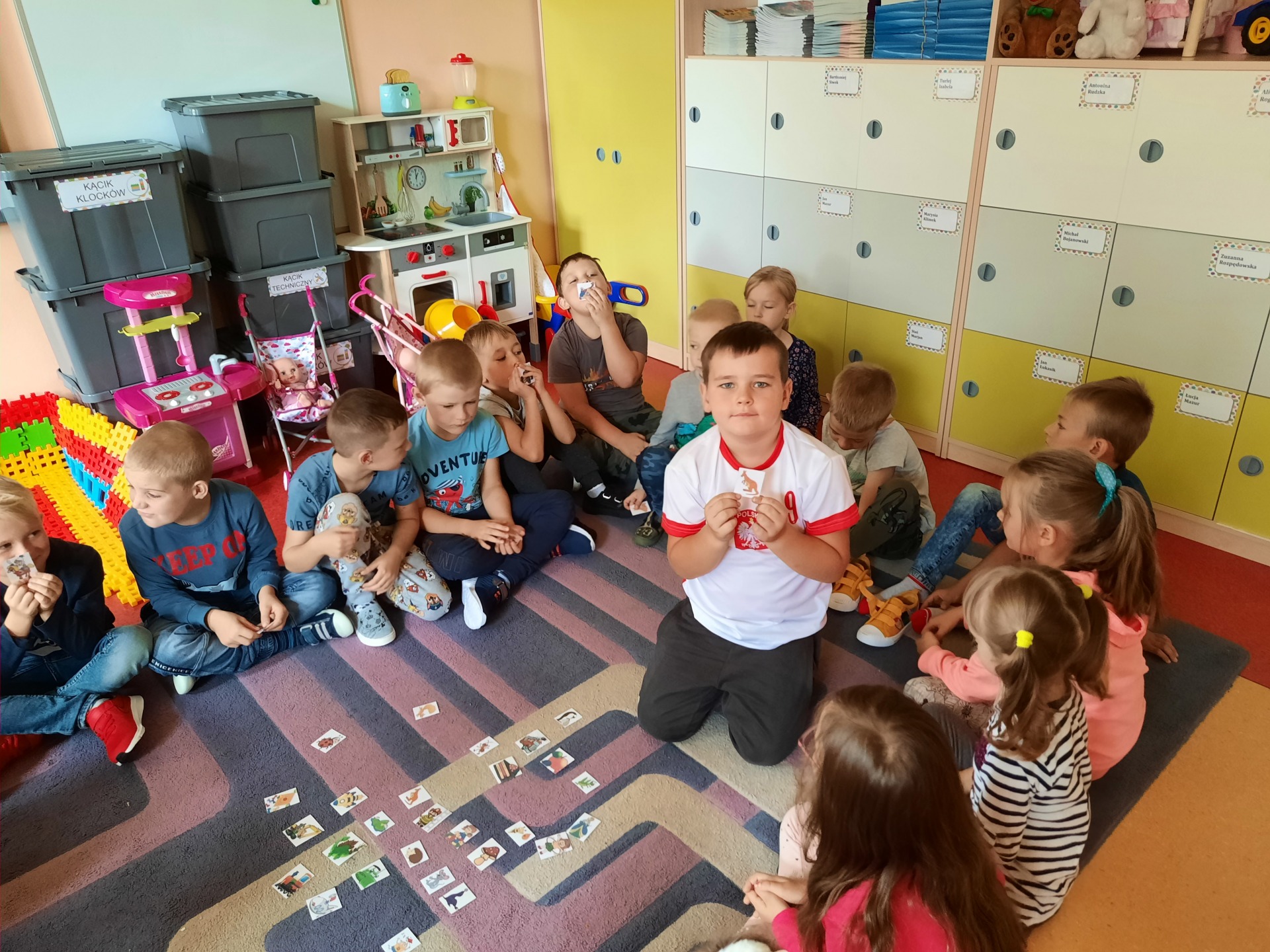 dzieci wybierają znaczki na szafkę