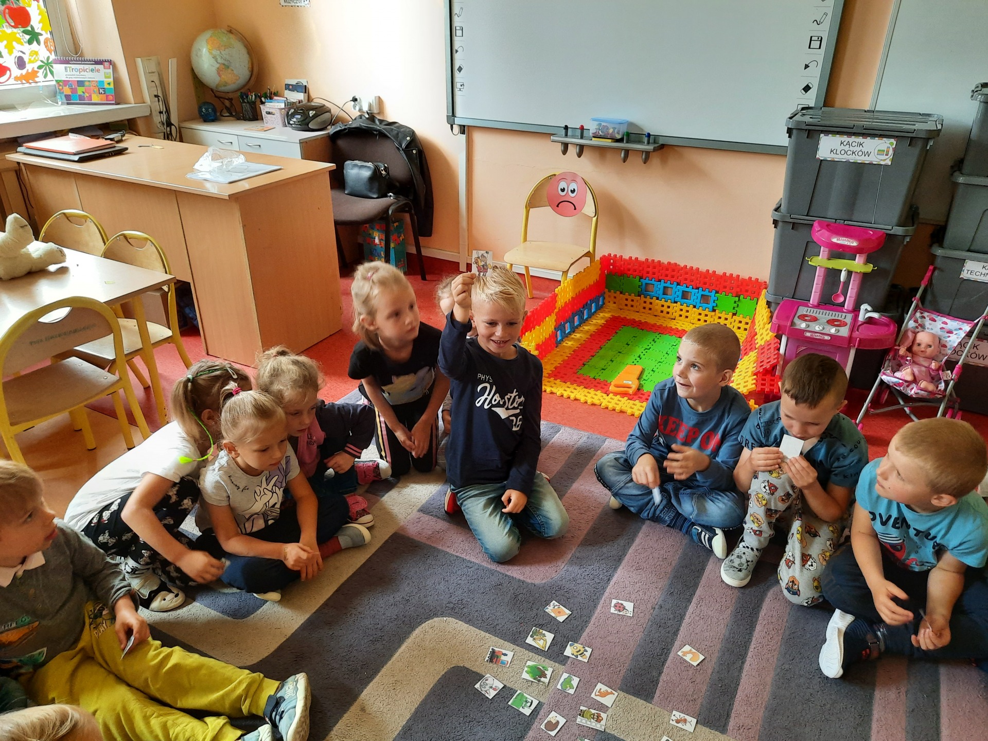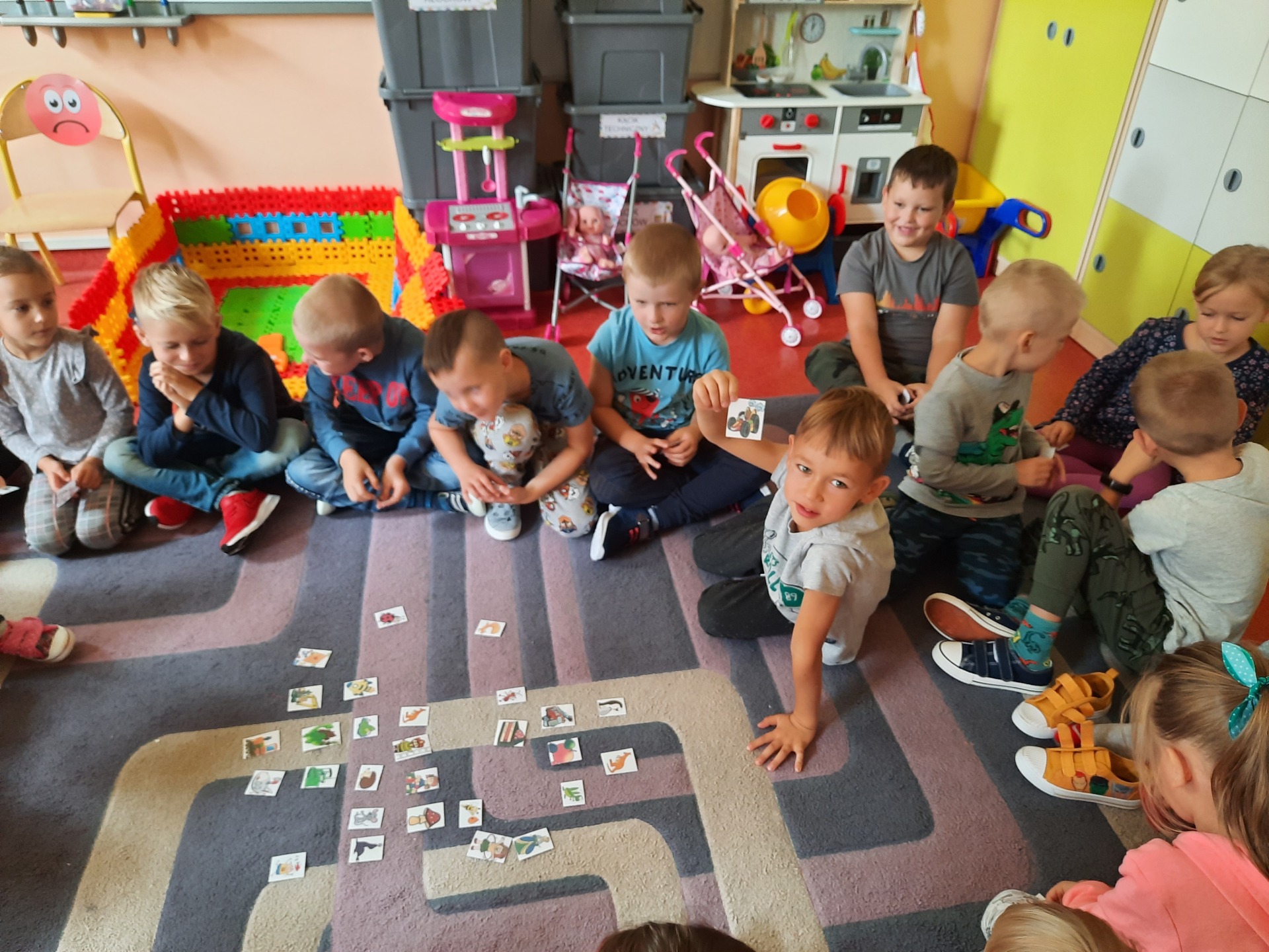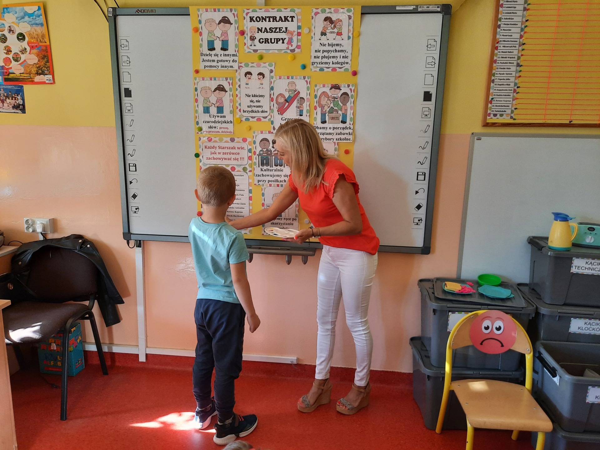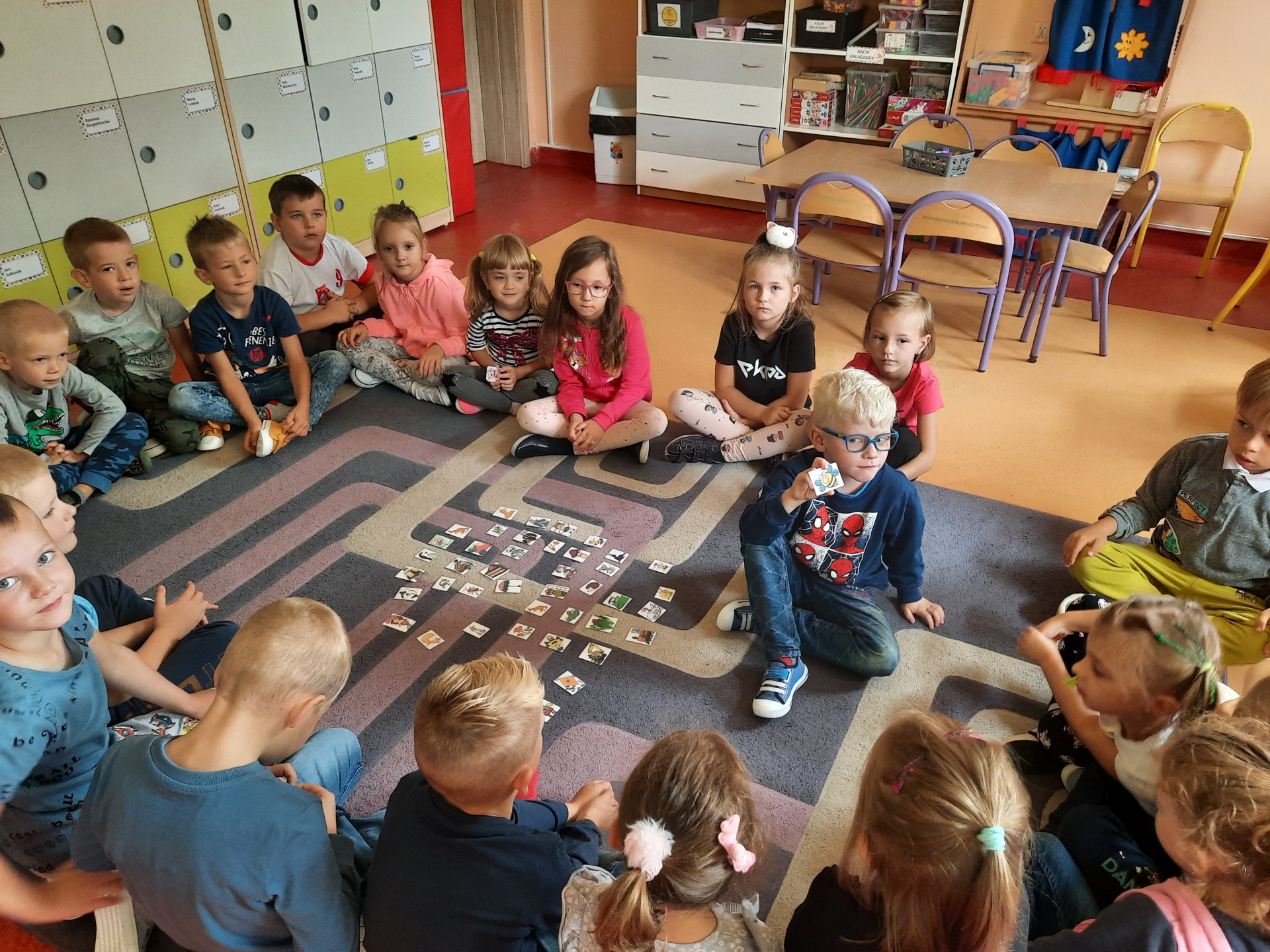 dzieci wybierają znaczki na szafkę
