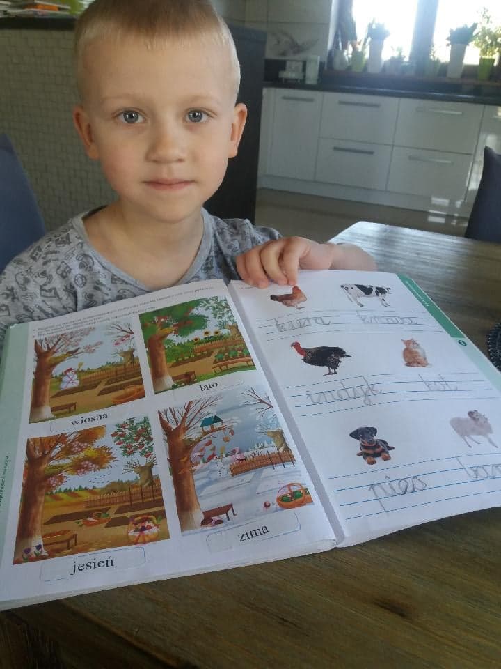 Mija już kolejny tydzień zdalnego nauczania. Oto zdjęcia prac wykonywanych przez nasze dzieci z grupy Skrzaty. Starszaki pracują bardzo pilnie zasługują na pochwałę.