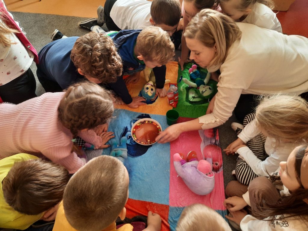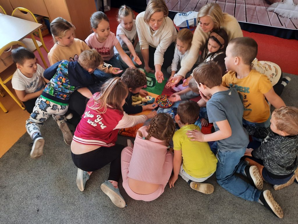 W poniedziałek 25 listopada Starszaki uczestniczyły w obchodach Światowego Dnia Pluszowego Misia. Mimo coraz nowocześniejszych i coraz atrakcyjniejszych zabawek, moda na misie nie przemija. Tego dnia każde dziecko przyszło do przedszkola ze swoim przyjacielem- Misiem. Przybyły misie małe, duże, bardzo duże, białe, różowe, zielone wprost bajecznie kolorowe a każdy był piękny i wyjątkowy. Przedszkolaki zostały zaproszone do wspólnej zabawy w misiowej krainie. Poznały historię Święta Pluszowego Misia, wspólnie bawiły się przy piosenkach m. in: „ Jadą, jadą misie”, „Pluszowy miś”. Dla dzieci w tym dniu przygotowano wiele atrakcji: zabawy ruchowe, konkursy, quizy, misiowe tańce. Ponadto Skrzaty pracę plastyczno – techniczną „Miś” . W tym magicznym dniu nie mogło zabraknąć tortu , za którego serdecznie dzieci dziękują swoim rodzicom. To był naprawdę niezwykły i magiczny dzień pełen wrażeń.