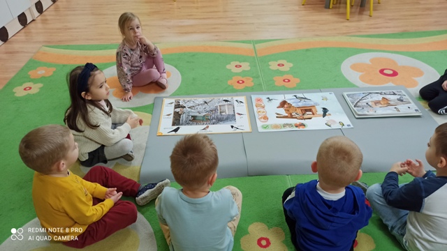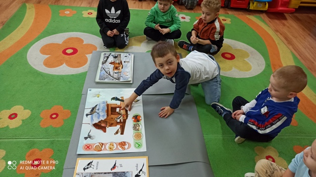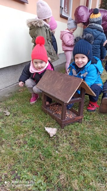 Smerfy realizując zagadnienia z programu Kubusiowi Przyjaciele Natury dowiedziały się jak ważne jest dbanie o rośliny i zwierzęta. Ciocie zaprezentowały dzieciom plakaty ptaków zimujących w Polsce, jak tych odlatujących na okres zimy do ciepłych krajów. Dzieci dowiedziały się także, że ważne jest też dokarmianie leśnych zwierząt w czasie zimy i należy to robić tylko w porozumieniu z leśniczym. Maluszki wybrały się na spacer i w ten trudny, zimowy czas dokarmiły ptaki.