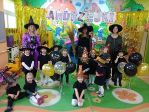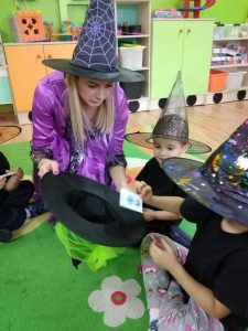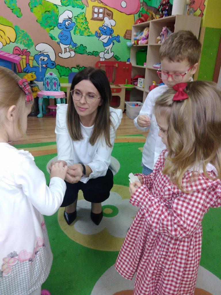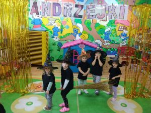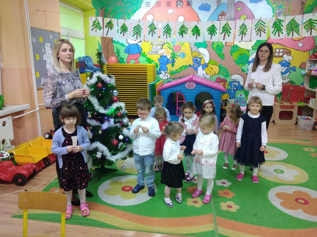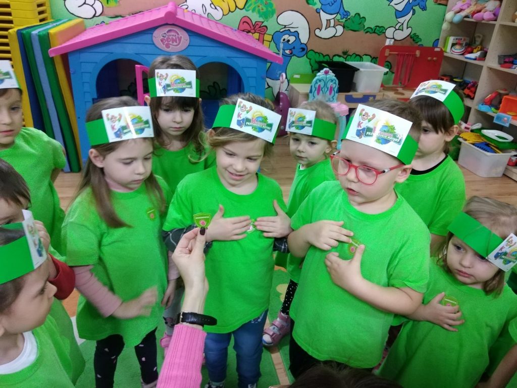 Dziś maluszki realizowały z ciociami pierwszy temat „W lesie dbam o rośliny i zwierzęta, nawet te najmniejsze”. Smerfiki chętnie słuchały rad Kubusia jak należy zachowywać się w lesie, obejrzały filmiki edukacyjne i pokolorowały rysunek. W nagrodę otrzymały zasłużone odznaki „ekoempatia”.