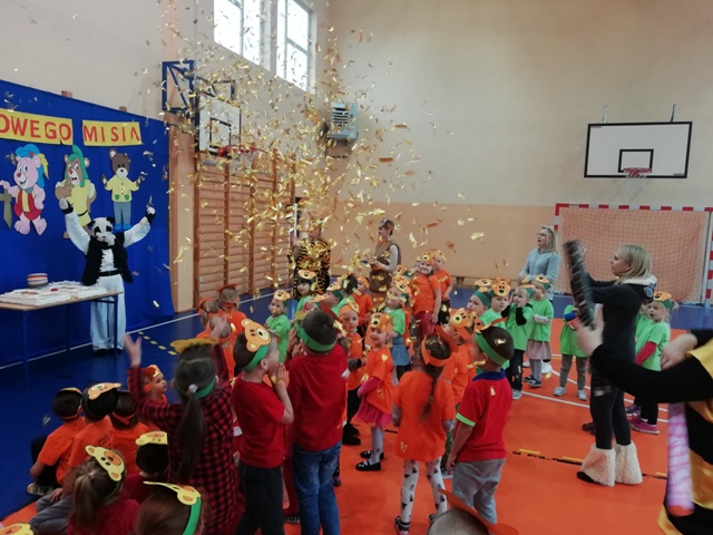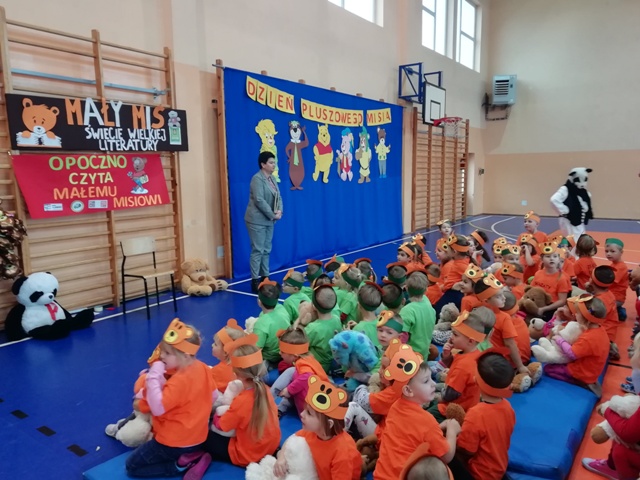25 listopada w Punkcie Przedszkolnym w Publicznej Szkole Podstawowej im. W. i H. Ossowskich w Kunicach odbył się „Dzień Pluszowego Misia”. „Smerfy”, „Żabki” i „Skrzaty” wspólnie z gośćmi z Przedszkola nr 6 z grupą żłobkową „Zielona Dolinka” w Opocznie, którzy przybyli do naszego punktu brali udział w zabawach integracyjnych. W tym roku uroczystość rozpoczęła Pani Dyrektor Beata Chrustowicz, która powitała chłopców i dziewczynki z „Zielonej Dolinki”. Następnie przeczytała w ramach ogólnopolskiego programu „Mały Miś w świecie wielkiej literatury” bajkę oczywiście o misiu. Przyszła pora na zabawę! Ciocia Ania z Przedszkola nr 6 w Opocznie w przebraniu „Gucia” prowadziła wesołe zabawy przy muzyce. Dzieci odgadywały zagadki związane z misiami, próbowały smakołyków każdego misia- słodkiego miodu, bawiły się wesoło z misiami i kolorową chustą. Na zakończenie wszystkie dzieci zajadły pyszny tort i dostały balonika w kształcie misia. Uroczystość przebiegała w bardzo miłej i sympatycznej atmosferze. Po tak wspaniałej zabawie nie możemy doczekać się kolejnego spotkania z dziećmi z Przedszkola nr 6 w Opocznie.