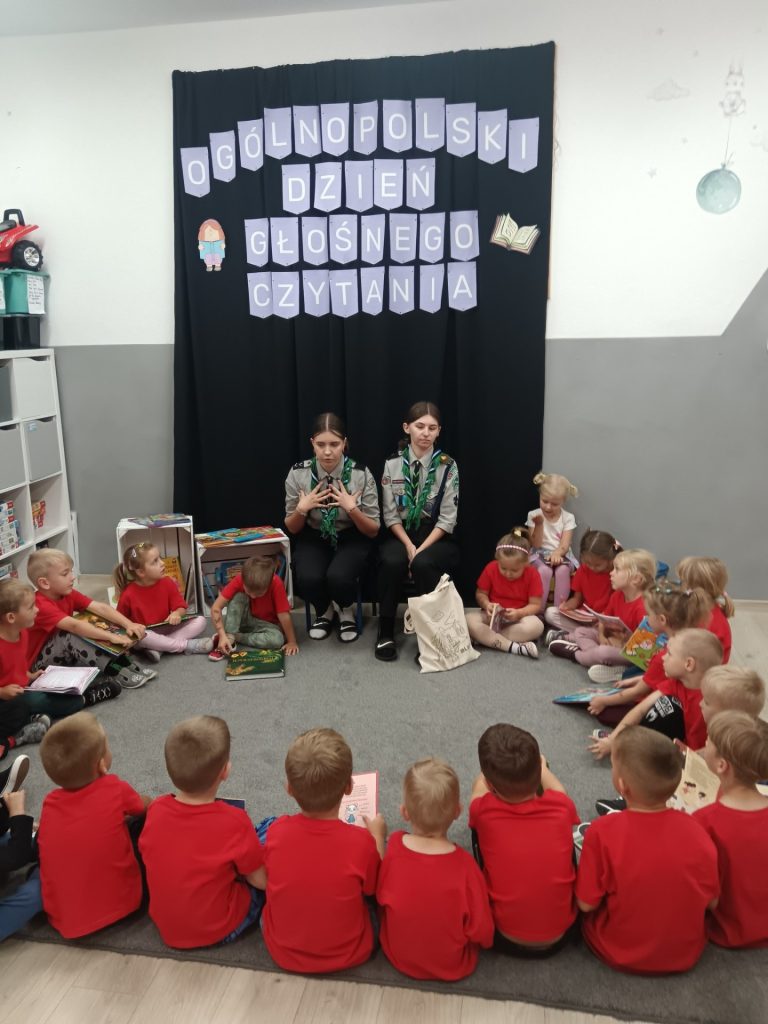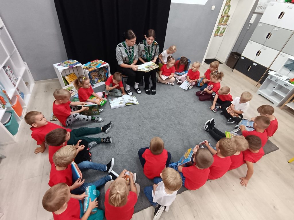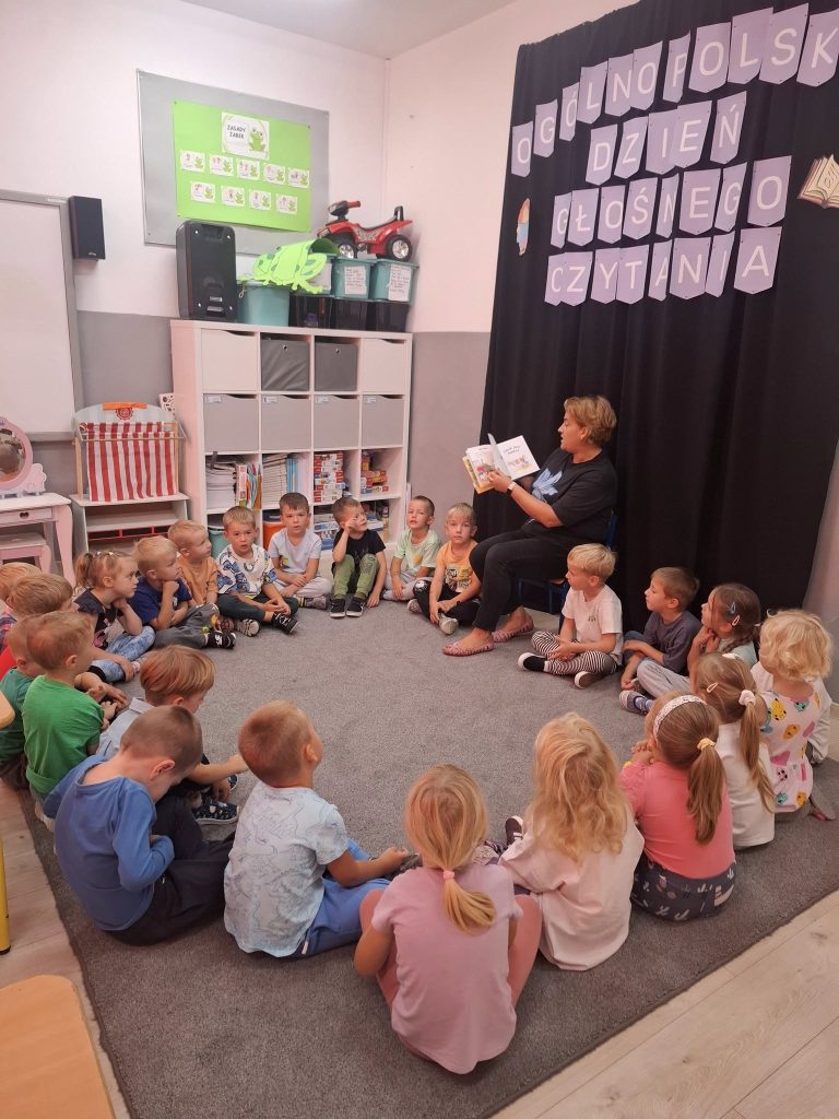 W grupie Żabki świętowaliśmy wyjątkowy dzień! Odwiedziły nas harcerki, które z ogromnym zaangażowaniem czytały dzieciom książki. Do wspólnego czytania dołączyły także ciocie z przedszkola, pani Ewelinka wypożyczająca książki w szkolnej bibliotece oraz pedagog specjalny – pani Martynka. Dzięki nim przenieśliśmy się w świat bajek i niezwykłych przygód.