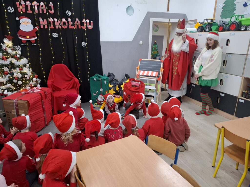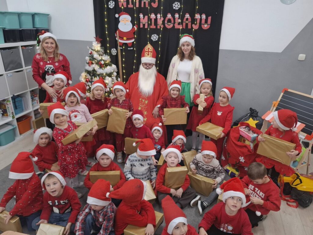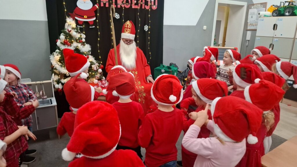 W piątek 19 grudnia w naszym przedszkolu zapanowała prawdziwie świąteczna atmosfera. Wspólnie kolędowaliśmy, dzieliliśmy się opłatkiem, składając sobie serdeczne życzenia, a także obejrzeliśmy piękne jasełka przygotowane przez dzieci.