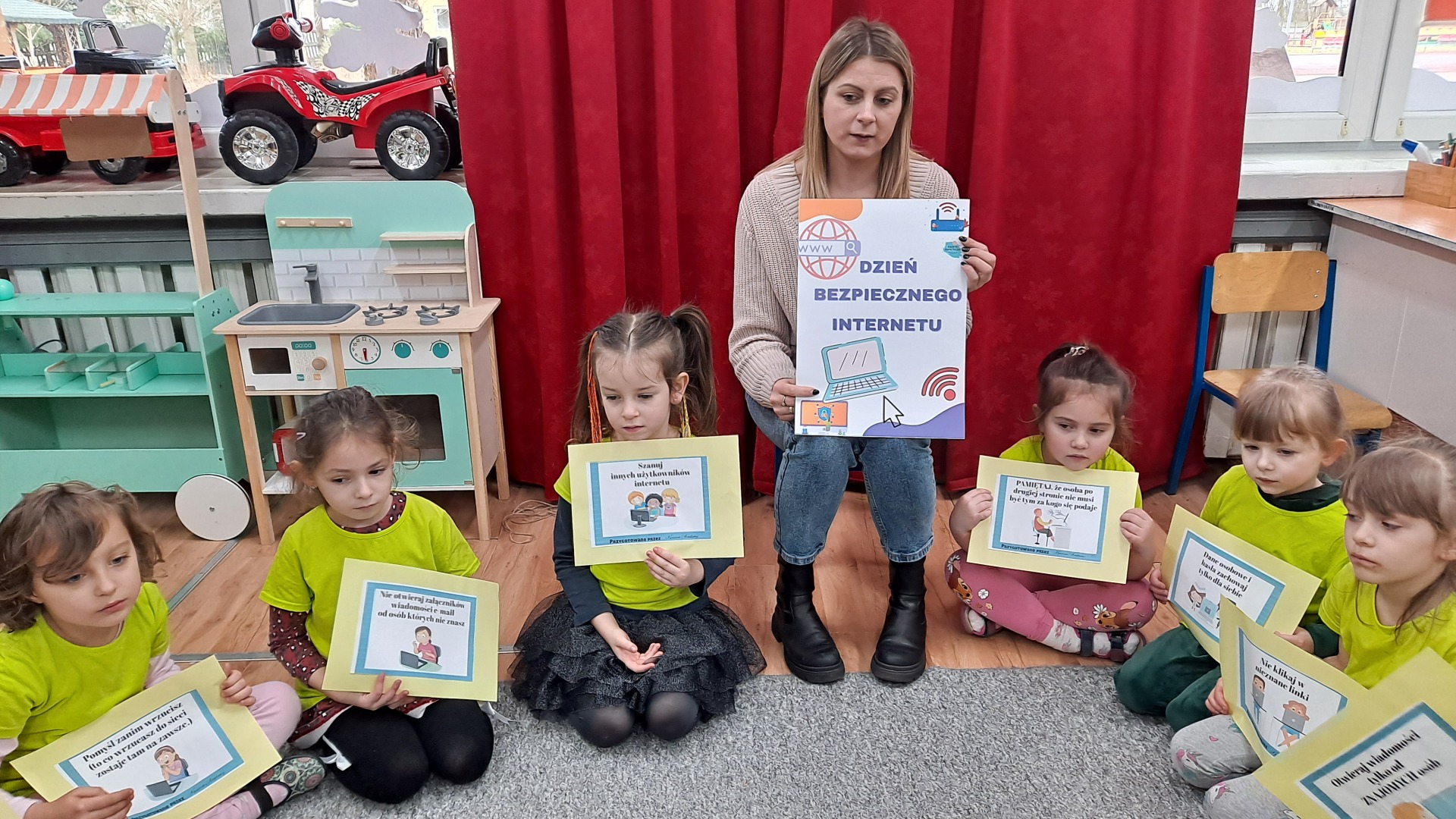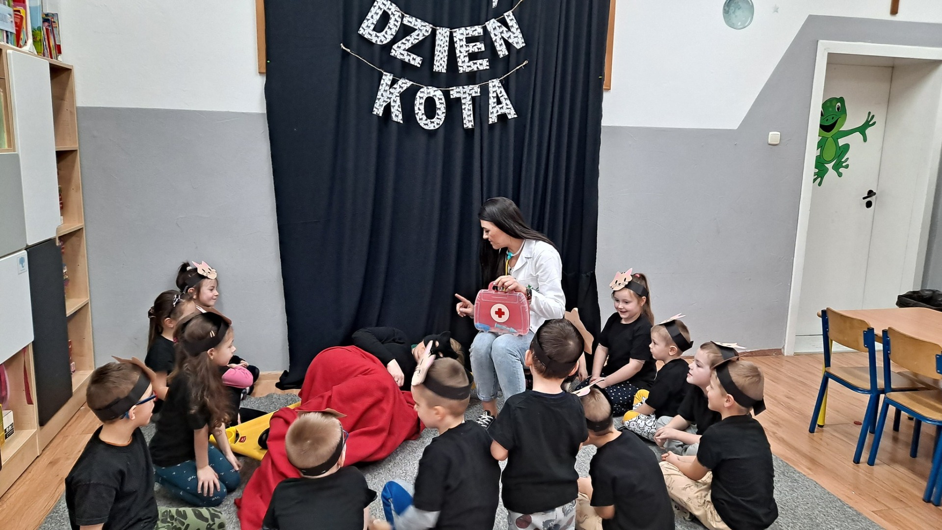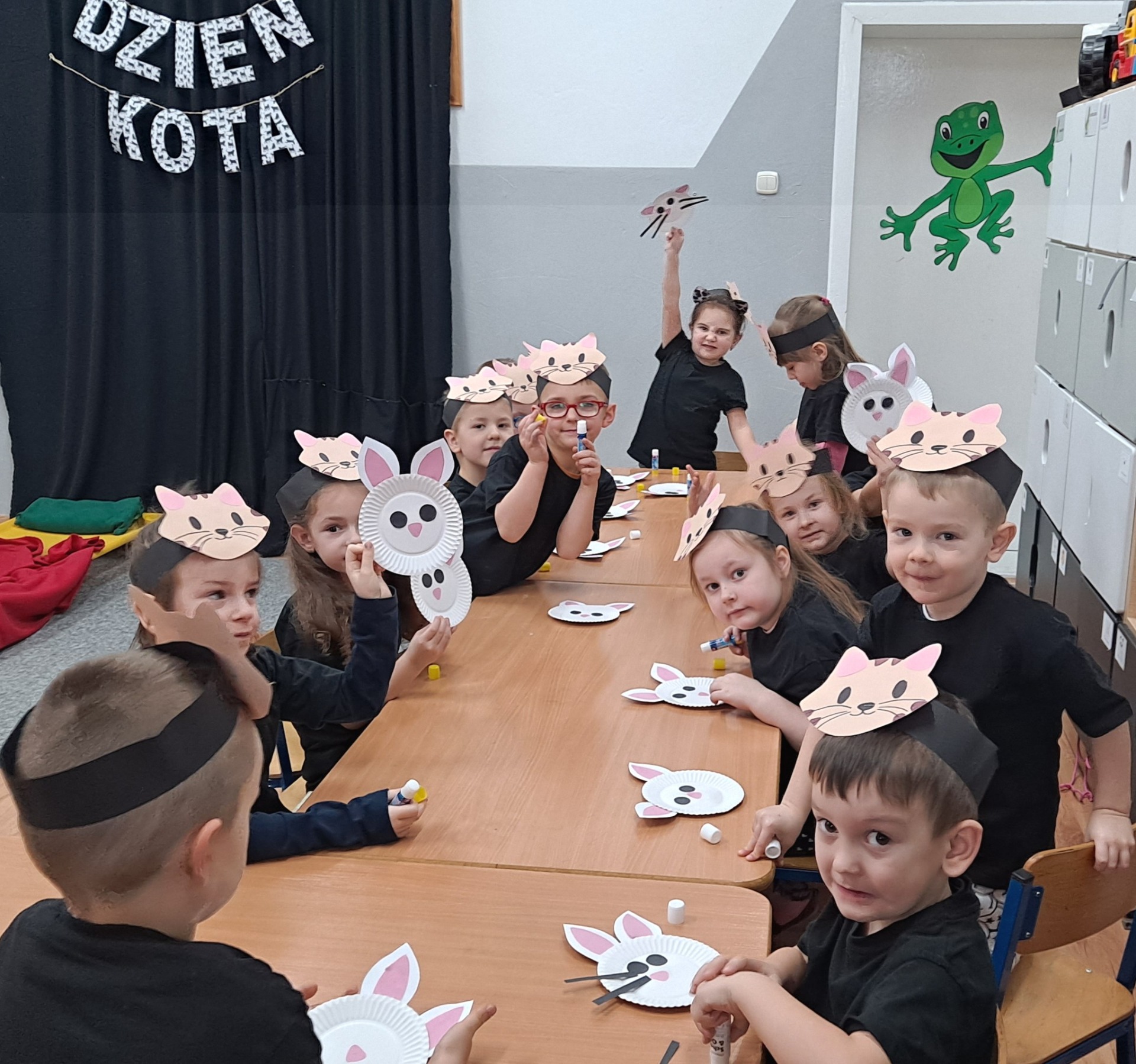 Dziś Żabki obchodziły Światowy Dzień Dinozaura, który stwarza wspaniałą okazję do przybliżenia dzieciom tych prehistorycznych zwierząt. Dzieci założyły na głowę wykonane przez wychowawczynię opaski, dzięki którym wyglądały jak stegozaury i bawiły w odkrywanie szkieletu dinozaura. Pomogli im w tym uczniowie klasy trzeciej, którzy byli naszymi gośćmi. Do wspólnej zabawy zaprosiliśmy również Panie nauczycielki: Panią Ewę Stępniewską, Panią Anię Kupis i Panią Martynkę Piwowarczyk. Przedszkolaki wspólnie z Ciociami klasyfikowały dinozaury, przeliczały je, segregowały oraz uczyły się ich nazw. Żabki zainspirowane wysłuchanym wierszem B. Formy pt. „Kto widział Dinozaura”, a także oglądanymi ilustracjami chętnie wypowiadały się na temat dinozaurów. Ponadto przedszkolaki wykonały pracę plastyczną “Dino o zachodzie słońca”. Dzieci bawiły się w tym dniu znakomicie, wzbogaciły swoją wiedzę na temat dinozaurów oraz nauczyły się współpracy ze starszymi uczniami.