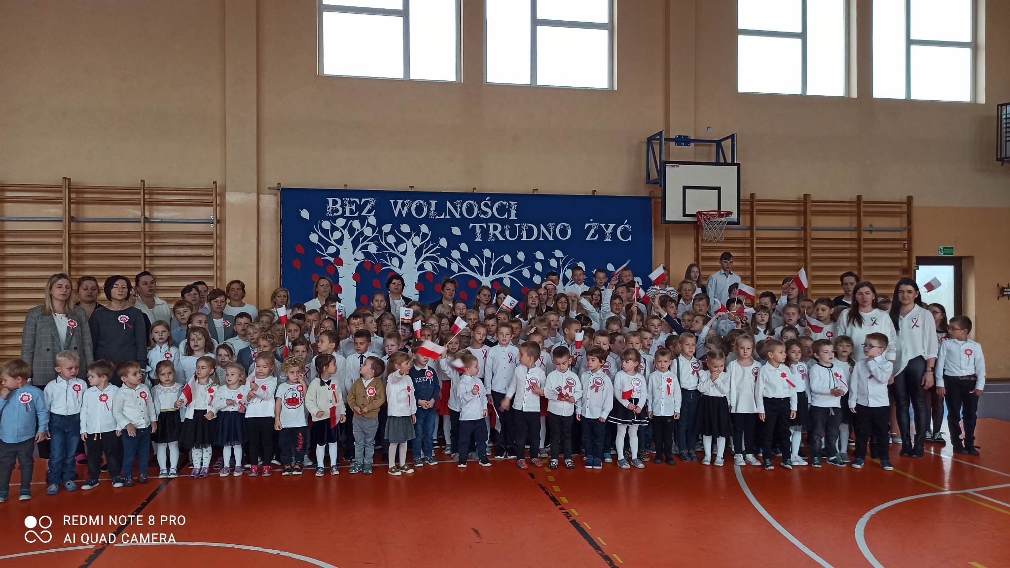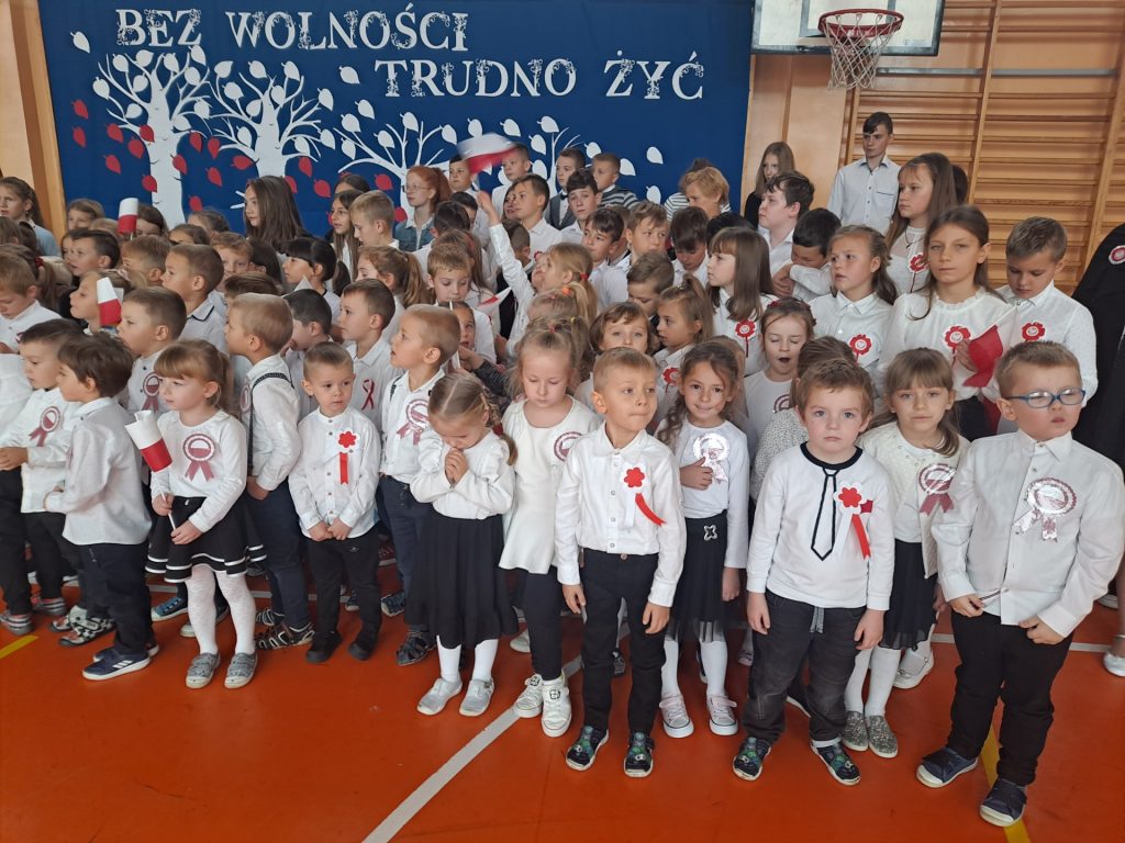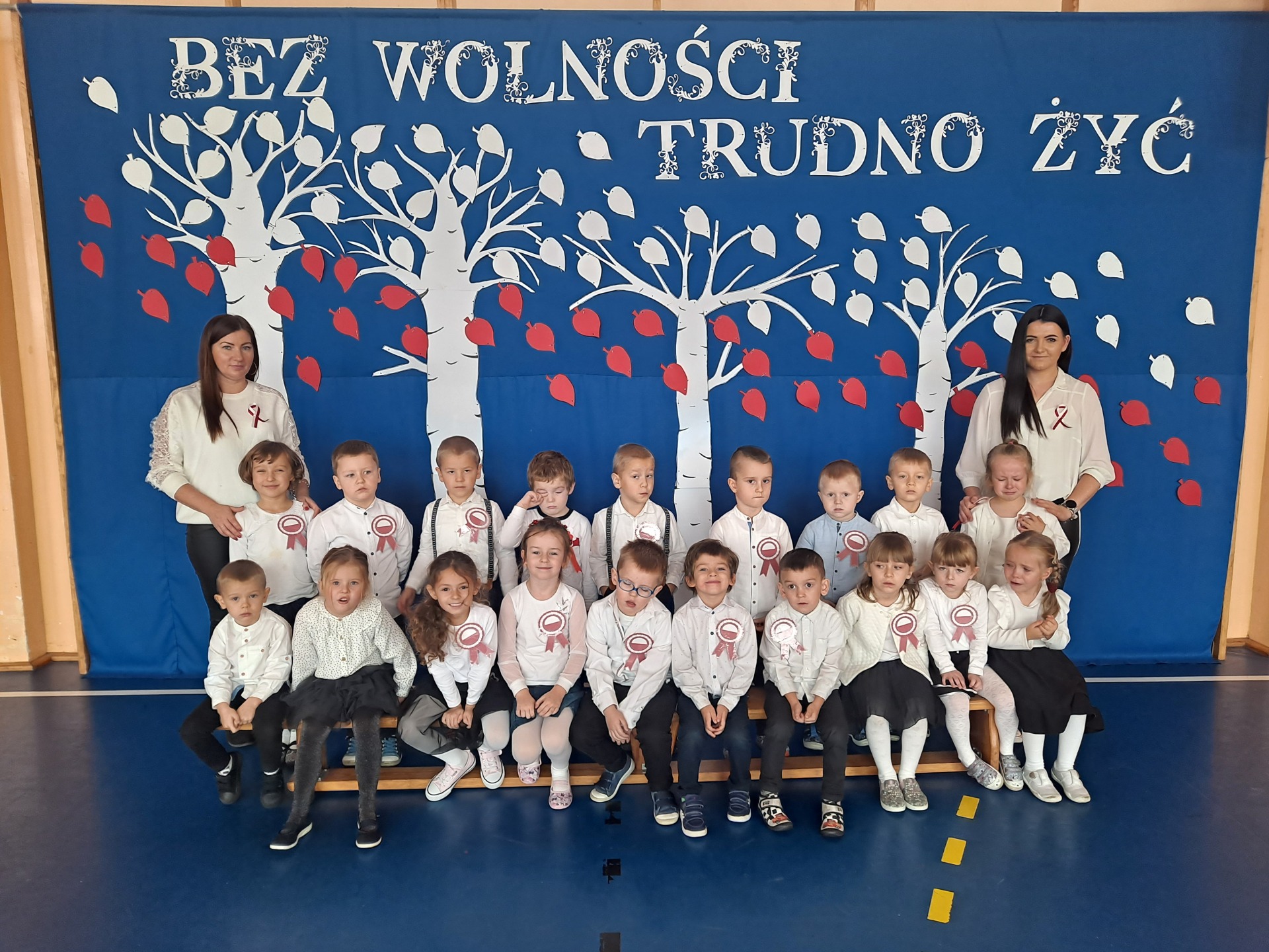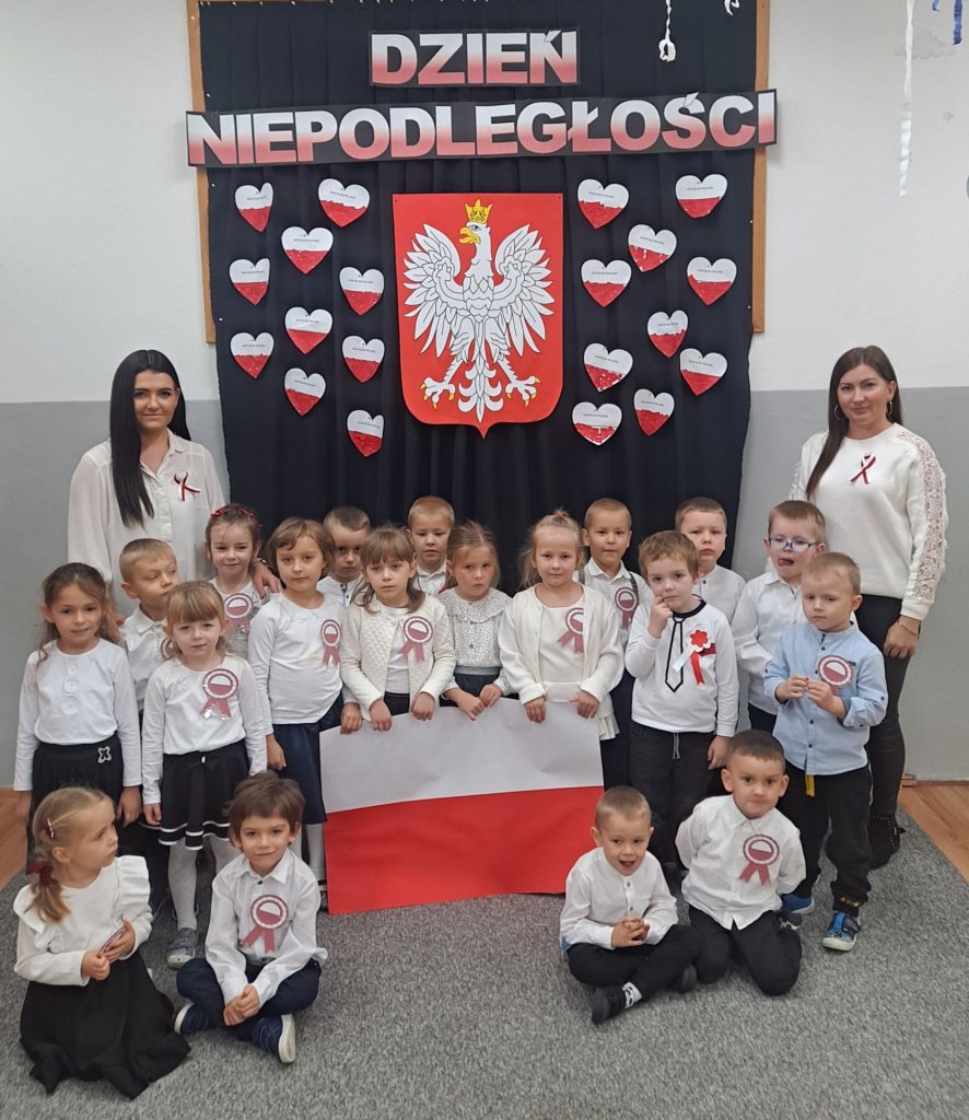 Dnia 10 listopada obchodziliśmy w naszym przedszkolu Święto Niepodległości. Z tej okazji wszystkie dzieci przyszły ubrane na galowo i uroczyście świętowali ten wyjątkowy dla Nas – Polaków dzień. Dzieci rozmawiały o tym święcie w sali, a później uczestniczyły w przygotowanej przez uczniów naszej szkoły akademii. Przedszkolaki wzięły także udział w akcji ,,Szkoła do hymnu” i wspólnie z całą społecznością szkolną odśpiewali hymn. Dzięki udziałowi w takich uroczystościach, przedszkolaki od najmłodszych lat kształtują pozytywne postawy i uczą się patriotyzmu.